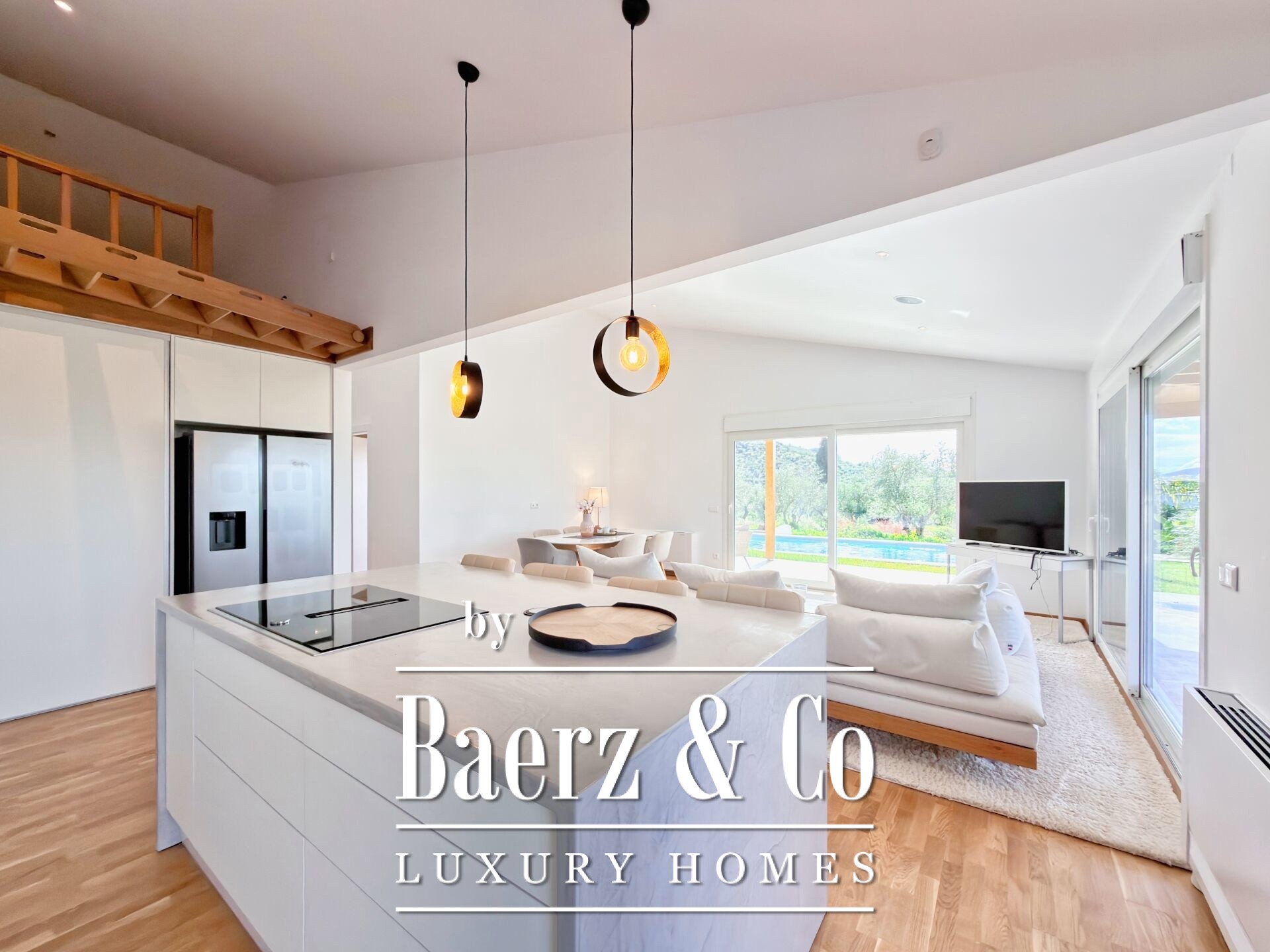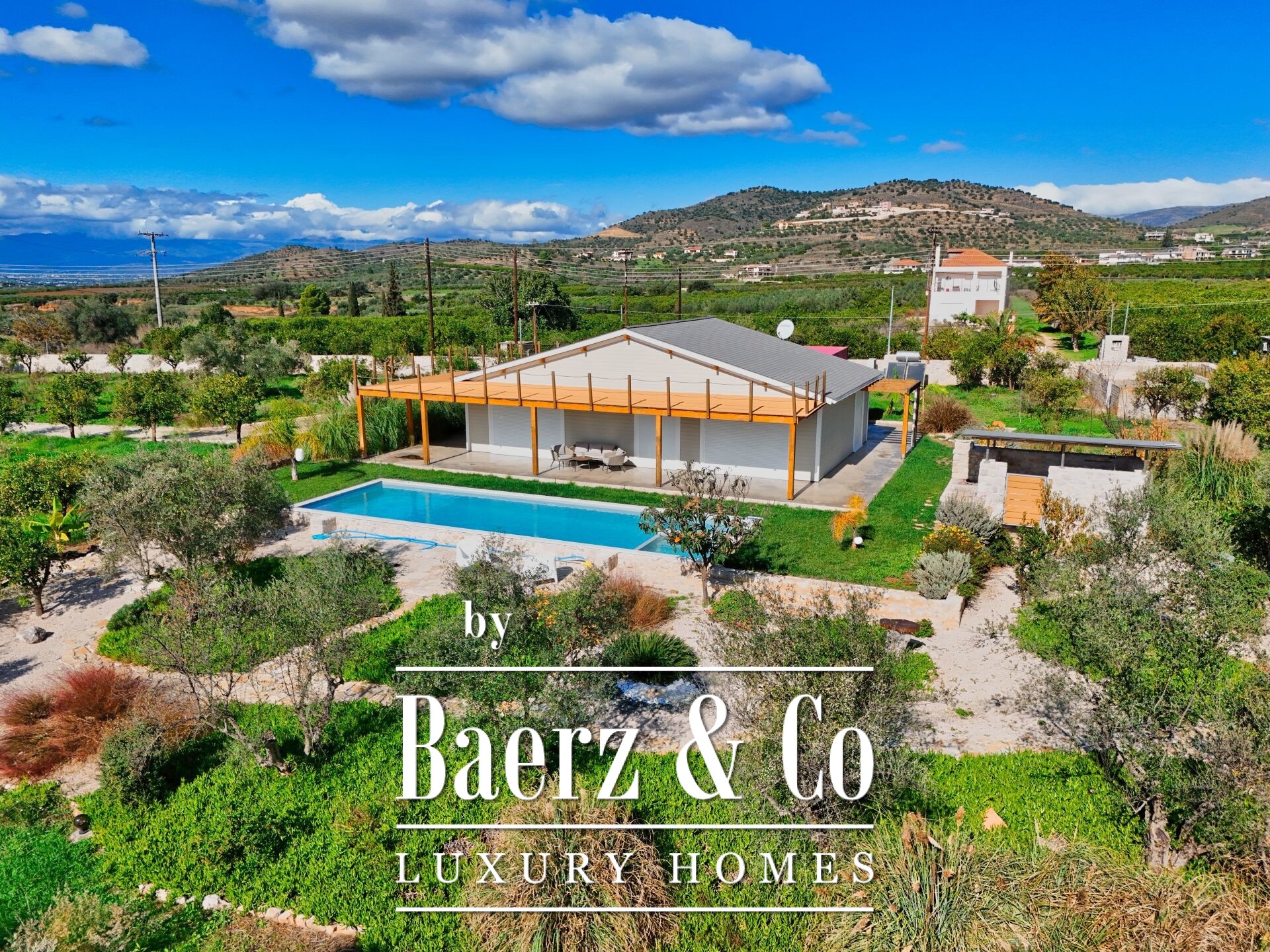Detached house Agios Adrianos welcomes you a few kilometers from Nafplio, set quietly within a 6,900 m² garden. This 125 m² property, crafted by a renowned prefabrication builder in 2023, offers contemporary comfort just 10 kilometers from the coast. Spaces flow naturally from the open-plan living and dining area to a kitchen designed for ease, three bright bedrooms, and two refined bathrooms. An exterior staircase rises to a balcony giving panoramic mountain and nature views, while terraces connect seamlessly to a 4 by 13 meter pool, surrounded by uninterrupted vistas.