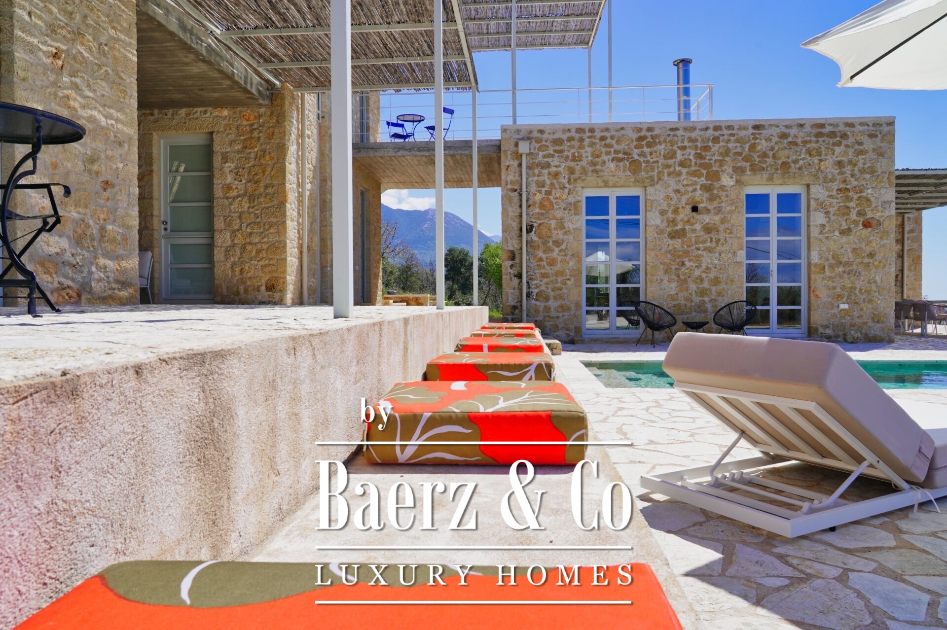 Stone villa Agios Nikolaos stands within the sought-after landscape of Messinian Mani, presenting refined living with panoramic, unobstructed sea views. This newly built villa, set on a 2,029 m² plot, encompasses 260 m² of living space distributed across three independent buildings, offering both privacy and versatility.