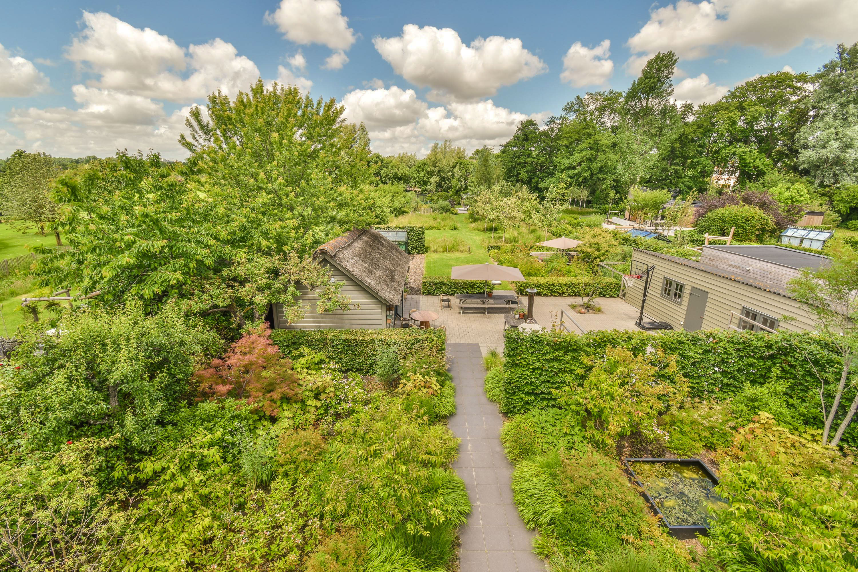 - Outbuildings include a 26 m² garden room with kitchen