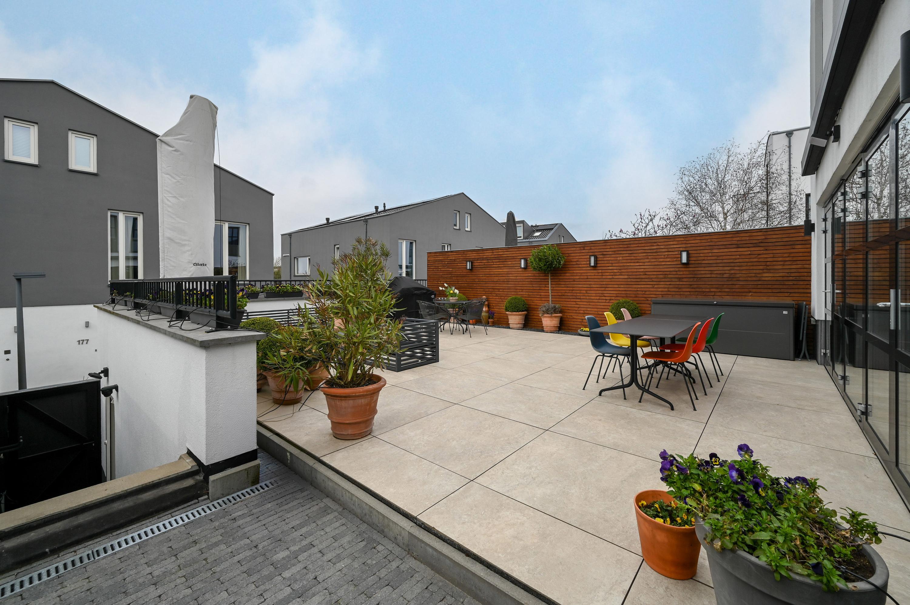 The second floor features a spacious roof terrace offering stunning views over the surrounding nature and the Amstel. The terrace is equipped with a large pergola, electricity, atmospheric lighting, a water connection, and a practical storage cabinet, making it the perfect place to relax, entertain, or enjoy drinks with guests.