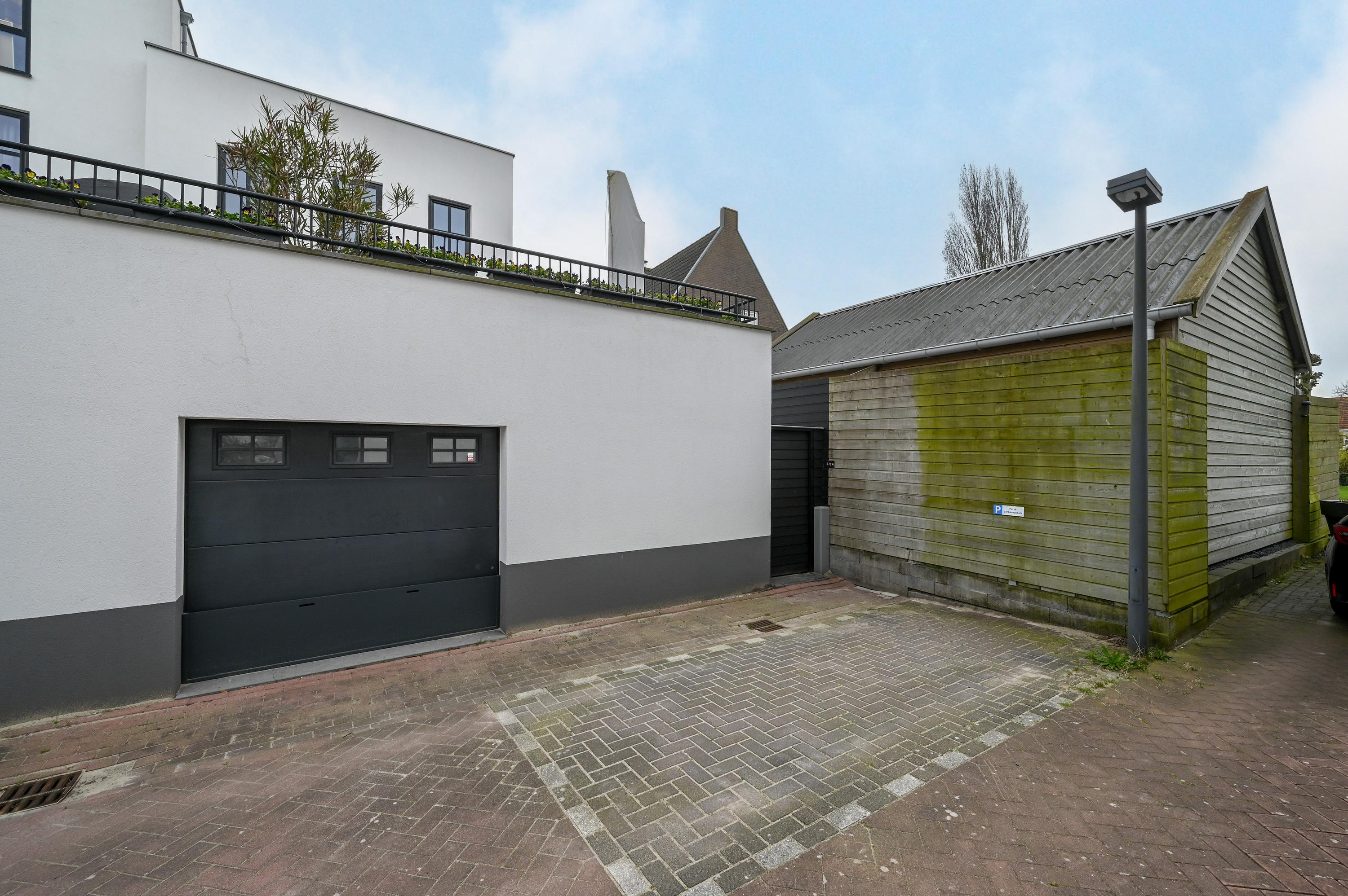 Beneath the terrace, there is a garage accessible via a fixed staircase, currently used as a studio complete with a kitchenette, toilet, electric underfloor heating, and air conditioning. The garage is also accessible via an electric door at the rear of the property.