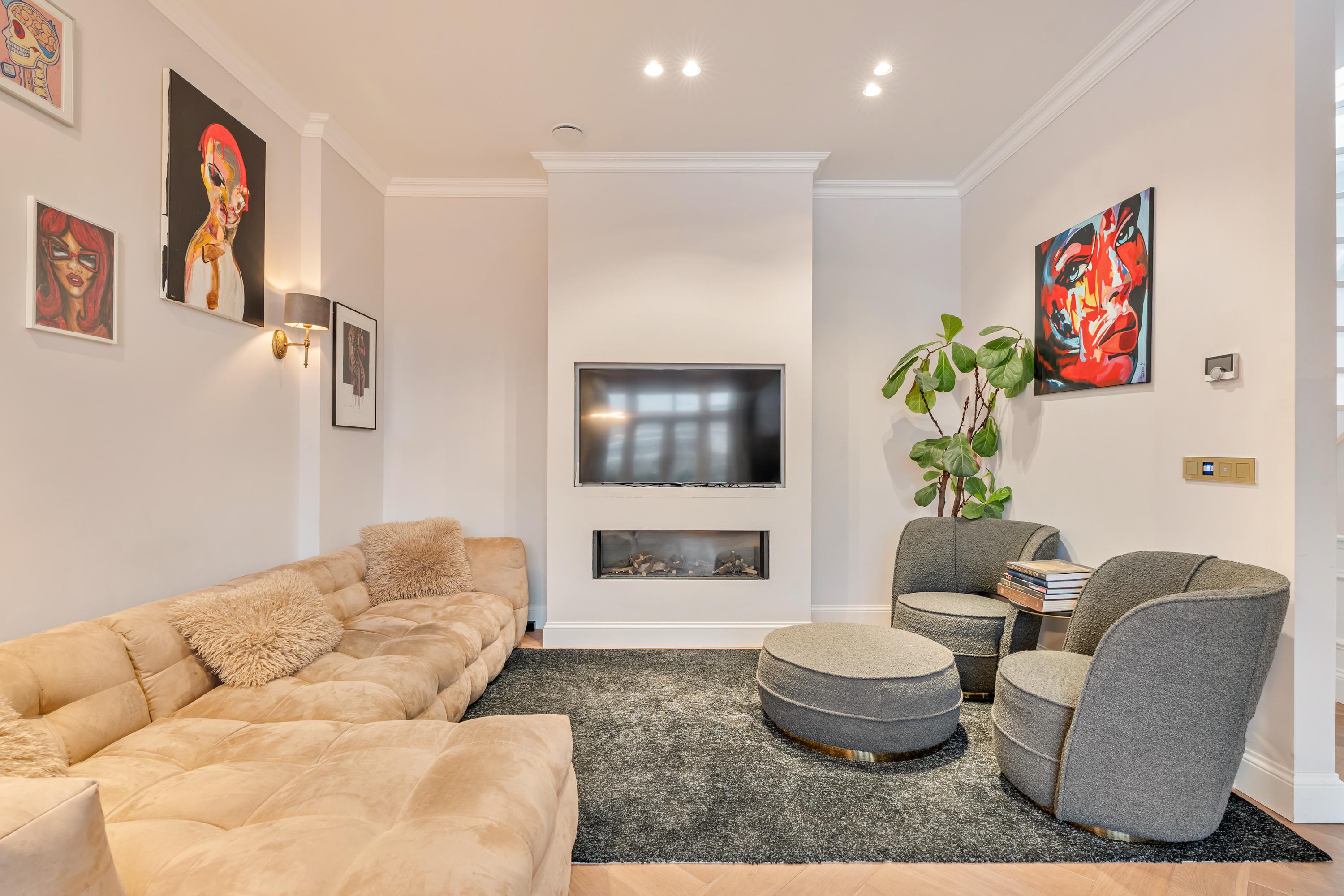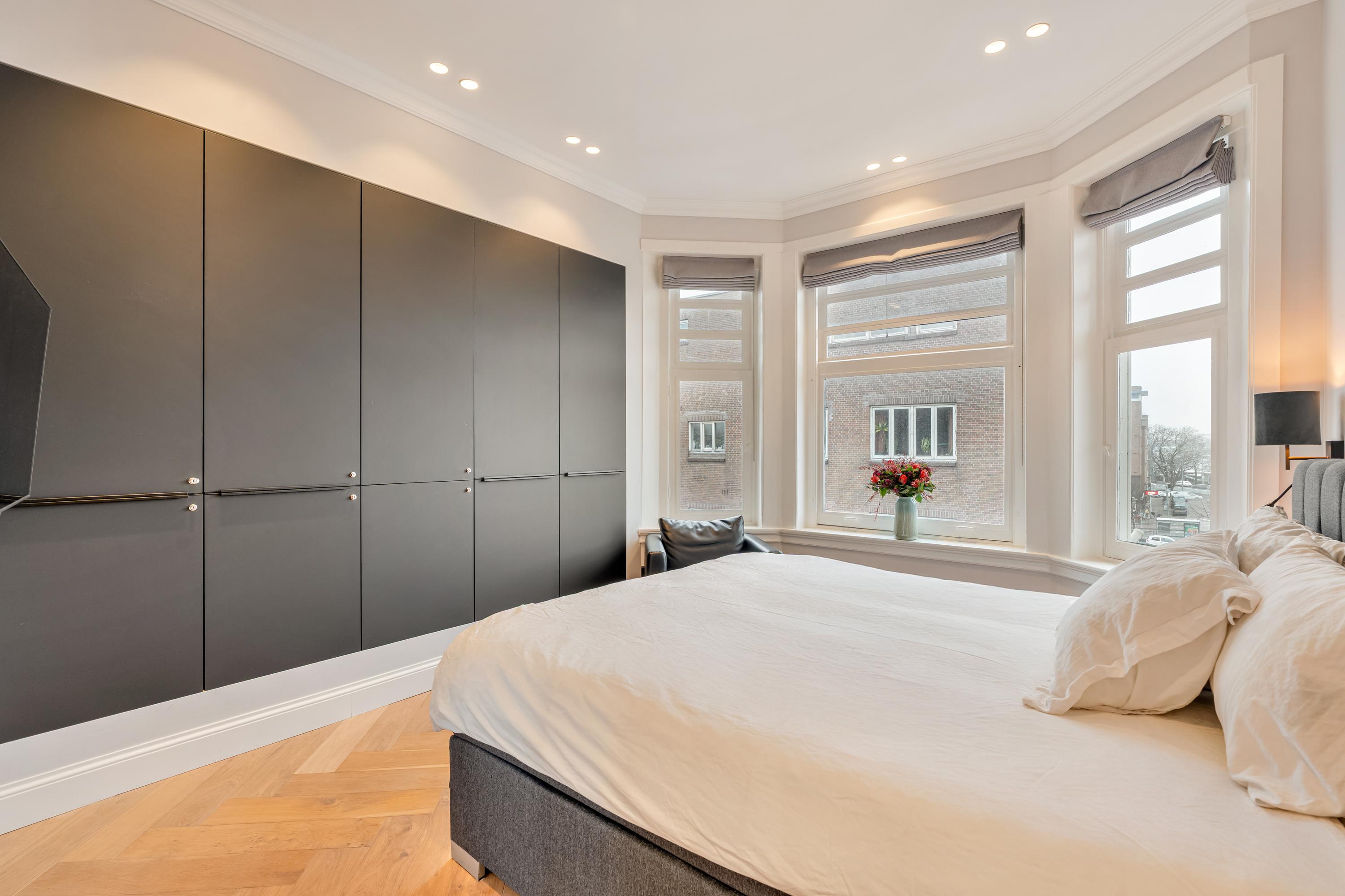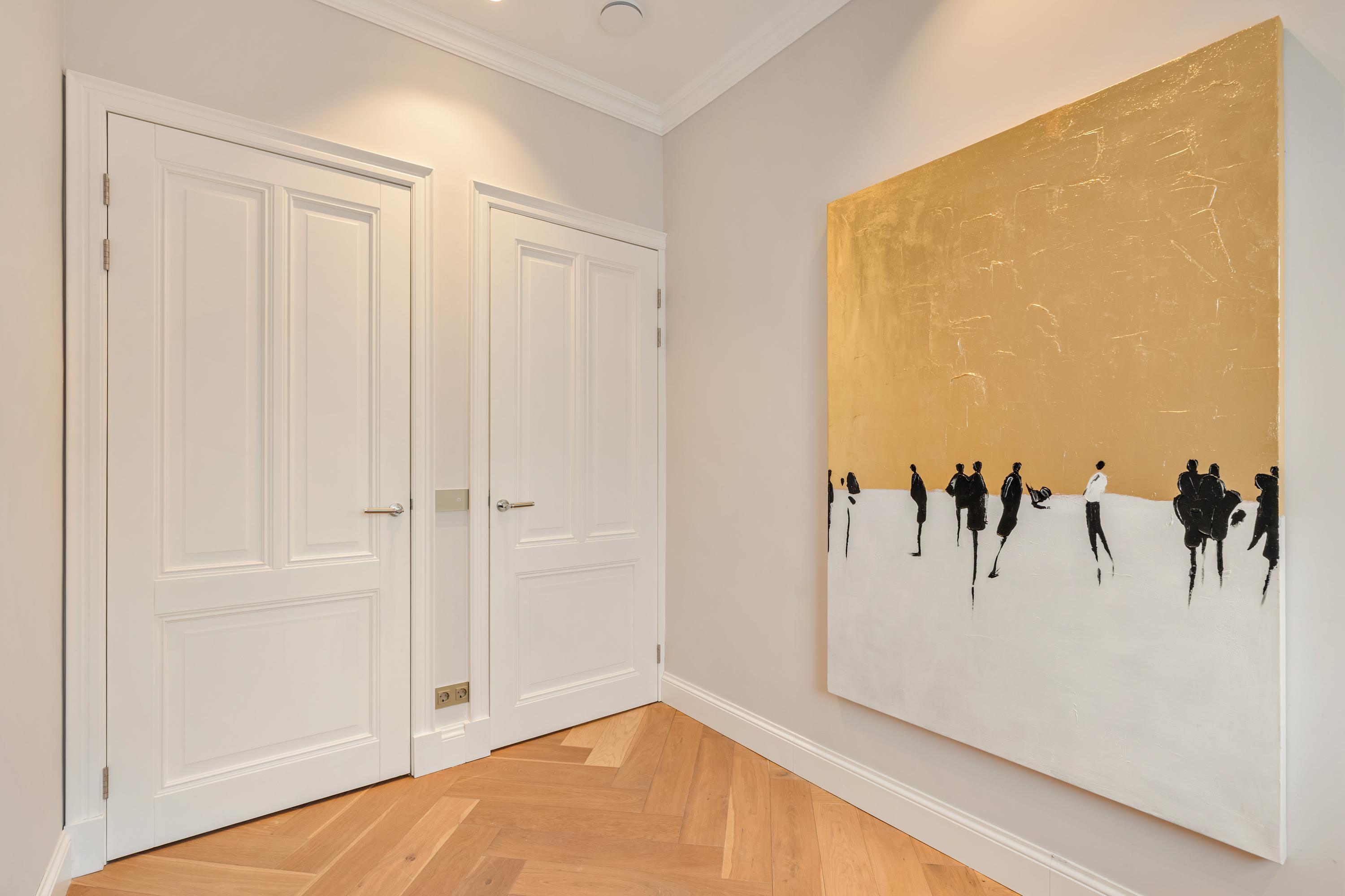 Entrance to the apartment is via the landing, which provides access to two storage cupboards and a separate toilet fitted with a wall-mounted WC and washbasin. The landing connects to all rooms. At the rear, you will find the spacious and bright living room, featuring a gas fireplace and a luxurious open-plan kitchen equipped with various built-in Siemens appliances. French doors open onto the charming balcony. The bedroom at the rear also provides access to the balcony. At the front of the apartment is the master bedroom with a bay window, as well as the third bedroom. Both rooms enjoy lovely views over the Amstel. The centrally located, high-end bathroom is fitted with a bathtub, walk-in shower, and a double vanity unit. An internal staircase leads to the elegant rooftop terrace, fully equipped with LED lighting, a sunshade, greenery, a complete outdoor kitchen, and an outdoor bath. From here, you can enjoy sunshine throughout the day and unobstructed views over the Amstel.
