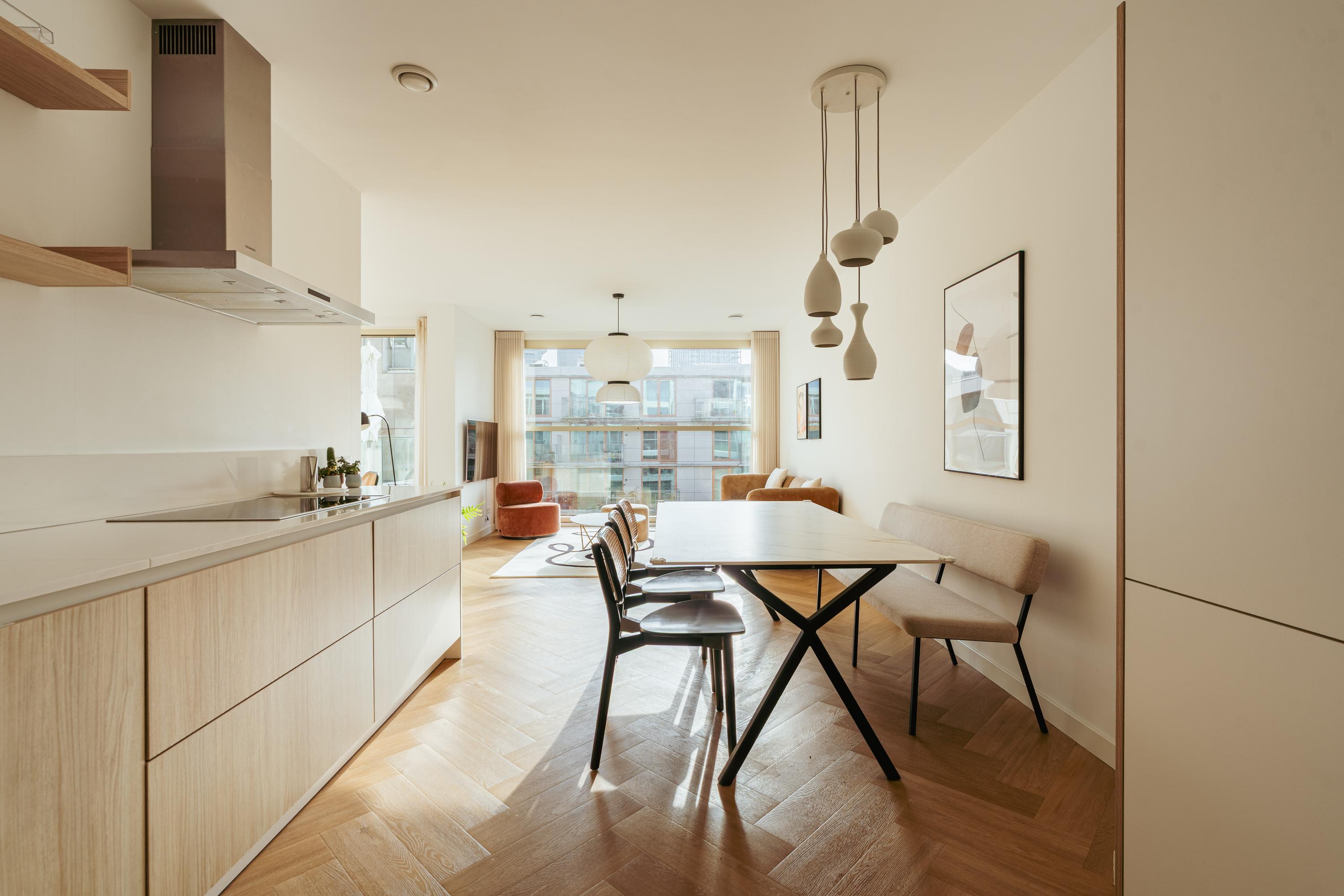 This turn-key apartment of approx. 137 m² is located in a stylish complex in a prime location in Amsterdam. The property includes a private parking space, three bedrooms, two balconies, and a luxurious open-plan kitchen. In addition, the home is exceptionally energy-efficient with an A+++ energy label.