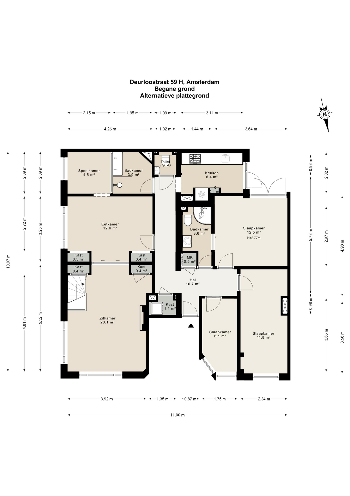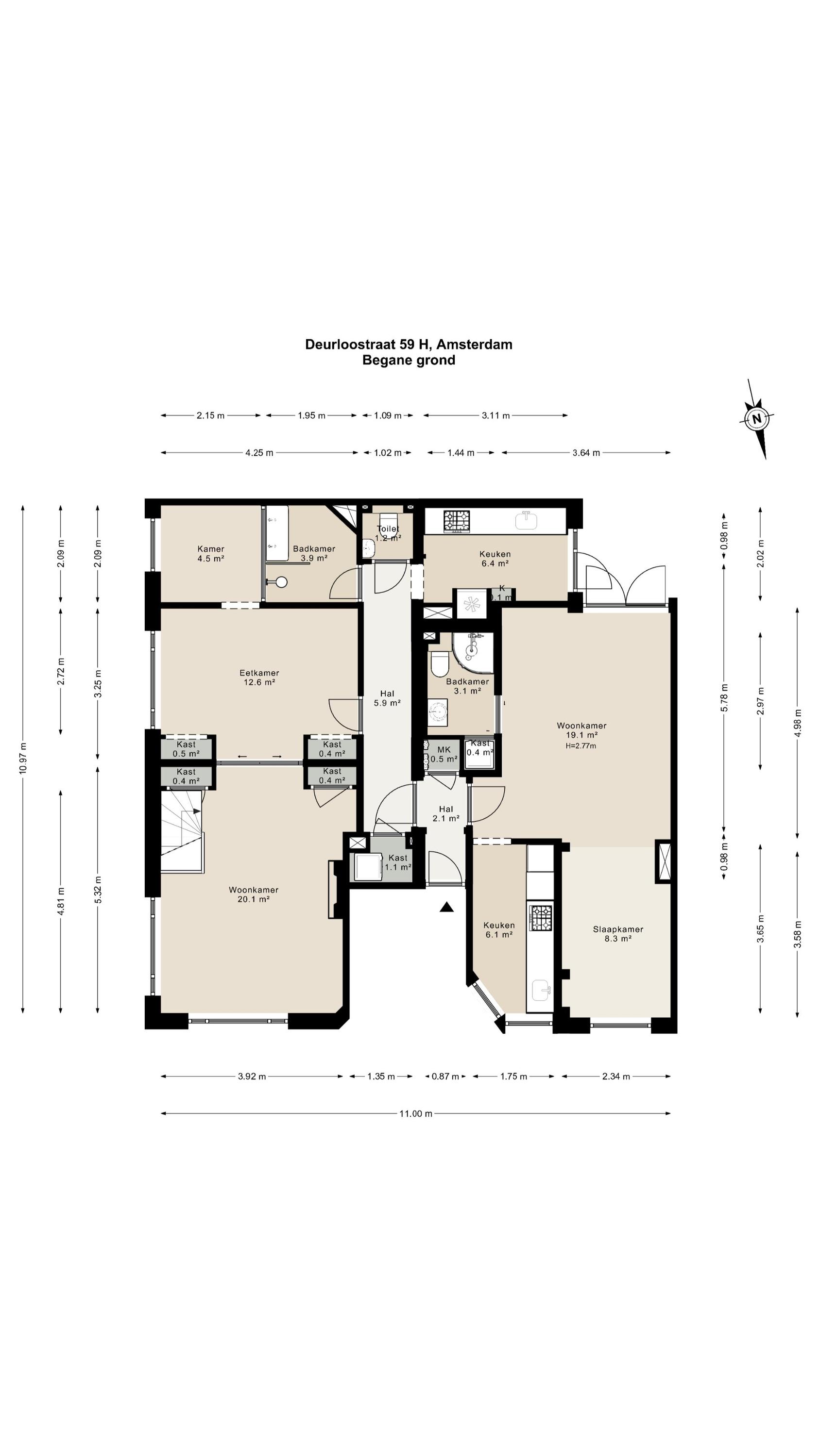 - Apartment right: approx. 127 m² (NEN2580: 107 m² living area + 20 m² other indoor space with a ceiling height of 1.9m)