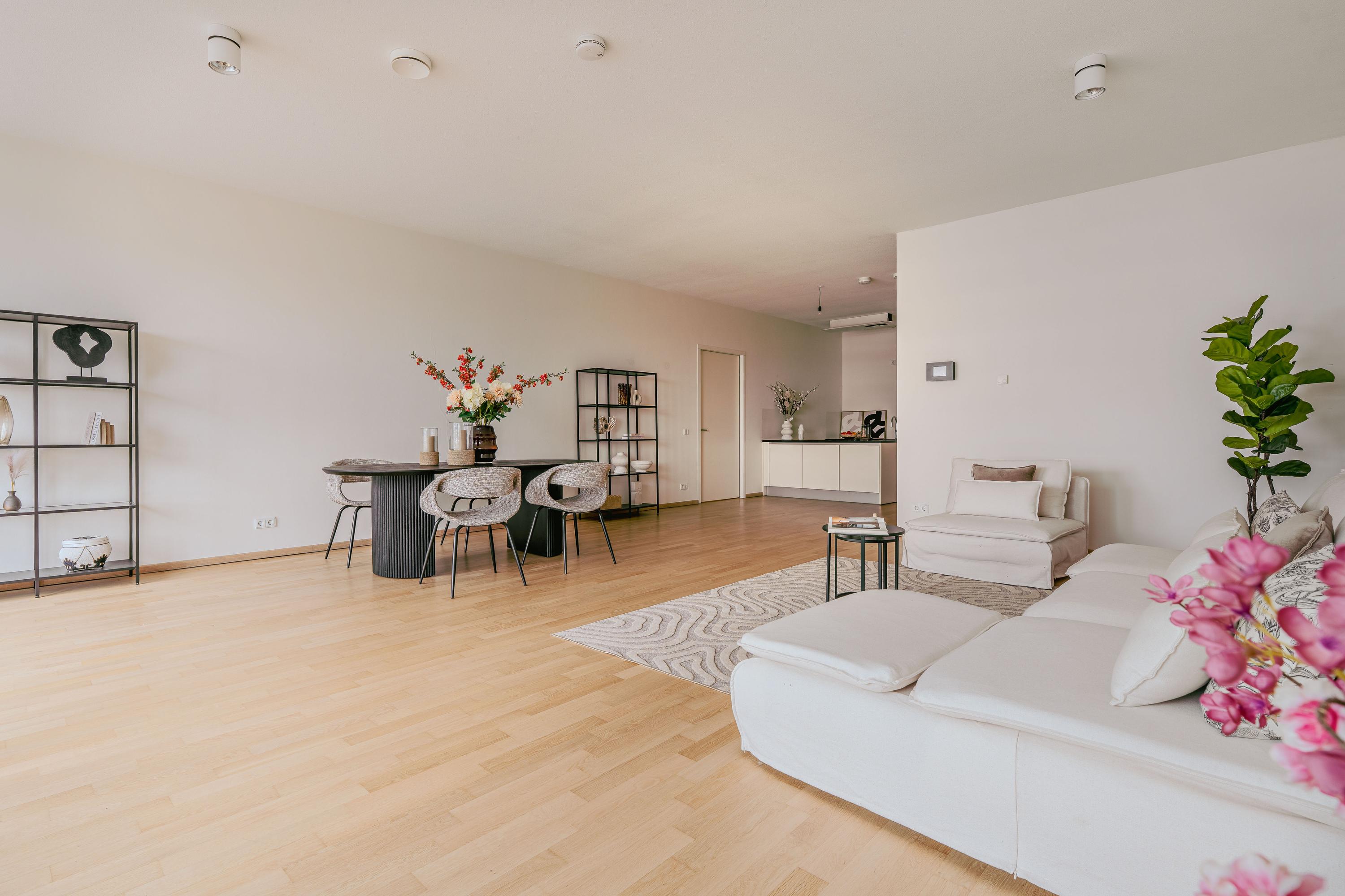 Throughout, high-quality finishes underscore the apartment’s refined stature. The open kitchen is equipped with select built-in appliances, facilitating seamless everyday living and understated entertaining. Separate utility and storage areas provide considered convenience.