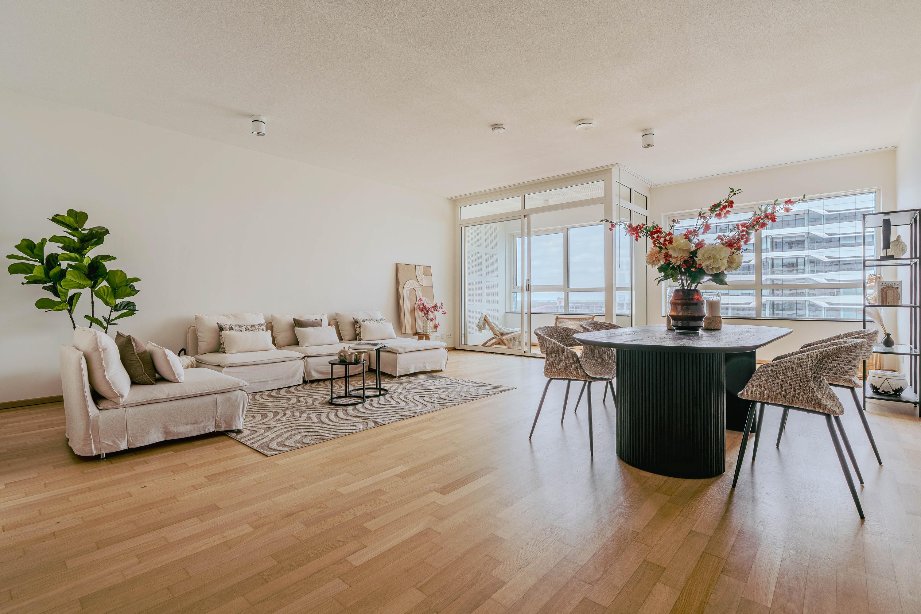 Apartment Amsterdam Zuidas invites distinctive living on the 16th floor of the New Amsterdam building, where 171 m² of thoughtfully planned space frames the city’s ever-evolving skyline. This apartment offers two spacious bedrooms and two modern bathrooms, each designed to balance clarity and calm with subtle urban elegance. Floor-to-ceiling windows orchestrate an abundance of natural light, sparking a sensation of openness heightened by panoramic city views from dual sunrooms.