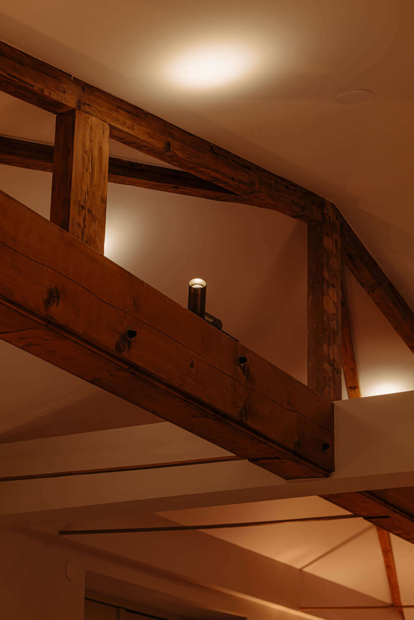 The building’s private parking spaces give access to the stylish, communal entrance with marble wainscoting. Here you will also find access to the meter cupboards for each apartment. The fourth floor and the entrance to the apartment are reached via the stairs or the elegant marble lift.