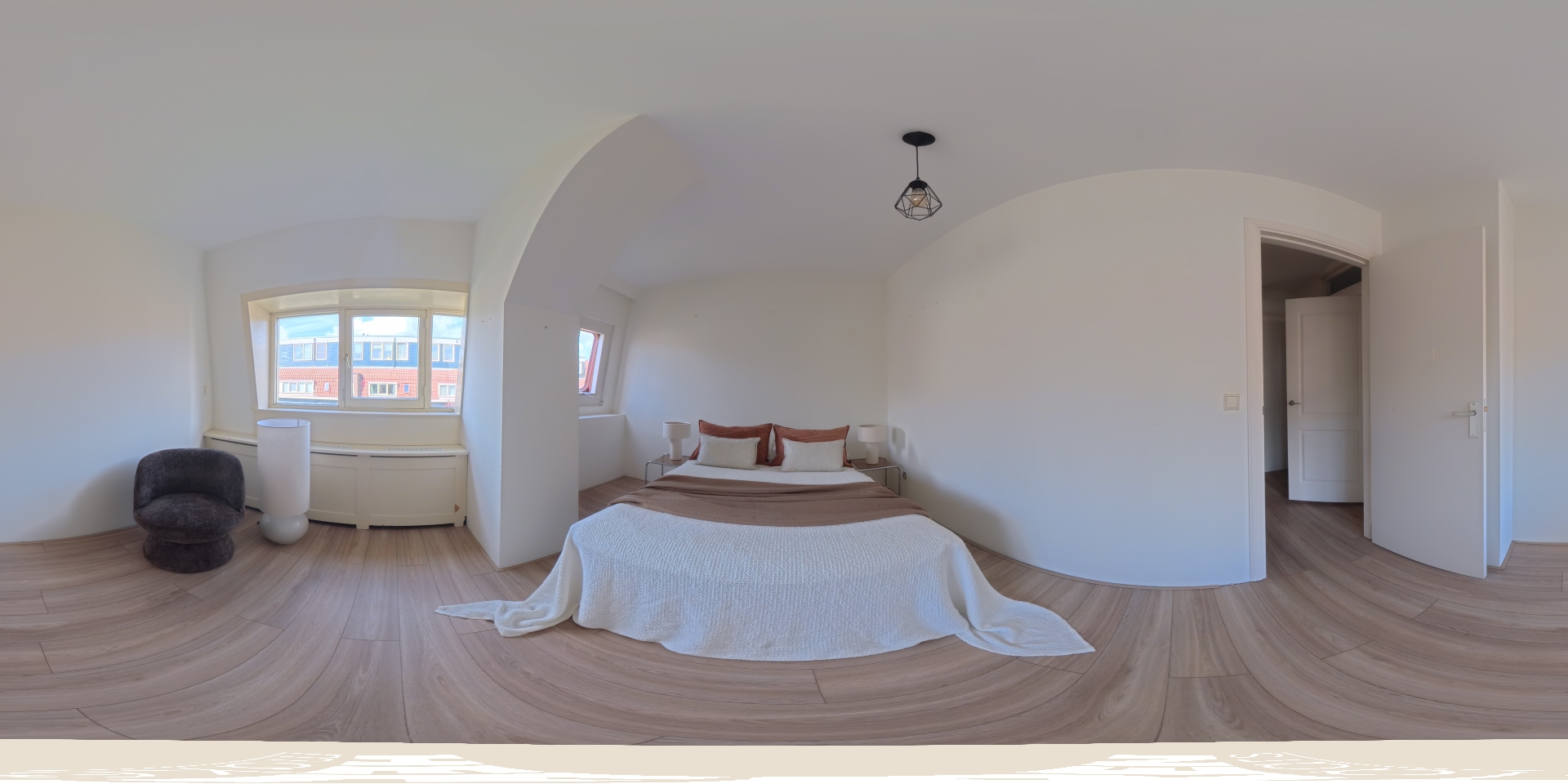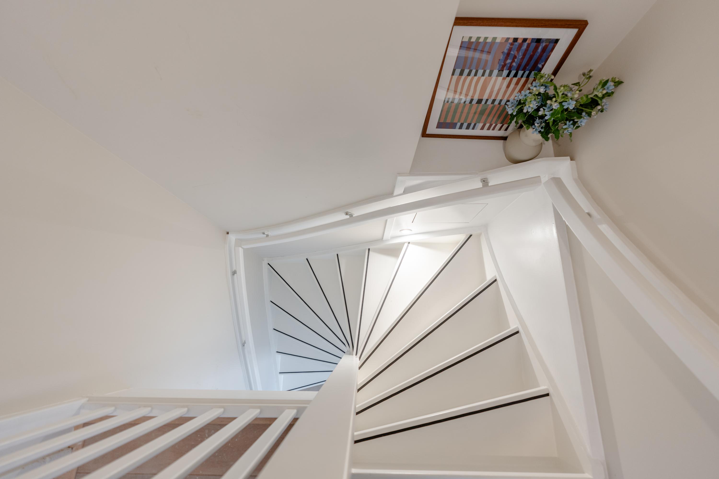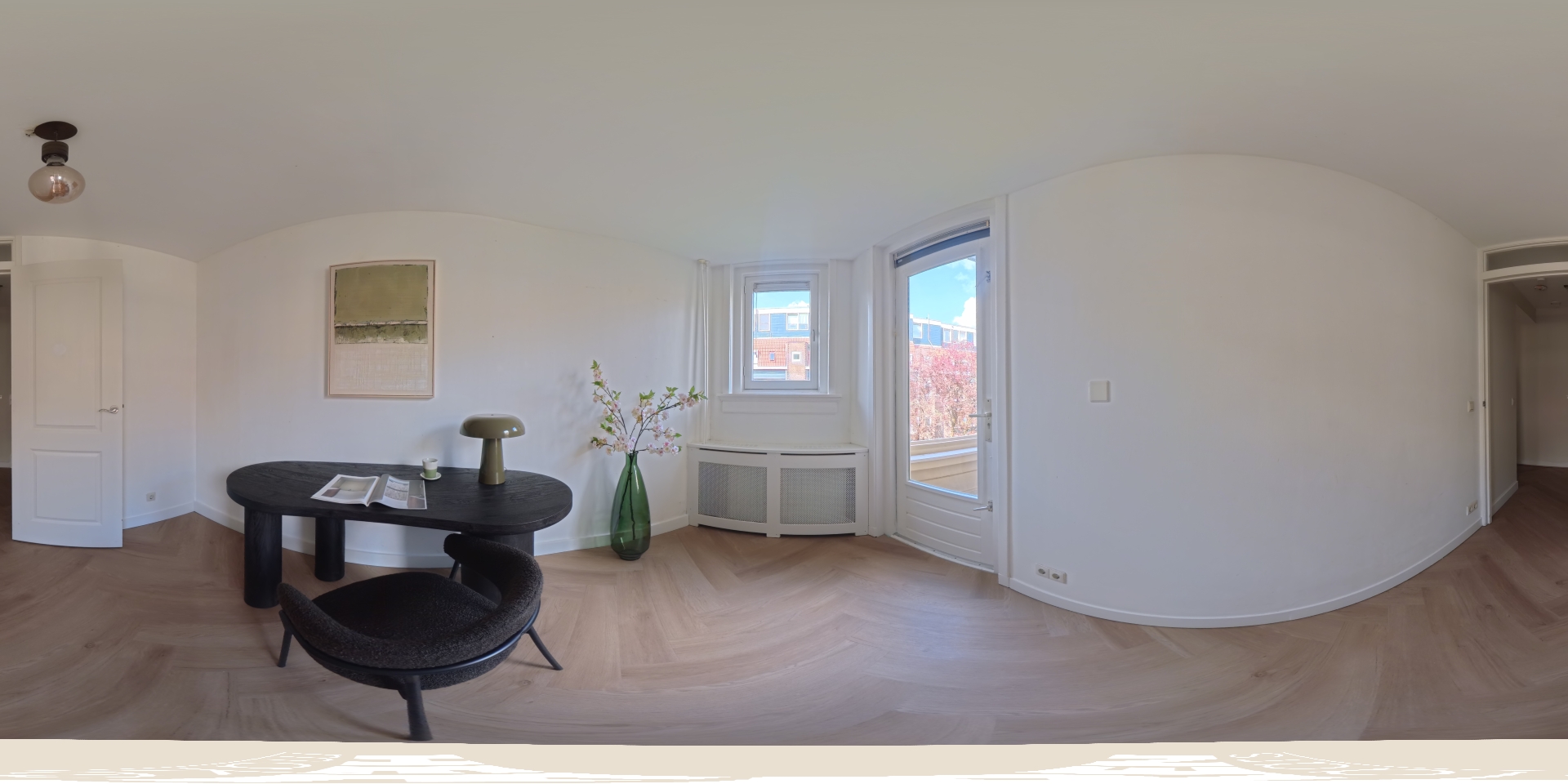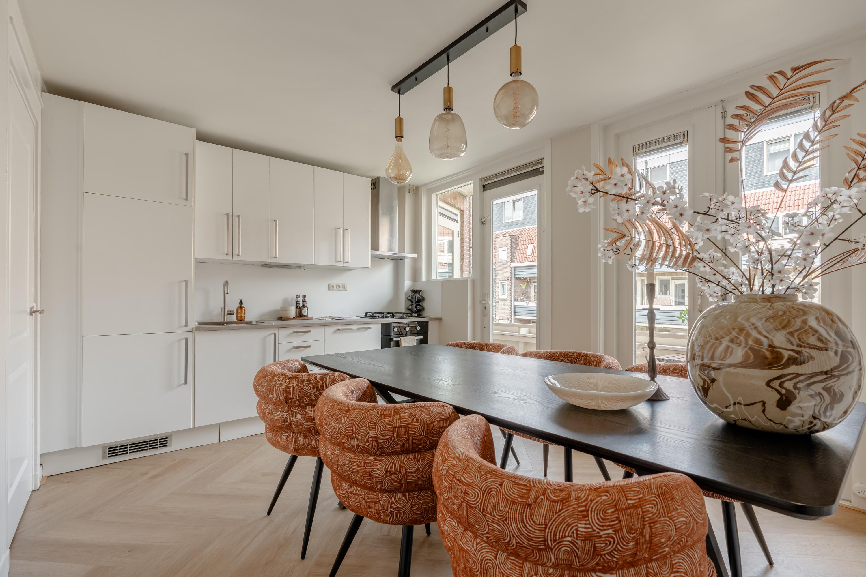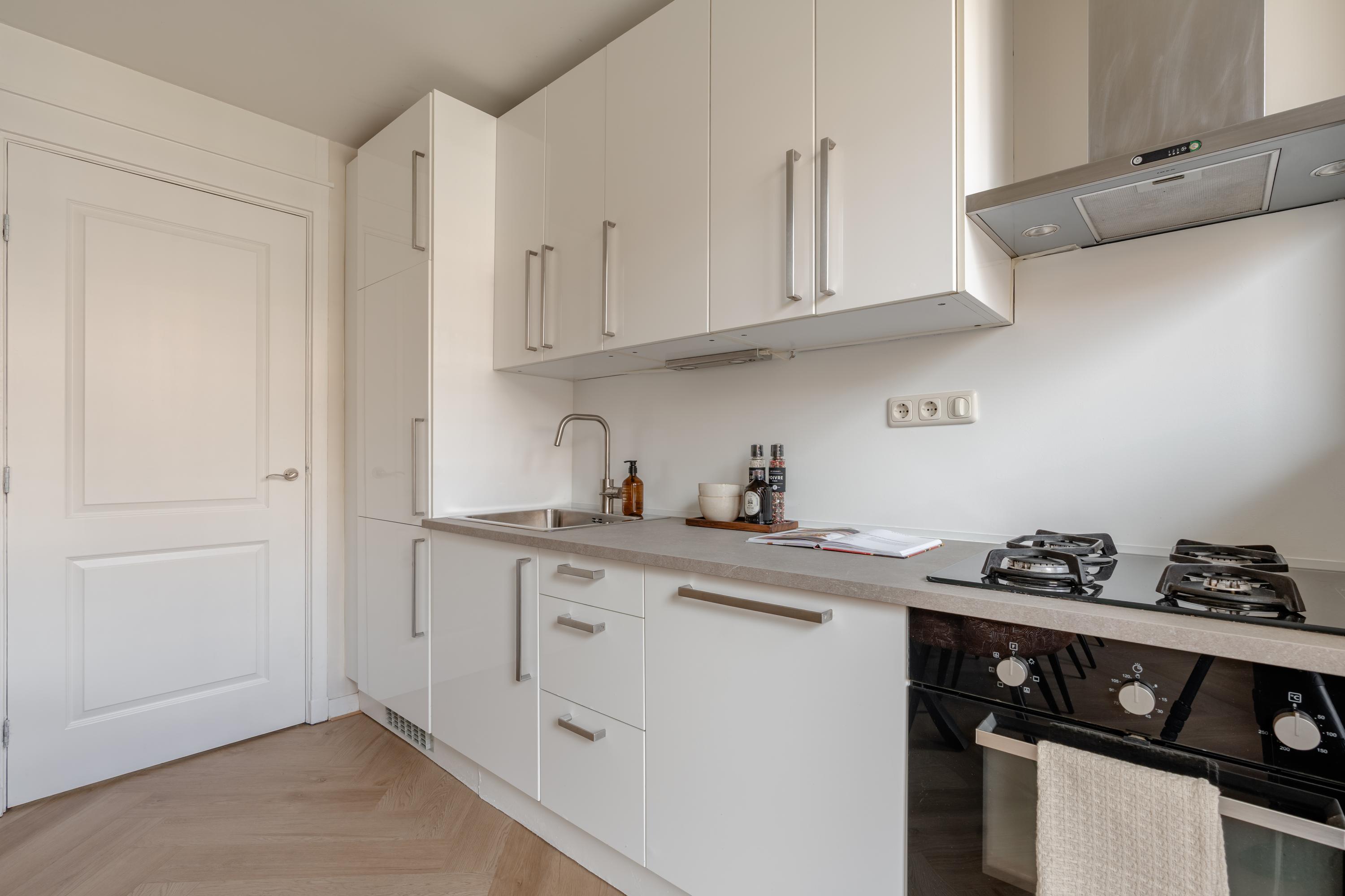 The living room at the front offers ample space to create a comfortable seating area. The charming bay window with opening windows allows for plenty of natural light and offers pleasant views over Jozef Israelskade and the water. At the rear, you will find the kitchen, situated in a pleasant open space yet separate from the living room. This makes it an ideal place to cook in peace and enjoy dining. Thanks to the three sets of French doors opening onto the balcony, this area is exceptionally bright. The kitchen is fully equipped, including a refrigerator, freezer, dishwasher, and a four-burner gas stove. The wide balcony, facing northwest, overlooks the quiet inner courtyard and provides a lovely place to relax. Adjacent to the kitchen is a bedroom that also has access to the balcony. This room can be flexibly arranged, for example as a home office, study, or children's room. The bathroom is also located on this level and features a bathtub, toilet, walk-in shower, and washbasin.