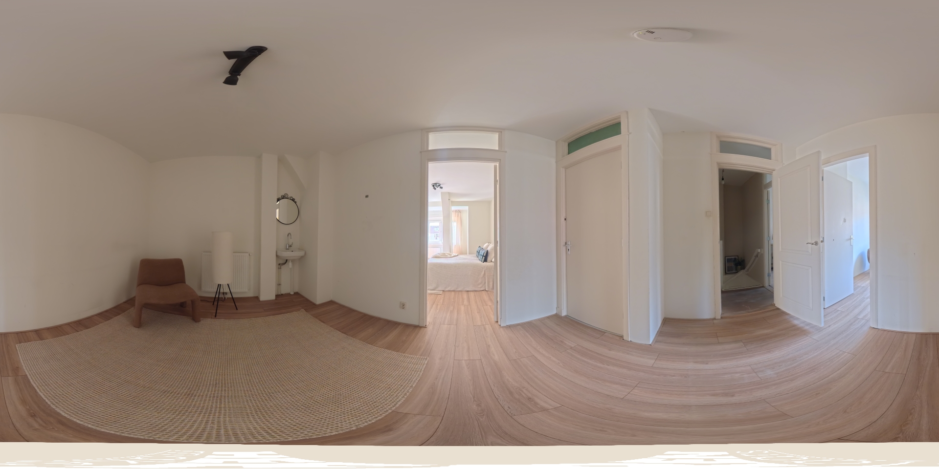 Via the communal staircase, you reach the apartment on the second floor, where the first level of the property is located. You enter a central hallway that provides access to all rooms. The apartment is neatly and stylishly finished, with well-maintained flooring and wall finishes.