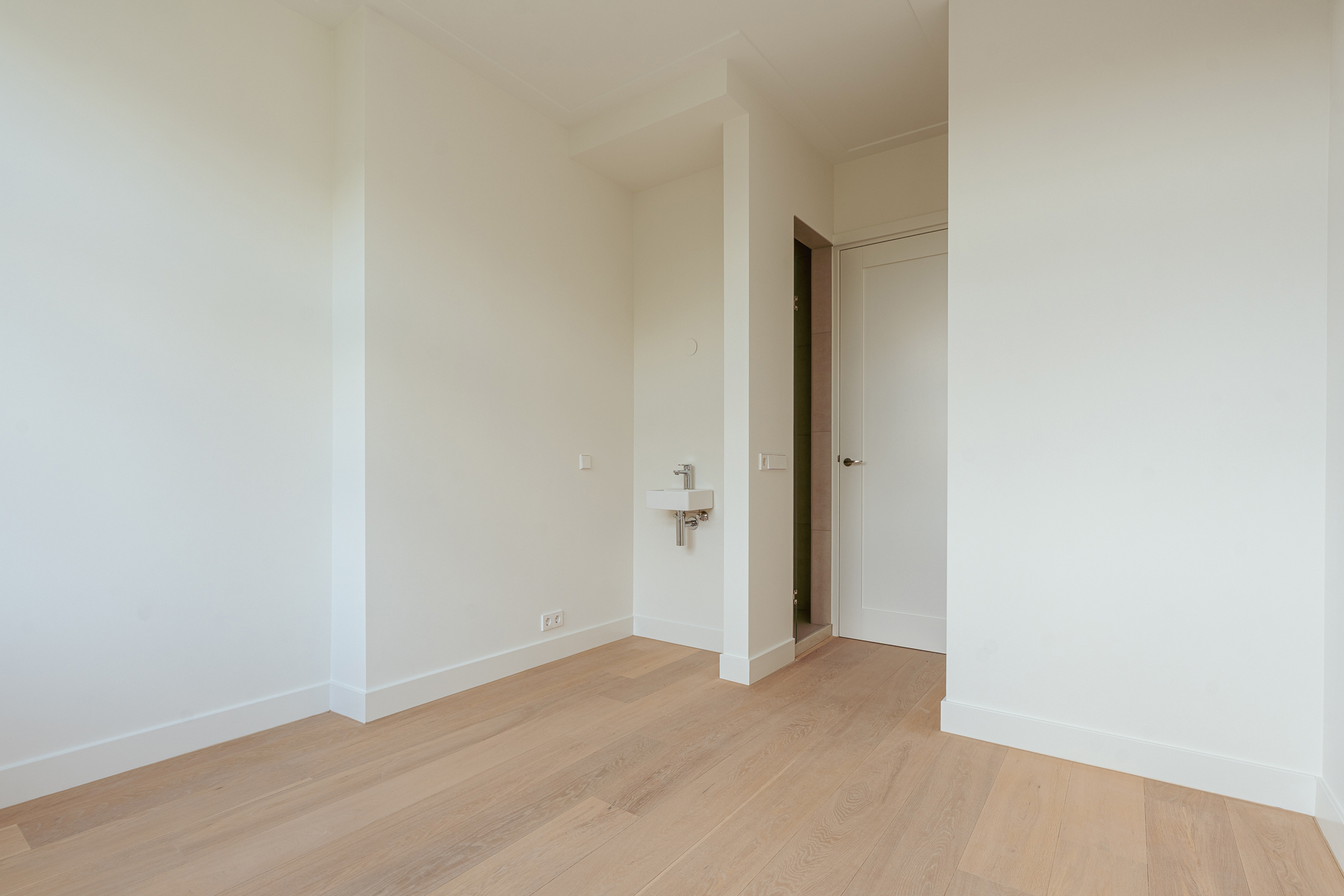 The open-plan kitchen is a true eye-catcher, fitted with high-quality built-in appliances: an induction hob with integrated extractor, dishwasher, combi-oven and Quooker tap. The combination of sleek handleless cabinetry and warm wooden accents gives this floor a modern yet inviting feel. From the living room you have access to a sunny southeast-facing balcony, perfect for a morning coffee or an afternoon drink in the sun.