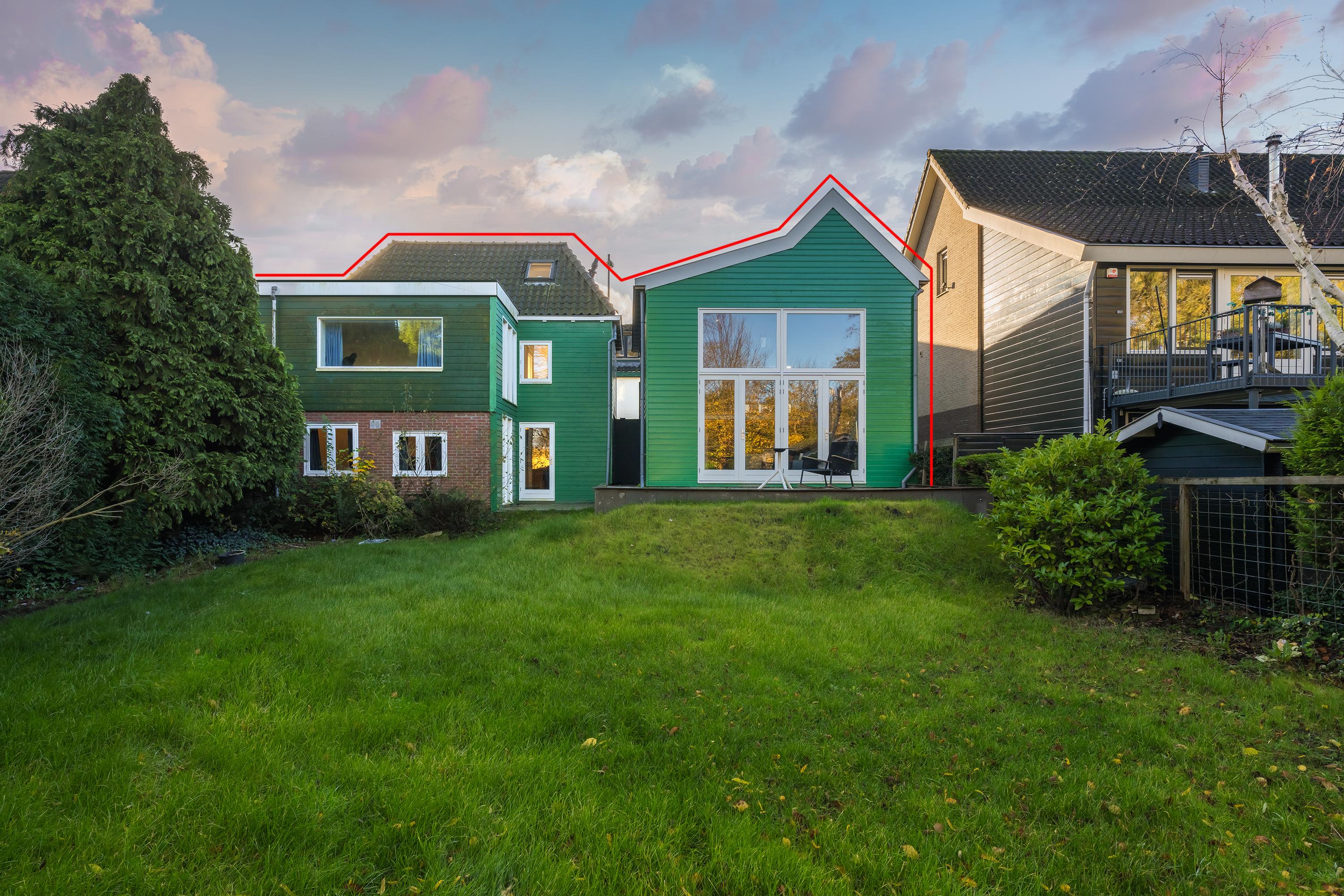 Detached house Amsterdam defines this home along the quiet Oostzanerdijk, where a lasting sense of privacy meets inventive, architectural flair. The property’s design blends two distinct volumes, one a contemporary Zaans house finished in fresh green, the other an original, thoughtfully remodeled stone dike house. At the garden level, these converge into a single, expansive 157 m² detached residence set on a generous 544 m² plot, unified by vast glazing and fluid sightlines across the lush garden.
