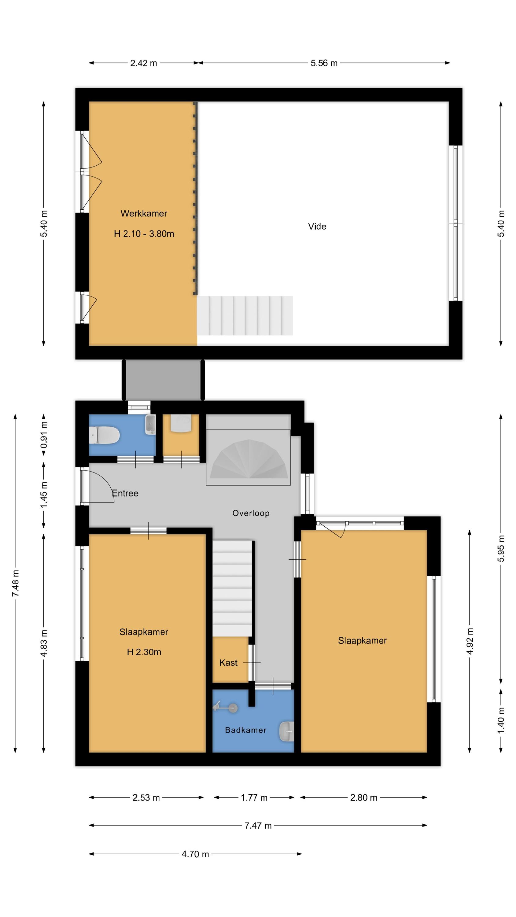 Four bedrooms, distributed between levels, offer privacy and scale for family or guests. Two bathrooms—one on each floor—feature walk-in showers and refined finishes. An additional detached 36 m² barn, a home office with private entrance, and the possibility of loft expansion, complete an adaptable plan ideal for work and living. Its address situates you within effortless reach of ferries across the IJ, primary schools, shopping, and the tranquil Dutch landscape of the Twiske.