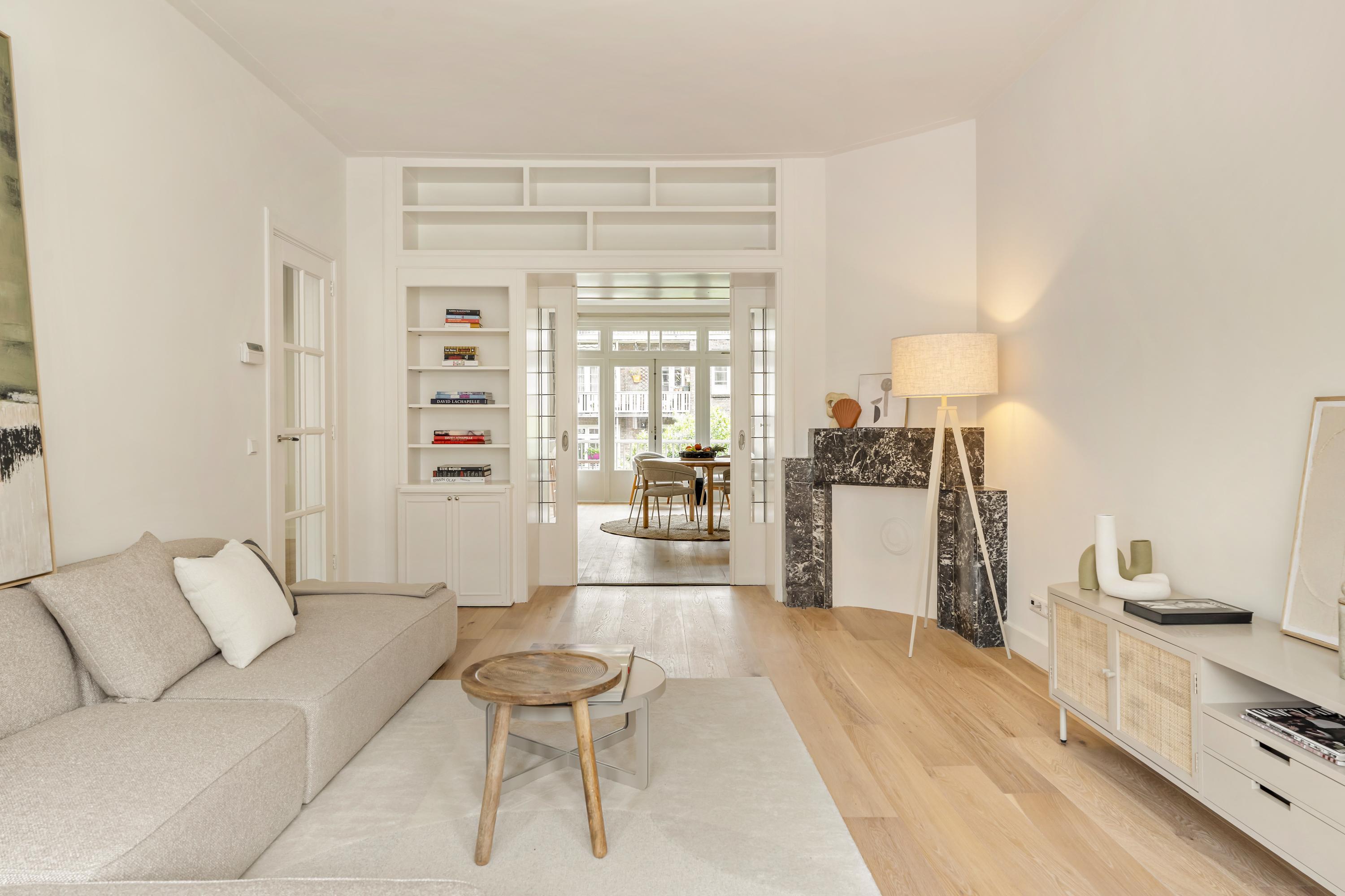 Apartment Amsterdam Zuid brings together period charm and contemporary comfort in a coveted Amsterdam-Zuid address. This residence spans approximately 112 m², offering three well-proportioned bedrooms and a spacious living area infused with character. The apartment’s heritage features, including original sliding doors, custom cabinetry, and iconic bay windows, are complemented by thoughtful renovations such as floor insulation and double glazing.