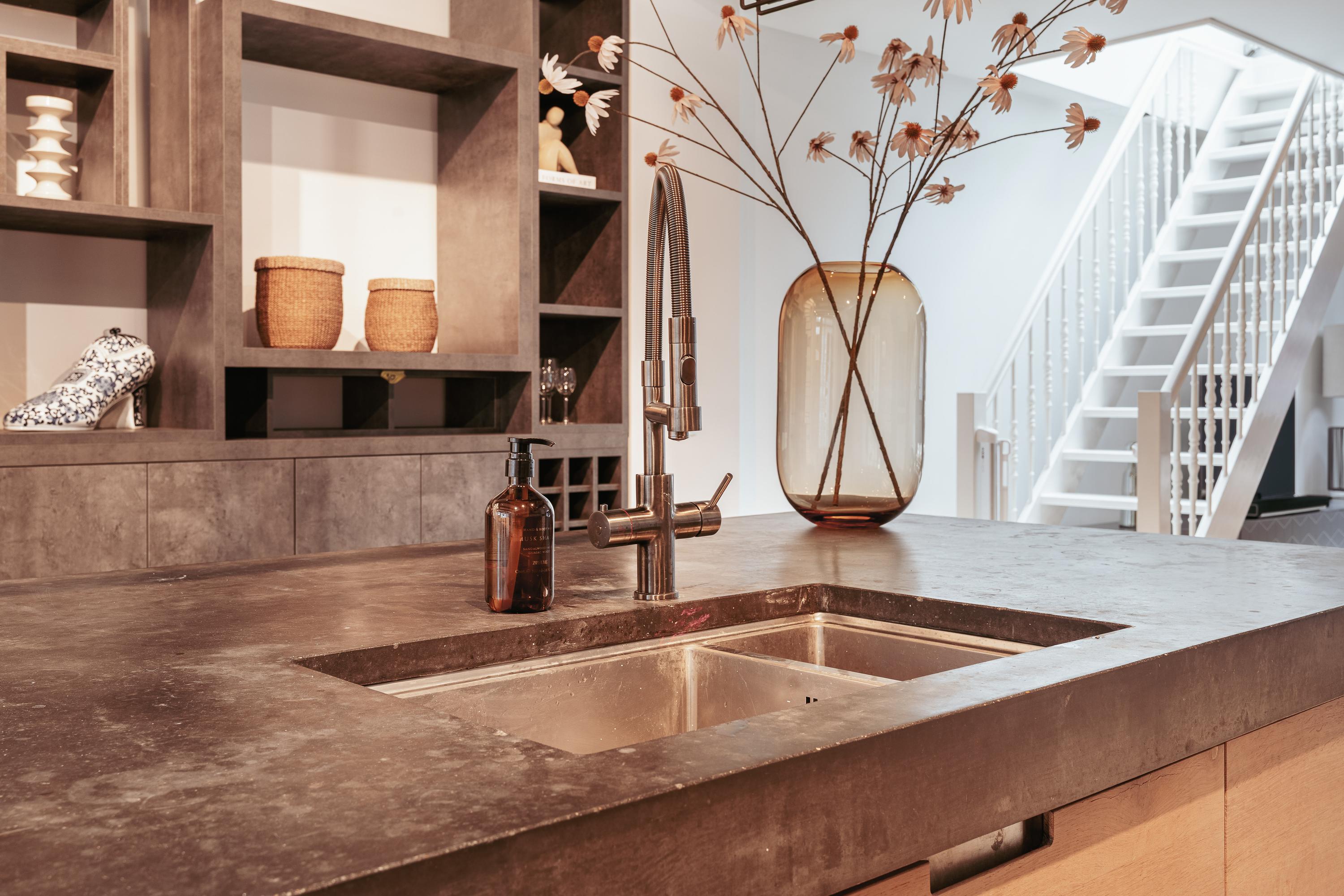 The renovated interiors blend modern comfort and authentic detail, with three bedrooms and two bathrooms arranged across a thoughtful layout. Lofty ceilings with exposed beams, original windows, and canal views underpin the apartment's character. Materials are carefully selected, including warm wood, stone worktops, and bespoke cabinetry in the expansive kitchen-diner, which stretches over 39 m². Spaces are defined by clarity and calm, with natural light filtering throughout—especially in the living area, where a skylight and a fireplace anchor evenings in.