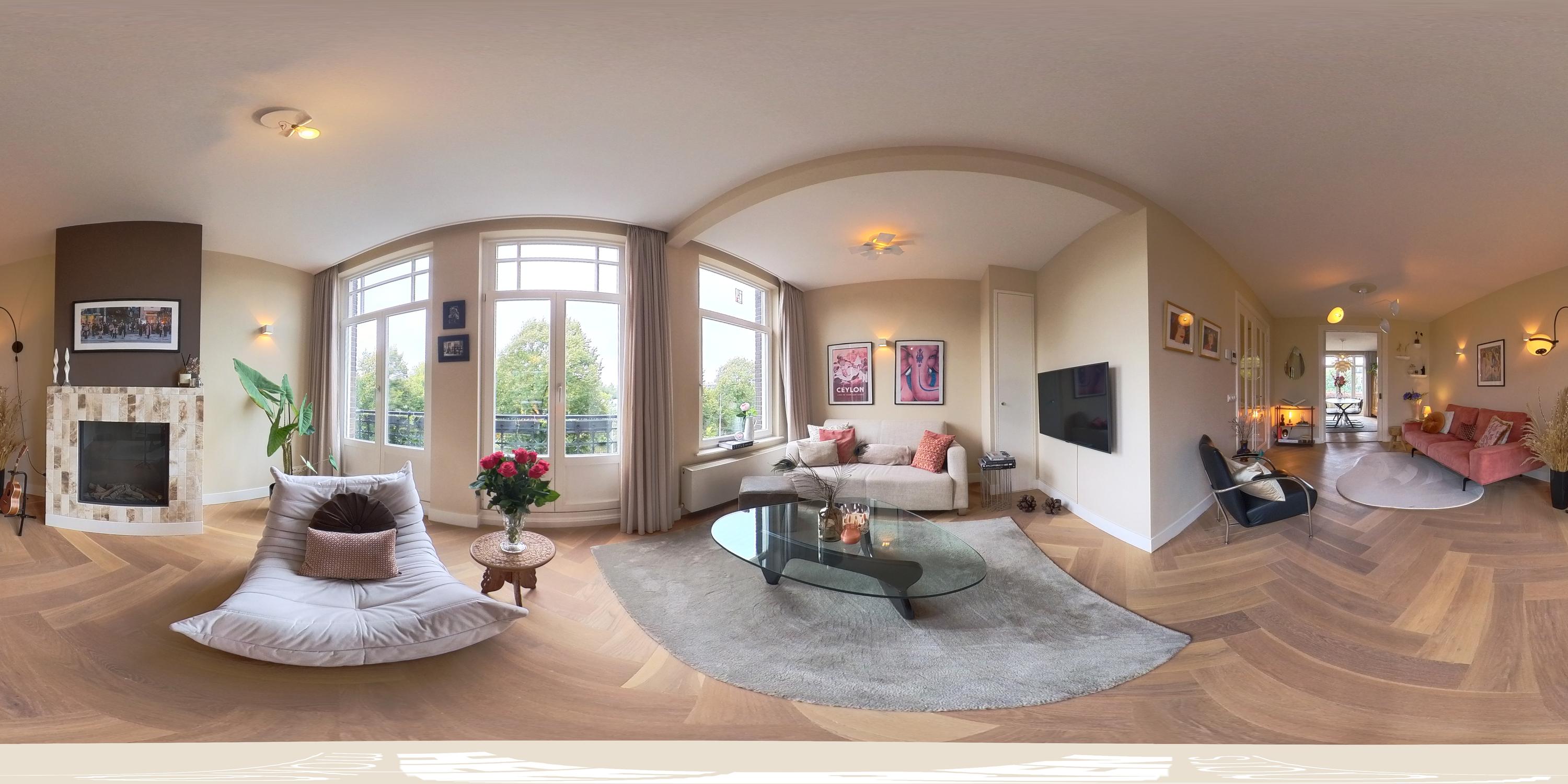 The third floor is the heart of the home and features an exceptionally bright living space with unobstructed views of Artis and the surrounding greenery. A truly unique experience: you can regularly hear the sounds of sea lions, monkeys, and even wolves in the evening, adding a remarkable atmosphere to city living.