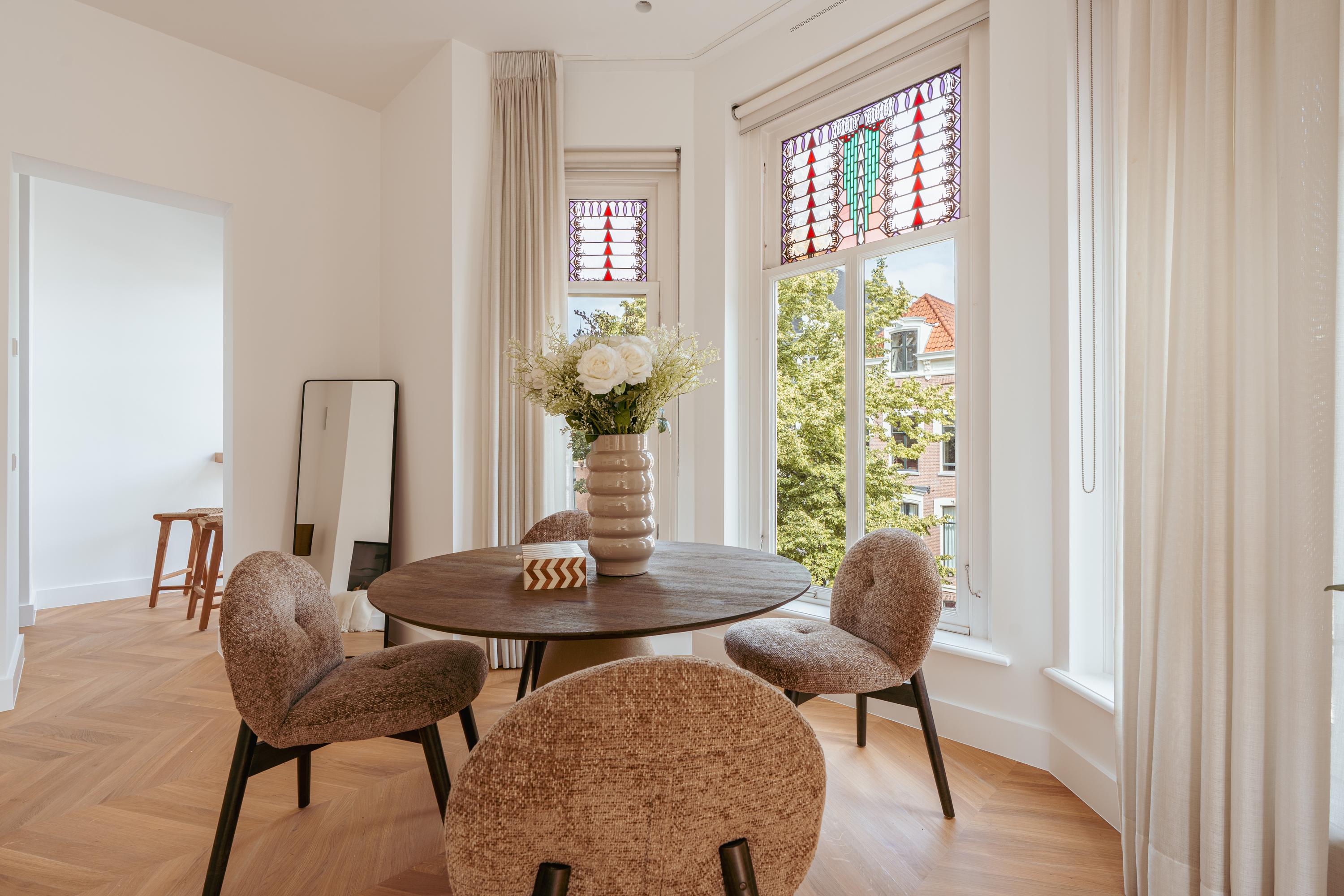 Stylish and bright apartment of approx. 85 m² in the beloved Vondelpark neighbourhood. Situated in a unique location in Amsterdam Oud-West, this wonderfully light and recently fully renovated apartment of approximately 85 m² is located in a monumental building with a lift. The property is finished to a high standard and features two comfortable bedrooms, each with a private en-suite bathroom, a modern kitchen equipped with luxury built-in appliances, and a spacious living room with high ceilings, a charming fireplace, and characteristic bay windows that allow beautiful natural light to flow in. Furthermore, the apartment is located on freehold land – so no leasehold applies!