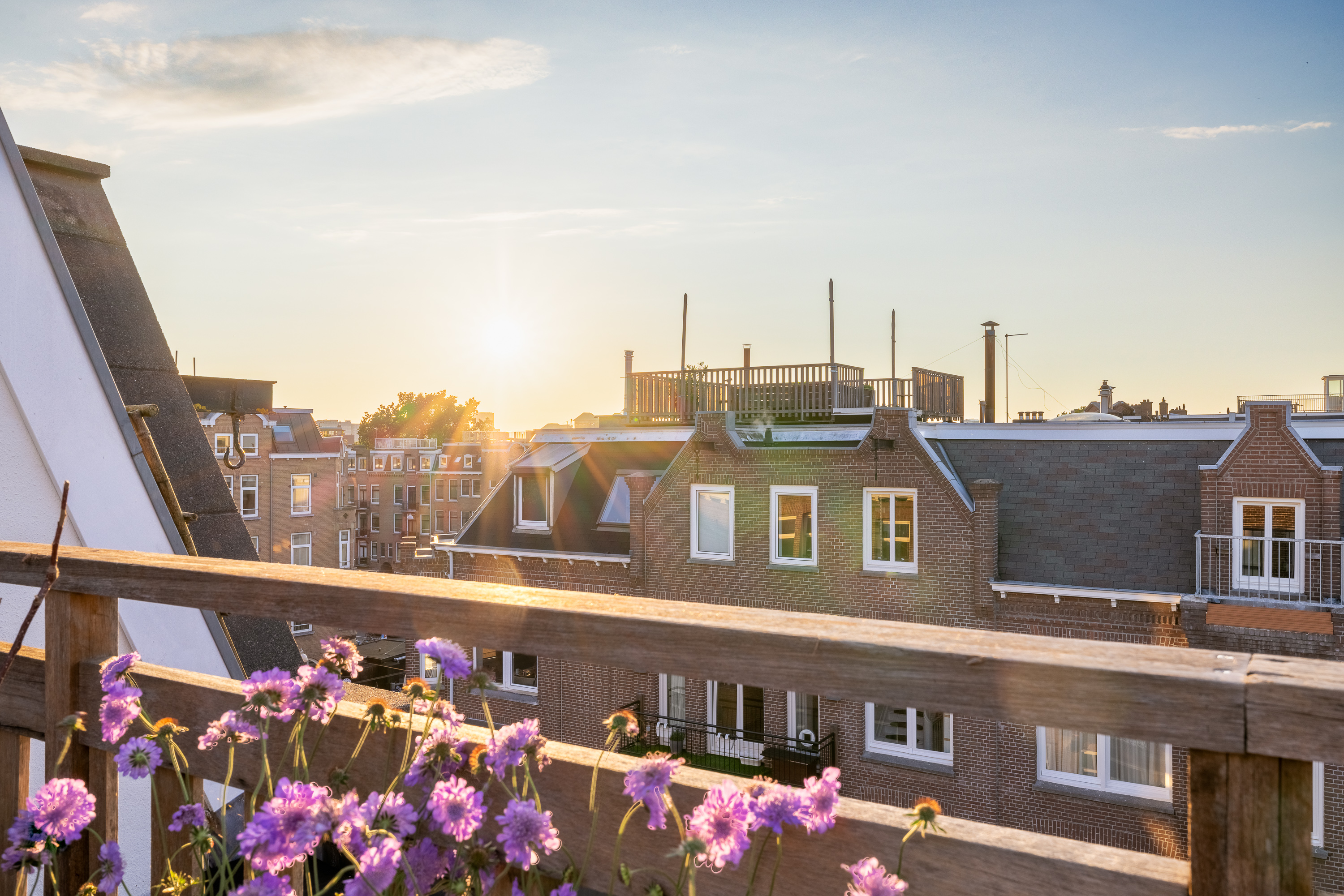 At a fantastic location in the popular Amsterdam Oud-Zuid, we offer this wonderfully bright and spacious double upper house. The beautiful roof terrace provides plenty of privacy, and you can enjoy the sun all day long. Multiple seating areas can be created. The house has three bedrooms, a spacious walk-in closet, and a roof terrace structure that can also be set up as a home office or yoga space. At the front of the house, there is also a lovely balcony.