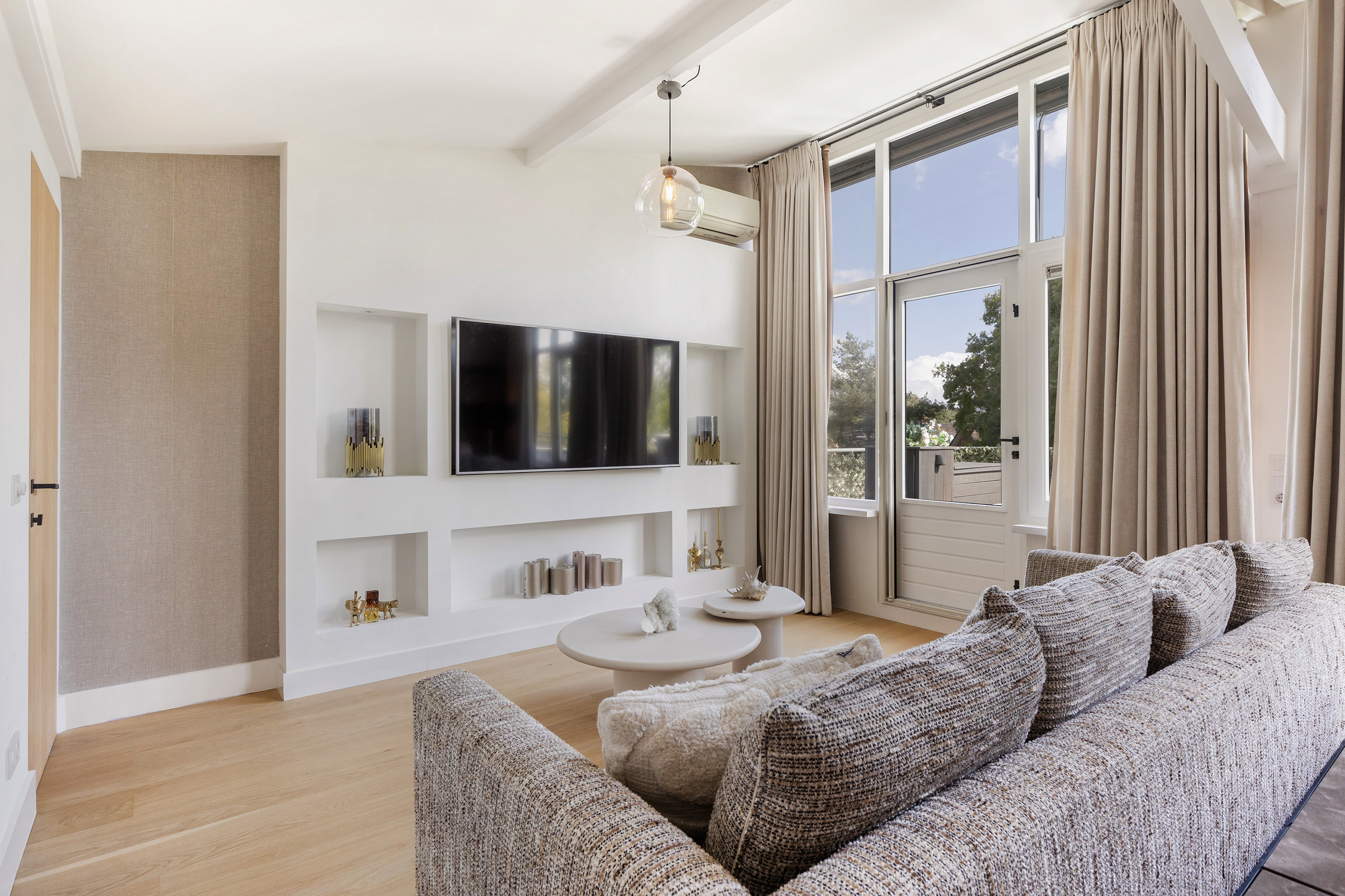 Villa Apeldoorn with Ibiza-inspired design stands as an exceptional expression of luxury and tranquility, presenting 393 m² of living area on a 585 m² plot. This remarkable property synthesizes the atmosphere of a boutique hotel in Ibiza with the warmth of a refined family home. Designed for those who prioritise privacy and excellence, the villa unfolds across split levels, inviting light and easy movement throughout generous communal spaces and six bedrooms, four of which feature bespoke marble bathrooms.