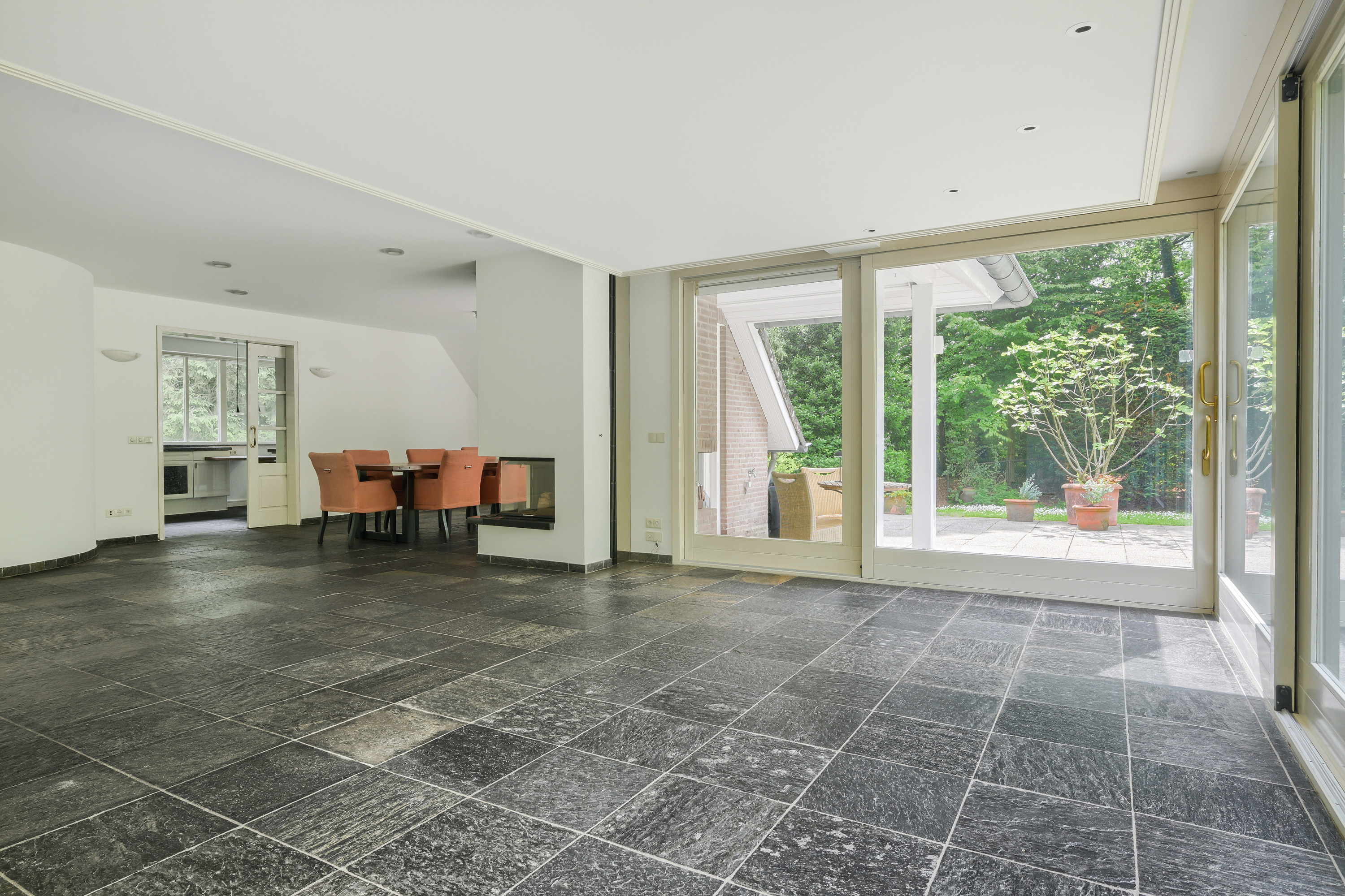 Located on a unique and expansive woodland plot on the edge of Baarle-Nassau, this characterful and multifunctional residence is surrounded by a lush, park-like forest garden and several high-quality outbuildings.
