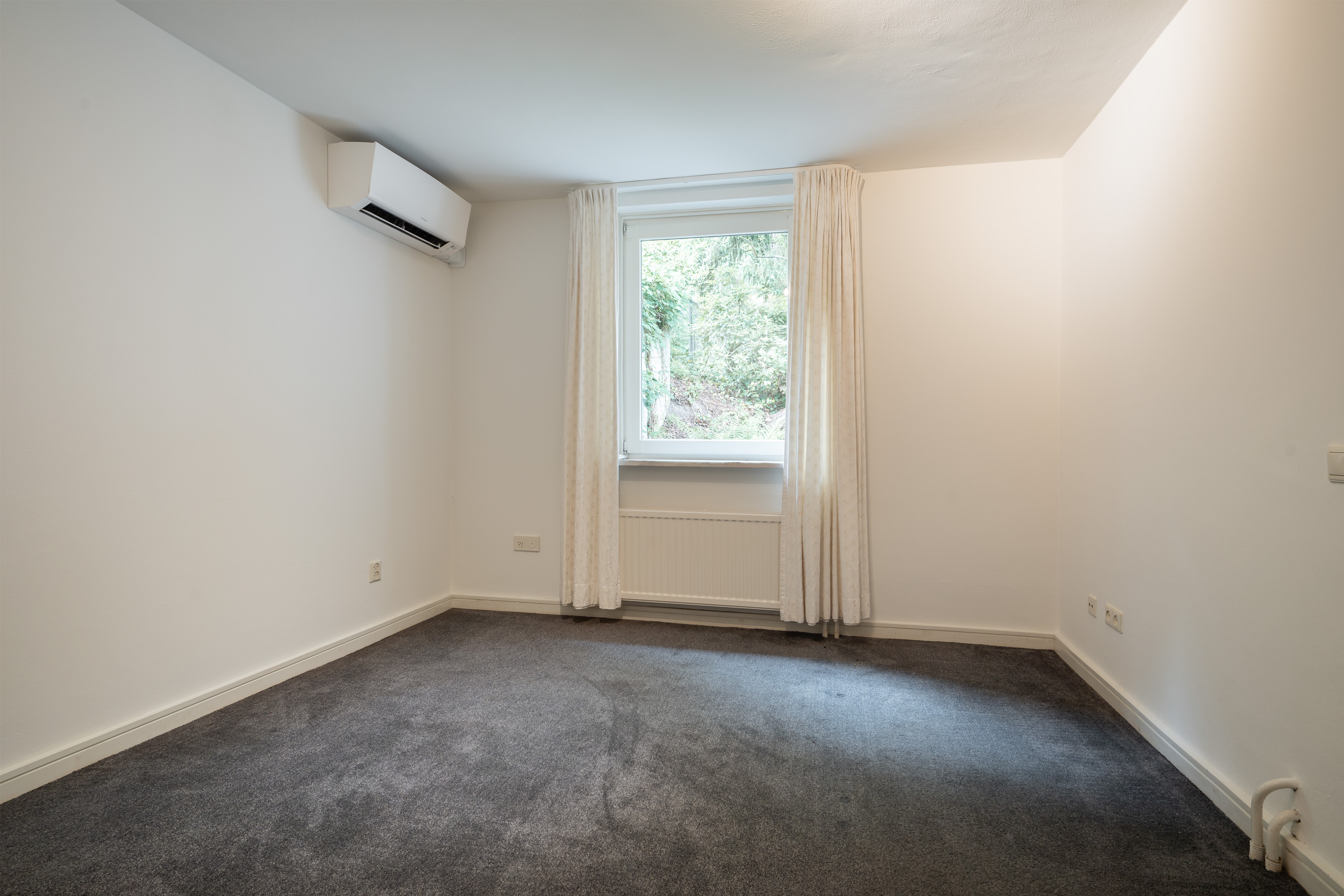 Beautiful living or working space with garden and terrace views. This bright room features large windows and is situated at the front of the house. A built-in cupboard contains the floor heating distribution unit.