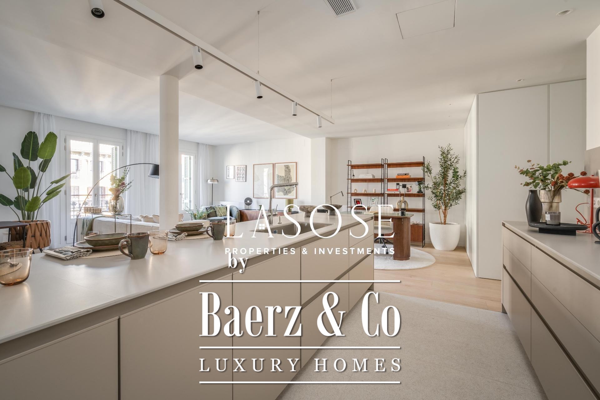 Within these walls, light moves fluidly between spaces, accentuating clean lines and generous proportions. The building integrates seamlessly with the distinctive rhythm of Eixample, whose octagonal blocks, broad avenues, and peerless connectivity set the pace of contemporary Barcelona living. Amenities include elevator access, built-in wardrobes, and a dedicated washing room, all composed without compromise.