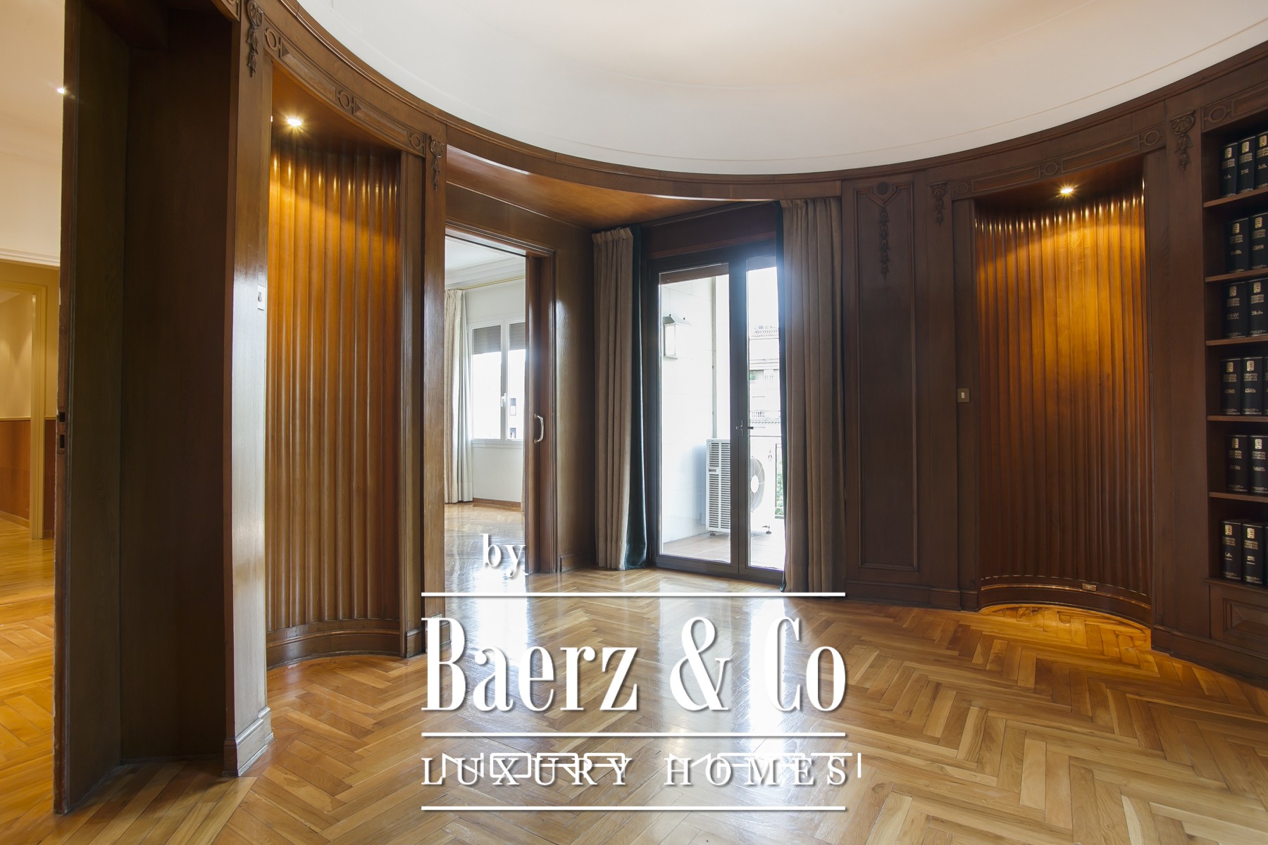 It has a classic distribution that highlights large spaces, wide hallways and the entrance of lots of natural light from three sides. The apartment has Split air conditioning in two areas of the house, built-in wardrobes, high coffered ceilings and very well preserved herringbone wood floors.