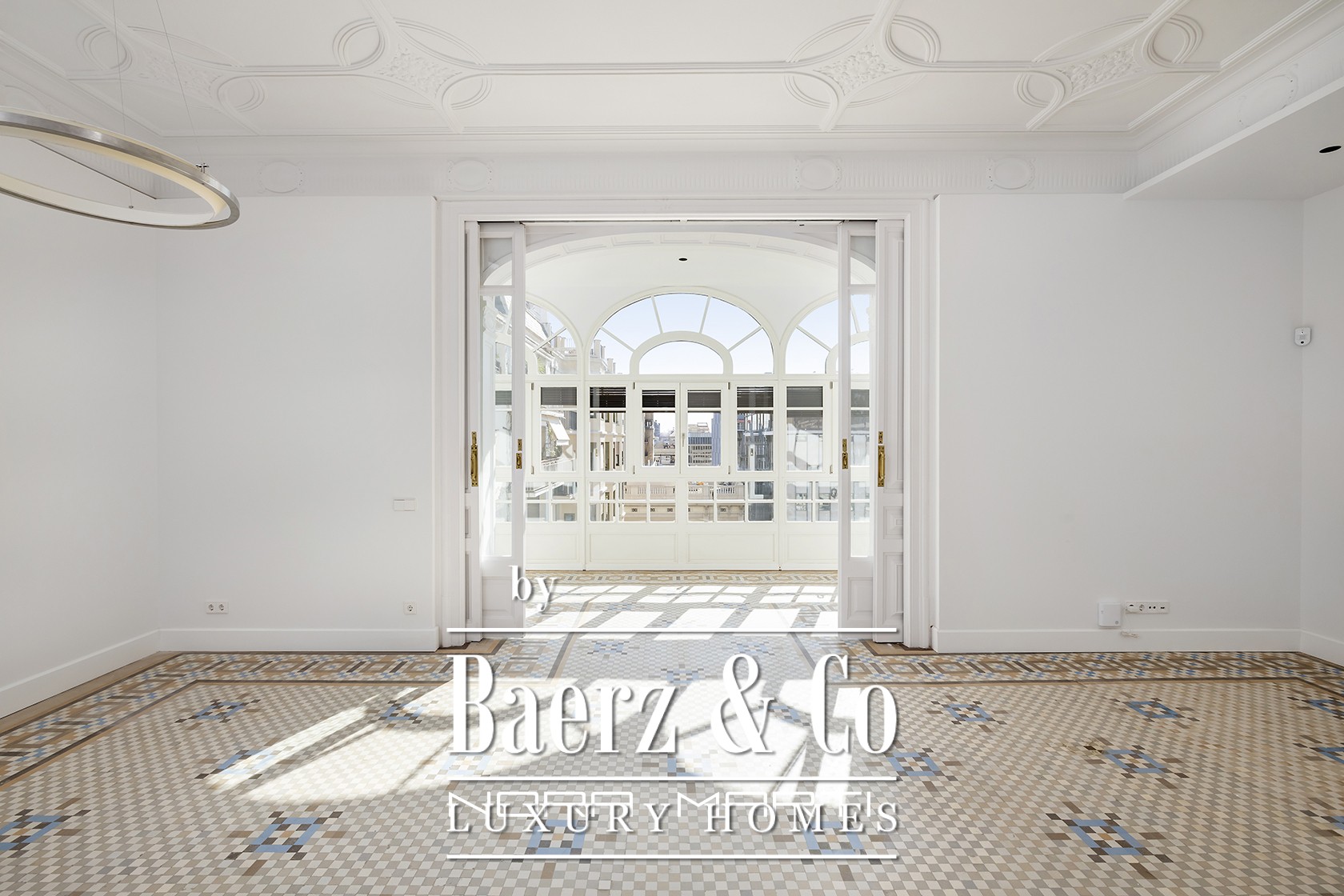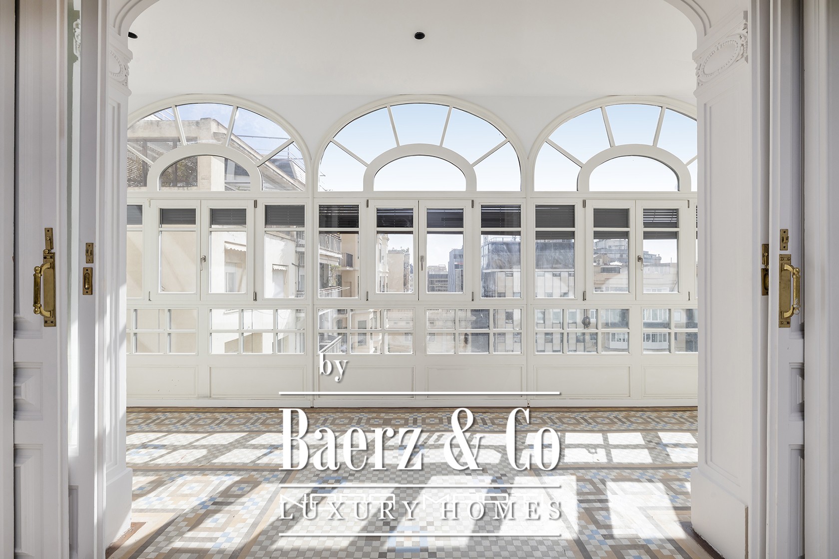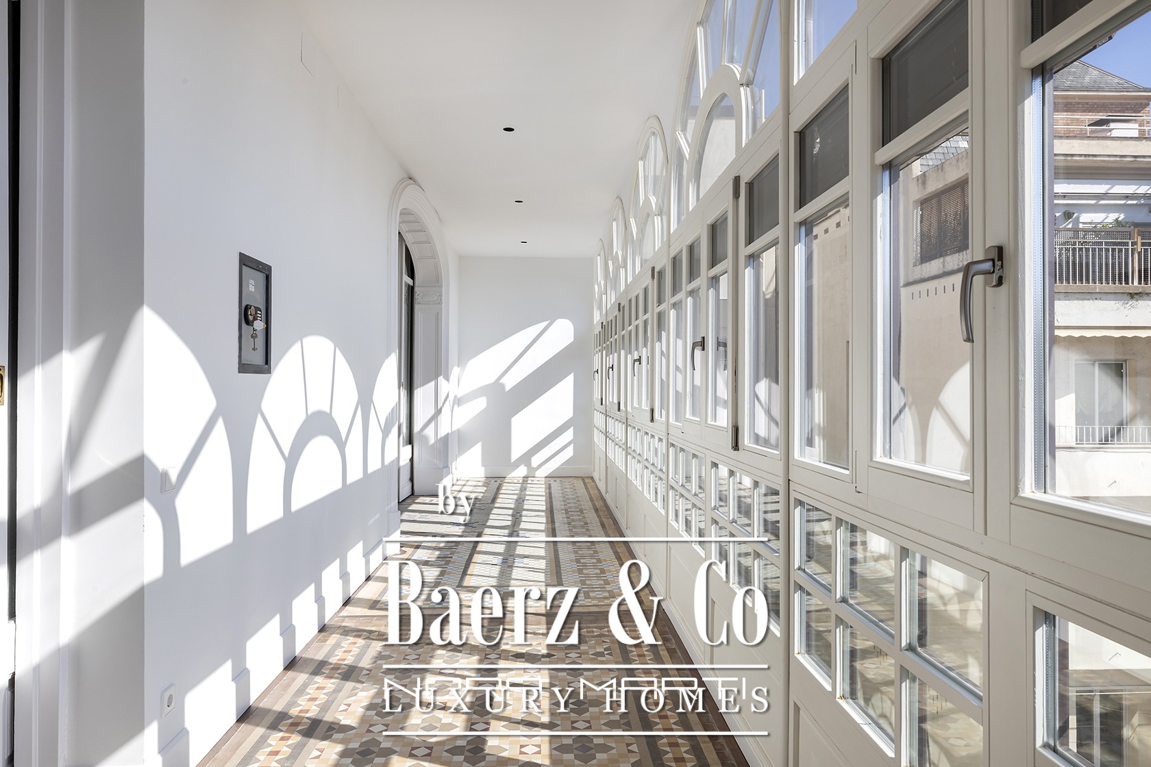 The apartment has been completely renovated, respecting its original character with details such as restored hydraulic floors and ceiling moldings of 3.5 meters high, which give a feeling of spaciousness and elegance. Some areas have Noia flooring, which gives it an exclusive touch. The gallery and restored windows ensure an excellent entrance of natural light throughout the day, which makes every space of the home warm and welcoming.