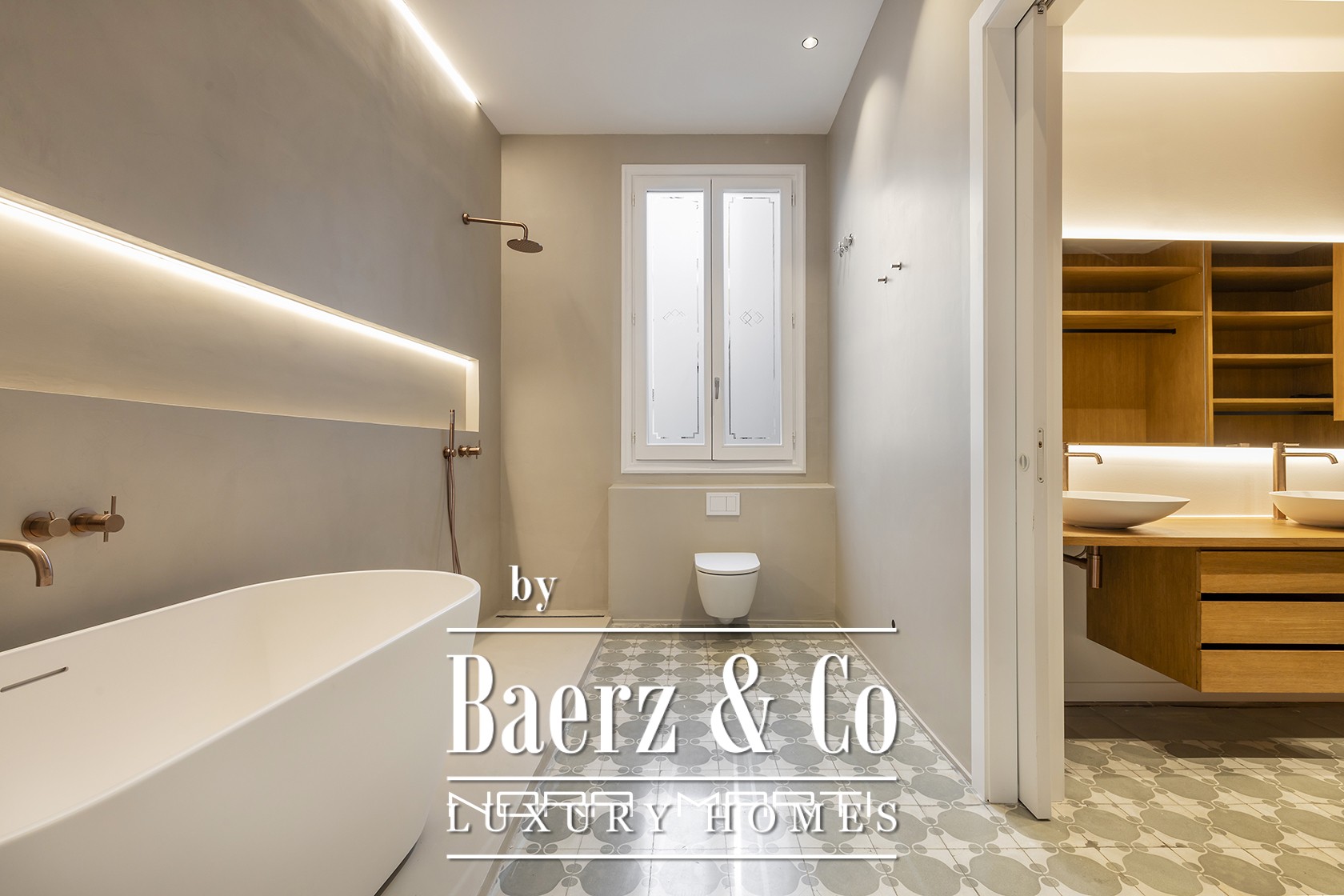 This wonderful apartment stands out for its modernist style, with a careful restoration of the original elements that make it unique. With a large and bright surface, the property has three bedrooms, one of them a spectacular dream master suite with a private bathroom and a fantastic dressing room that offers additional storage space and comfort. The other two bedrooms share a second complete and very spacious bathroom.