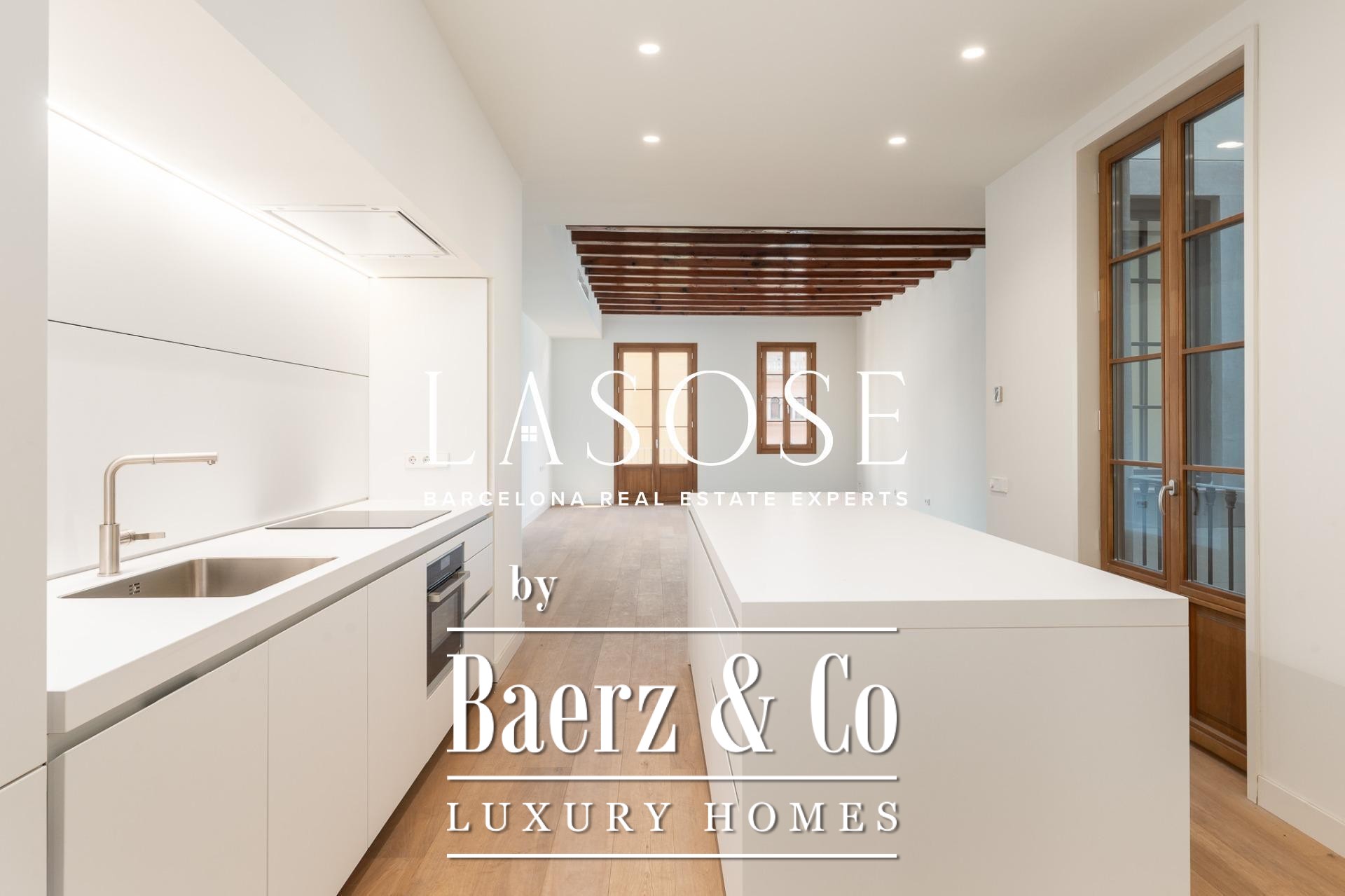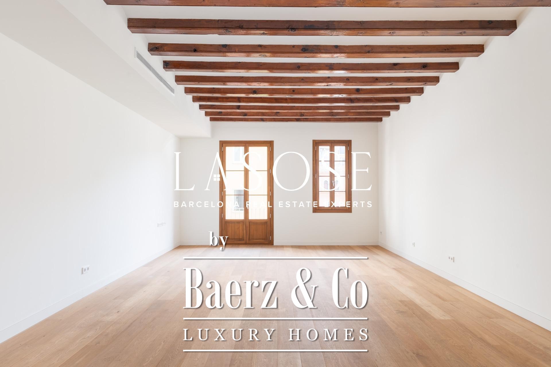 integrated throughout the apartment. The spacious bathrooms are equipped with top-of-the-line fixtures.. . Restored architectural details include the building's facades, Catalan vaulted ceilings, the building's entrance and staircase, as well as integrating original hydraulic floors in the bathrooms.. . The property is equipped with premium brands and building materials that maximize comfort: Miele appliances, Mitsubishi aerothermics, Bulthaup kitchens, Duravit fixtures and more. In addition, new double-glazed windows and reinforced floor substrates optimize privacy and sound control. . . Don't miss the opportunity to live in this unique apartment, where every day is an experience in itself. Contact us and come and discover your next home in the heart of Barcelona. Let yourself be seduced by the luxury, comfort and history that this magnificent duplex apartment has to offer. Your new life starts here!