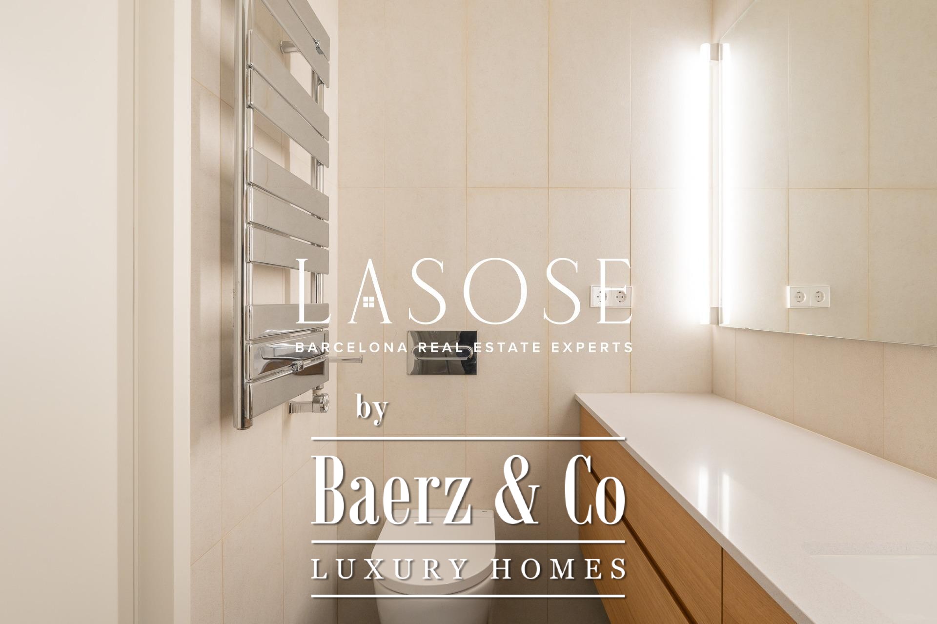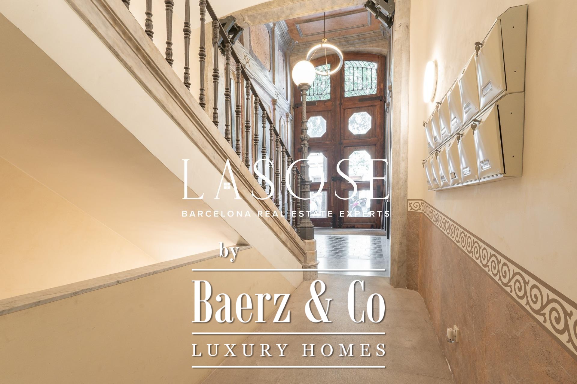Imagine yourself waking up every day in an architectural jewel in the heart of Quadrat d'Or del Eixample, one of the most prestigious and desired areas of Barcelona. A few steps from the emblematic Paseo de Gracia, you will find this spectacular new build apartment, where the charm of the nineteenth century merges with the comfort and modernity of today.. . An elegant glass foyer welcomes you to this exclusive home before accessing a spacious contemporary kitchen that opens to the dining and living rooms.. . An expansive balcony extends the length of the living room, a guest bedroom and master suite. Situated at the rear of the building, this residence receives morning sun and offers tranquil views of a neighboring garden and architecturally significant buildings.. . Separate day and night areas provide spaciousness and privacy. Oak wood plank floors visually expand the space, while closets are cleverly
