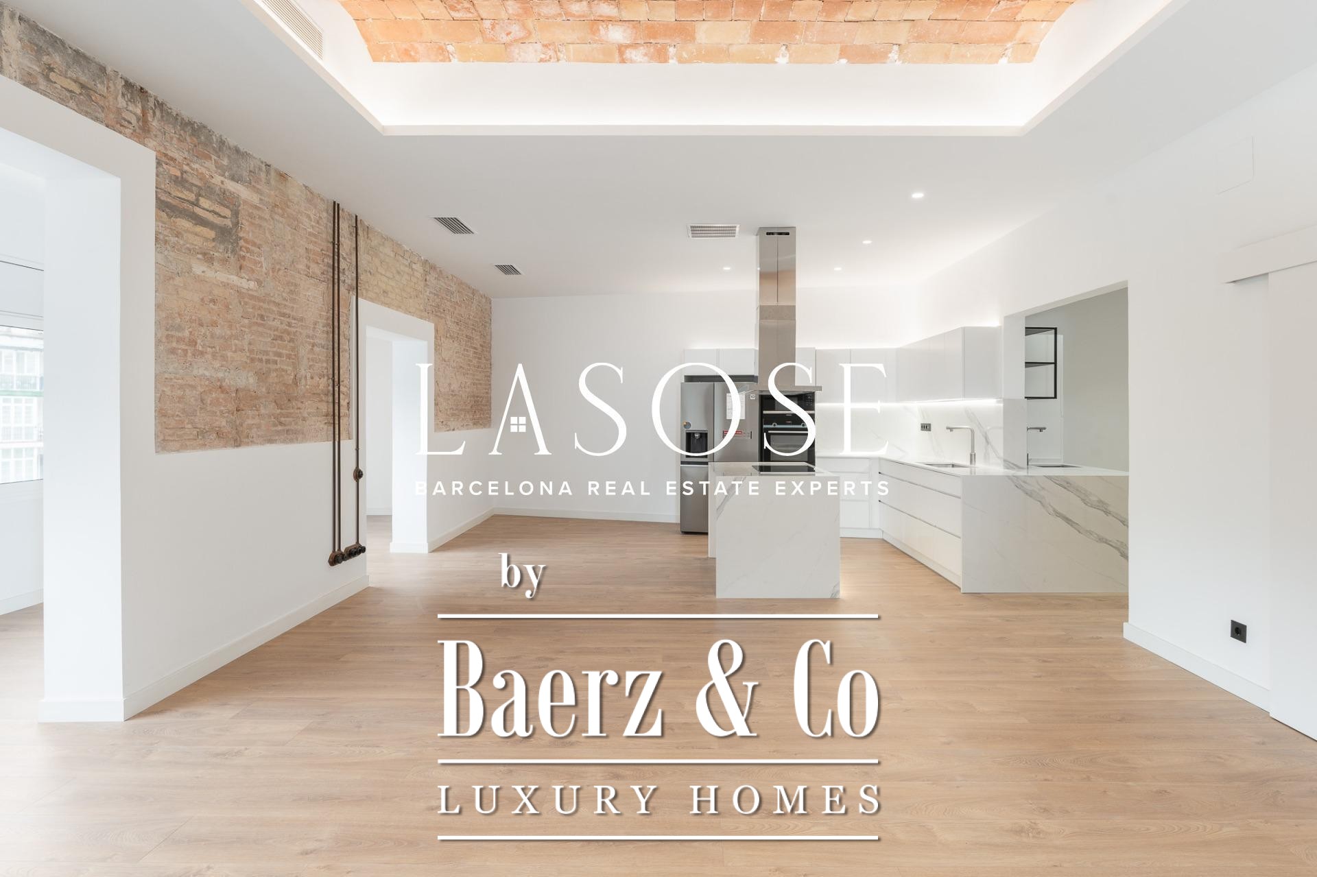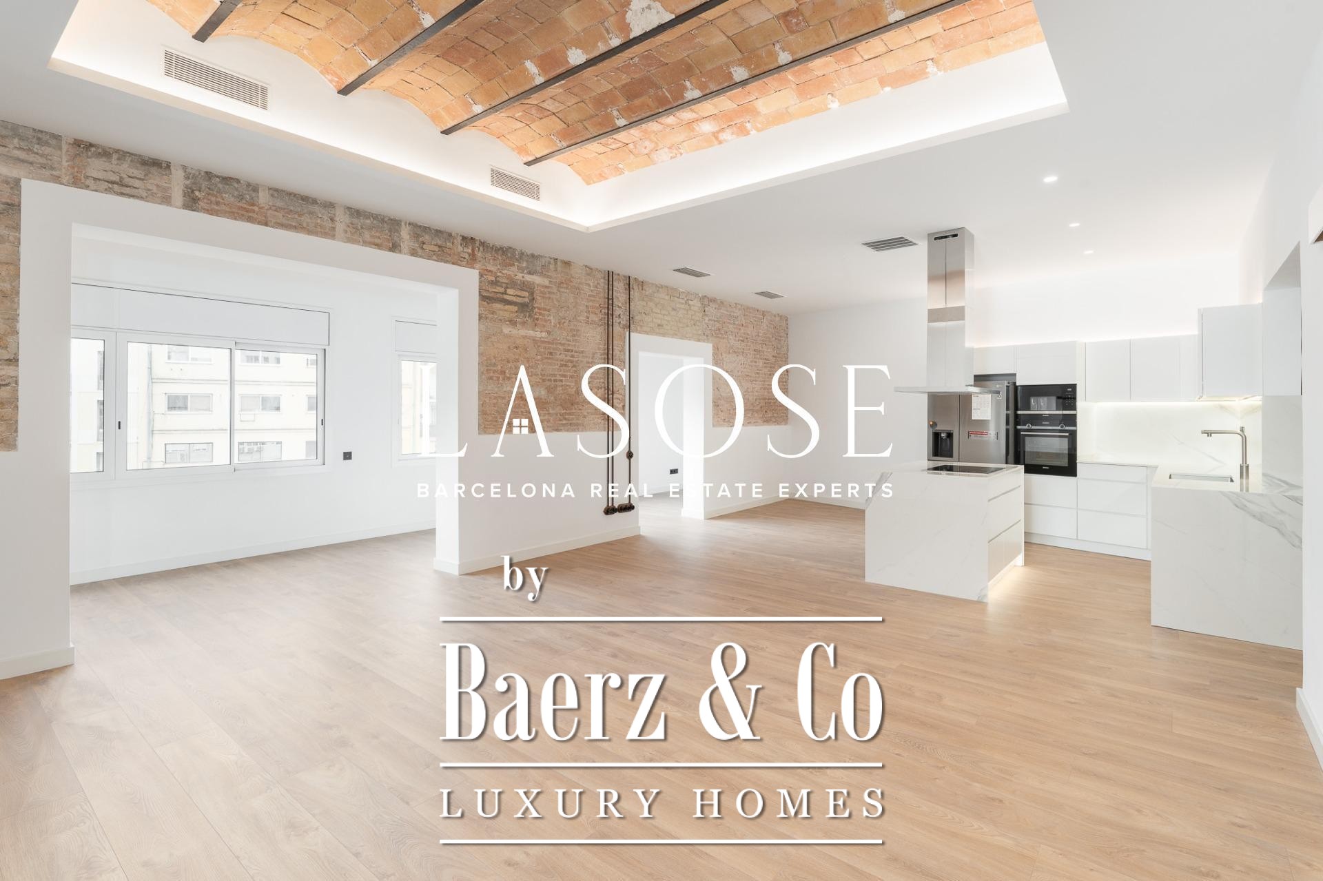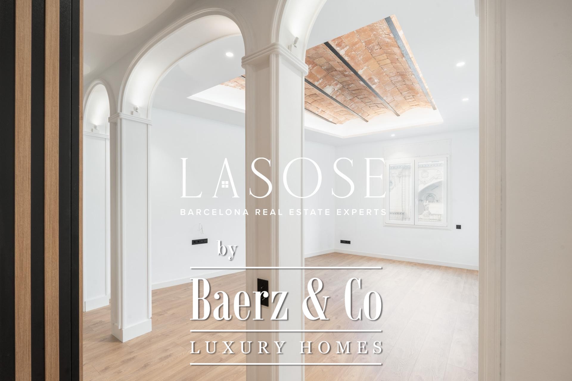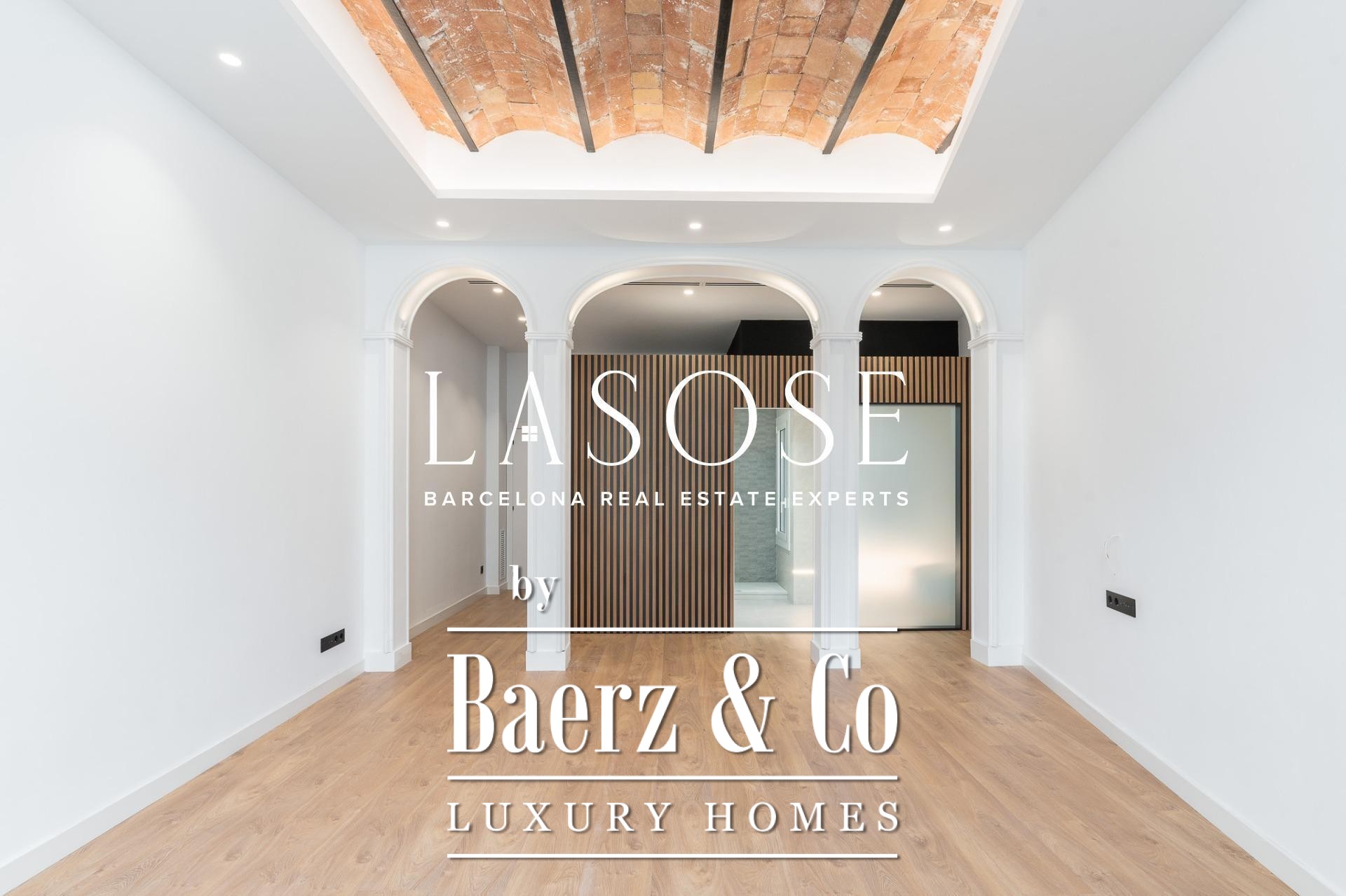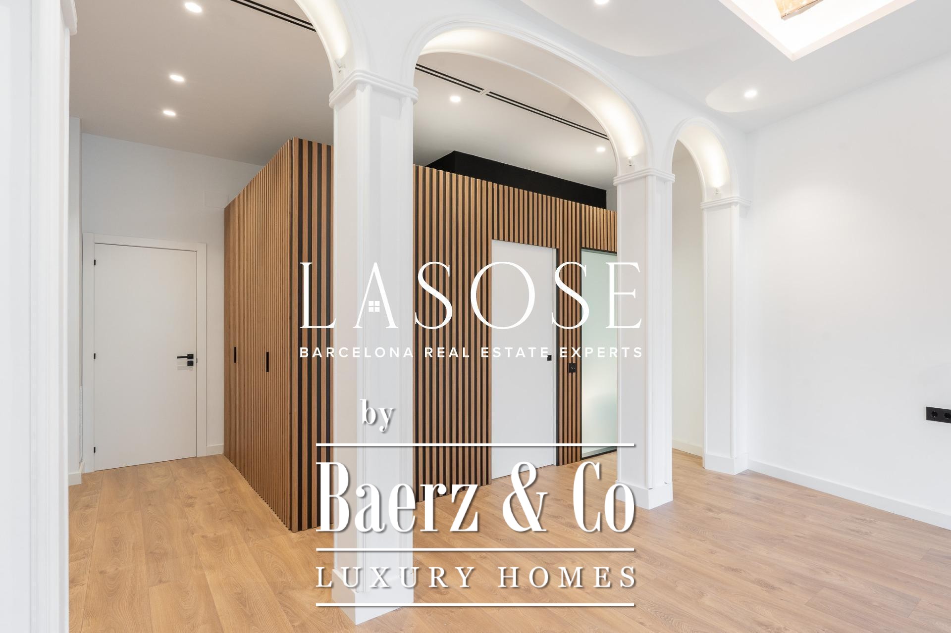 This newly renovated apartment in a classic building combines modern elegance with the original charm of its architectural features, such as Catalan vaulted ceilings and exposed brick walls. It is located just 1 minute from Rambla Catalunya and Paseo de Gracia, one of the best locations in the center of Barcelona.. . With 248 m² of built space, the property offers an expansive, luminous area featuring an impressive 67 m² open-concept living and dining room with kitchen, complemented by a 20 m² gallery with large windows overlooking a peaceful inner courtyard. The layout of this space invites you to create a variety of unique atmospheres. The designer kitchen, fully equipped with high-end appliances, boasts a central island, perfect for gatherings and special moments.. . The night area comprises four bedrooms: two are full suites with walk-in closets and private bathrooms. The main suite spans an entire wing of the home with street-facing views, while the second suite, adjacent to the living room, enjoys a charming gallery facing the courtyard. The other two rooms—one double and one medium-sized—are interior but benefit from natural light. Additionally, there is a fourth bathroom for added convenience.. . Equipped