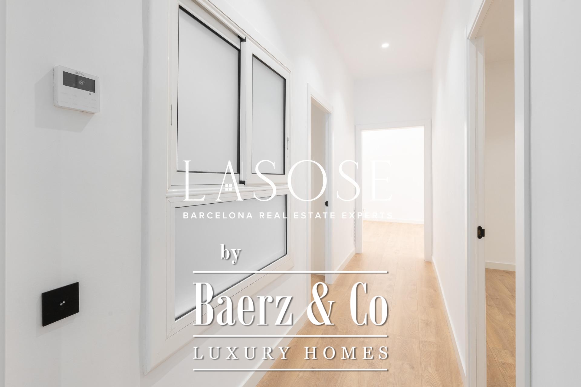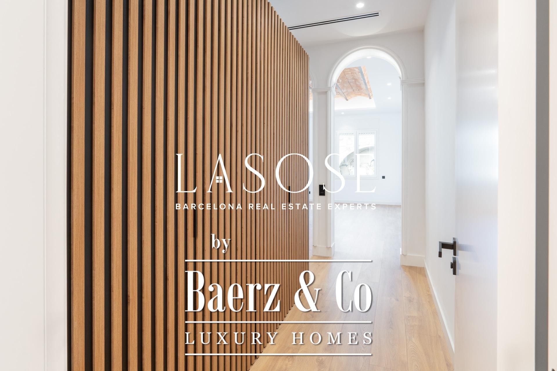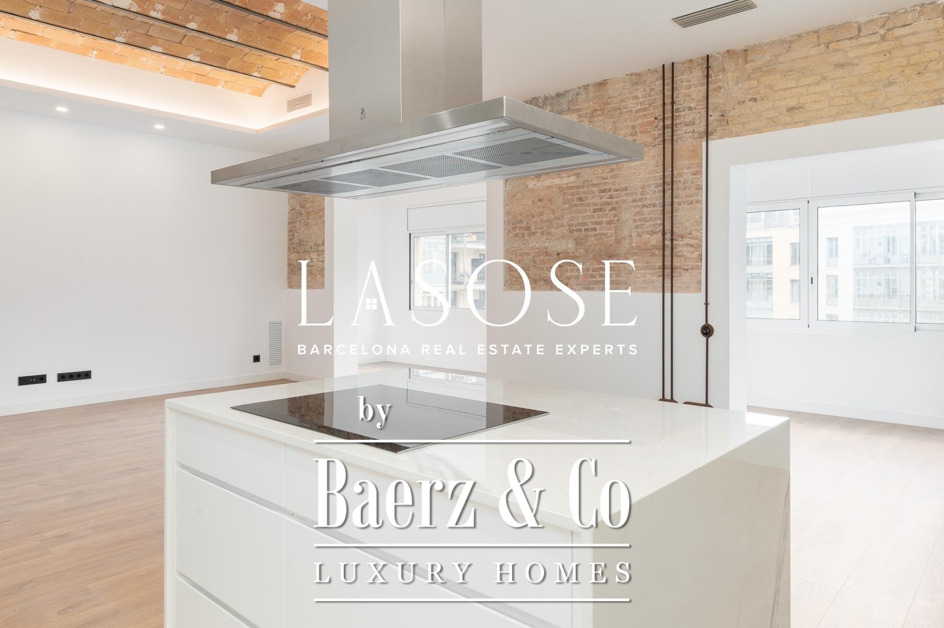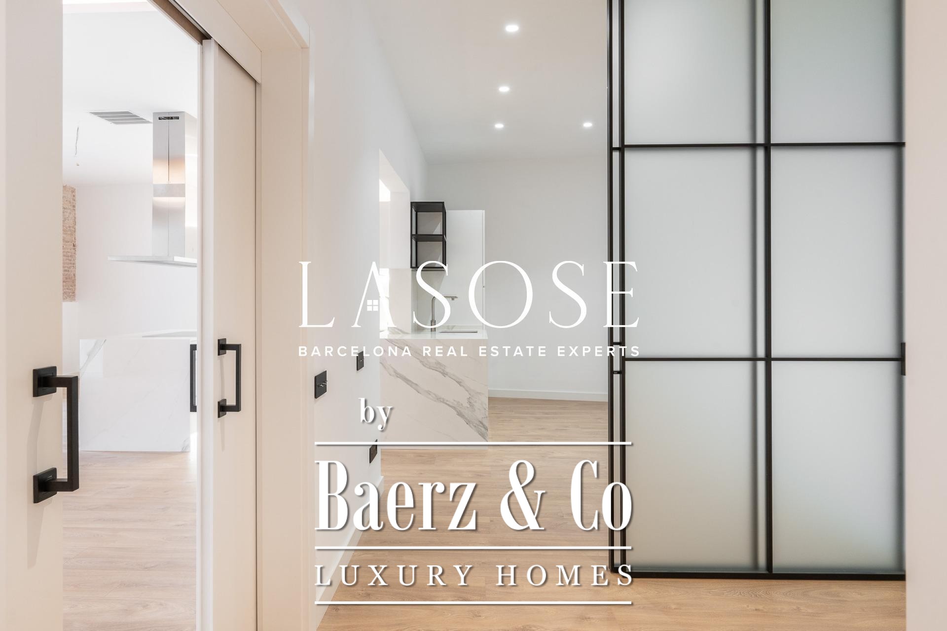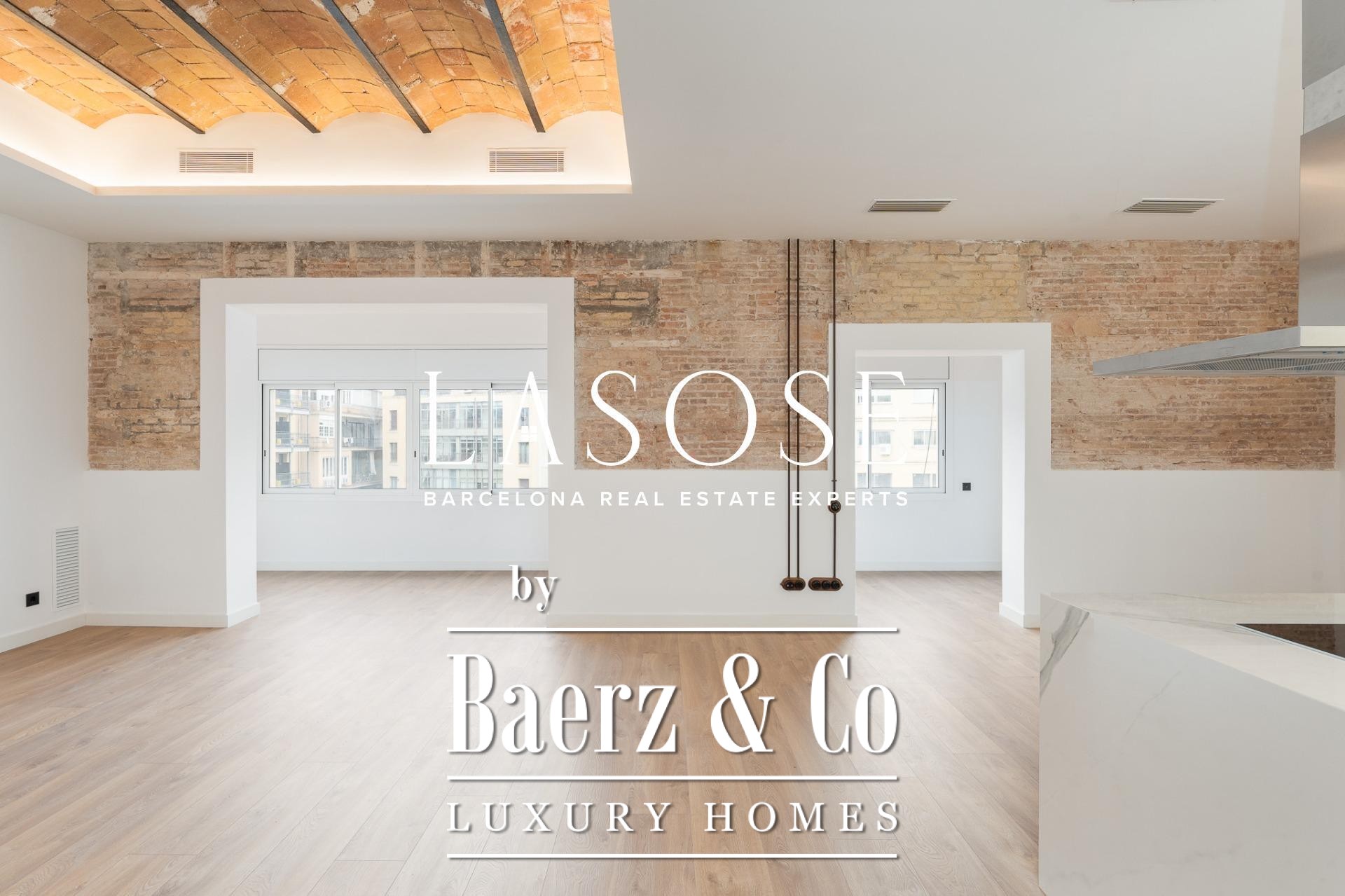 This newly renovated apartment in a classic building combines modern elegance with the original charm of its architectural features, such as Catalan vaulted ceilings and exposed brick walls. It is located just 1 minute from Rambla Catalunya and Paseo de Gracia, one of the best locations in the center of Barcelona.. . With 248 m² of built space, the property offers an expansive, luminous area featuring an impressive 67 m² open-concept living and dining room with kitchen, complemented by a 20 m² gallery with large windows overlooking a peaceful inner courtyard. The layout of this space invites you to create a variety of unique atmospheres. The designer kitchen, fully equipped with high-end appliances, boasts a central island, perfect for gatherings and special moments.. . The night area comprises four bedrooms: two are full suites with walk-in closets and private bathrooms. The main suite spans an entire wing of the home with street-facing views, while the second suite, adjacent to the living room, enjoys a charming gallery facing the courtyard. The other two rooms—one double and one medium-sized—are interior but benefit from natural light. Additionally, there is a fourth bathroom for added convenience.. . Equipped