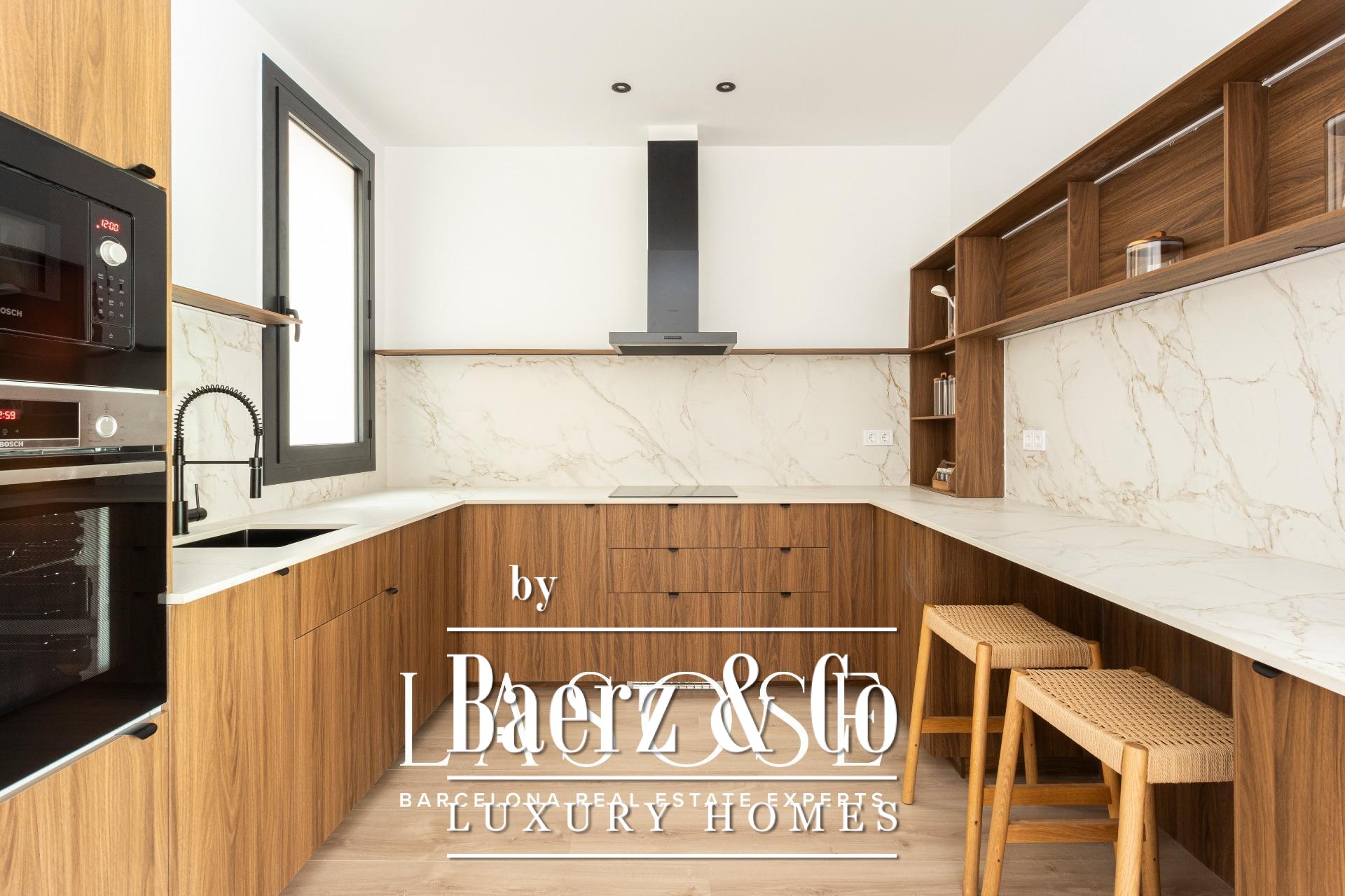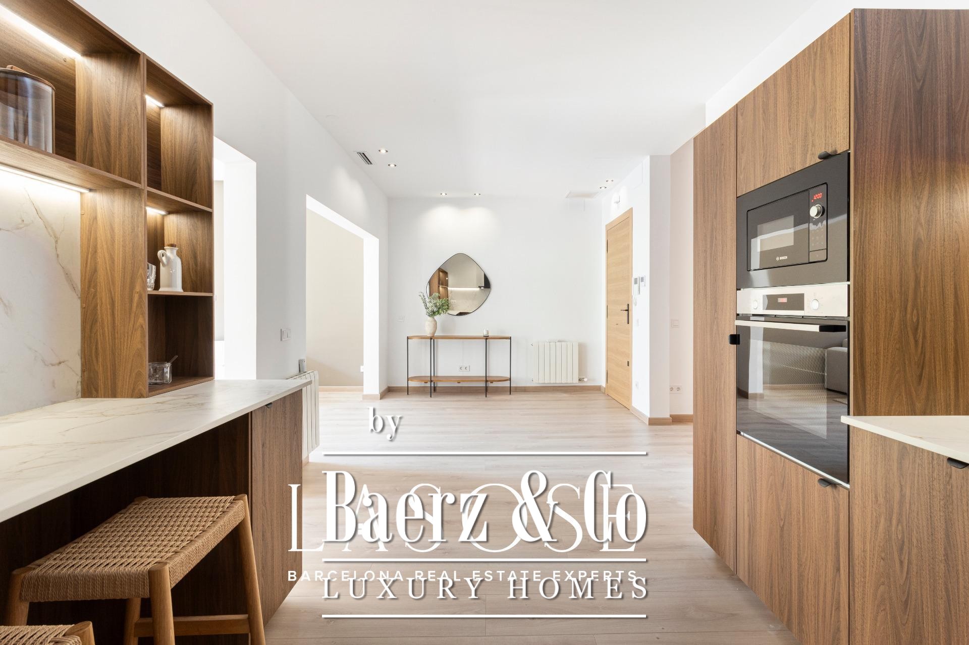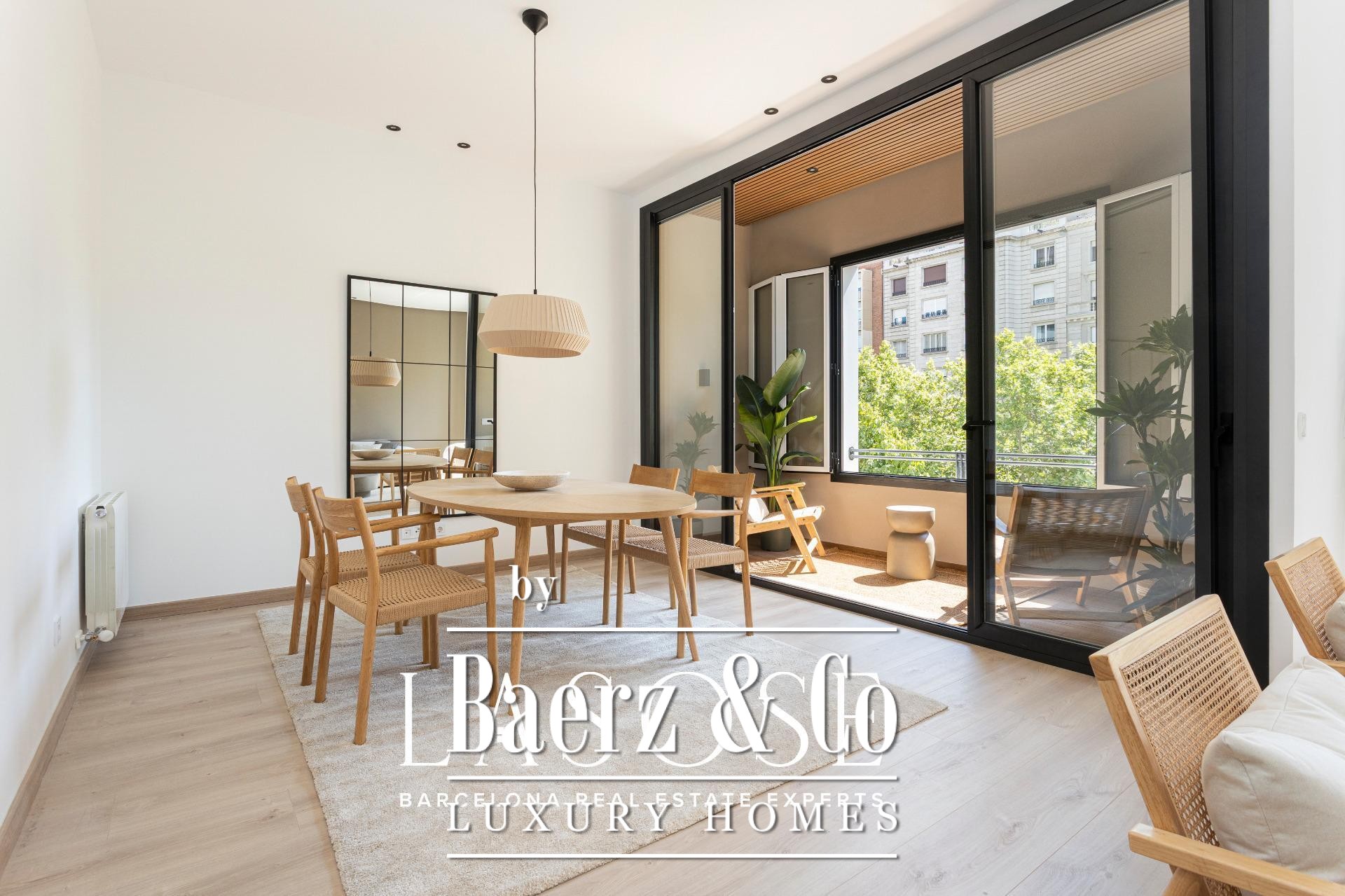 LASOSE presents this exclusive property located on the second floor (third real floor) of a stately estate on the prestigious Josep Tarradellas Avenue, this elegant residence has been completely refurbished with high quality finishes.. . It stands out for its great luminosity, thanks to its double orientation, as well as for its large interior spaces, with high ceilings.. . Upon entering, we find a large hall that leads to the day area, consisting of open kitchen, living room and dining room, with large windows through which you access a cozy gallery-balcony that allows unobstructed views to the outside.. . The open kitchen, of modern design, is equipped with integrated Bosch appliances, including oven, induction hob, dishwasher and extractor hood. The countertop is from Dekton by Cosentino in a sophisticated matte finish.. . The night area consists of three double bedrooms, all of them of large dimensions, and three full bathrooms (one of them en suite), as well as a laundry room.. . The master suite, very spacious, has access to a bright gallery, dressing room and en suite bathroom