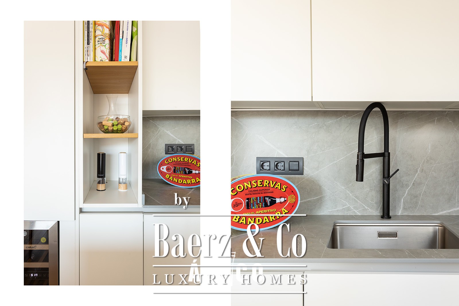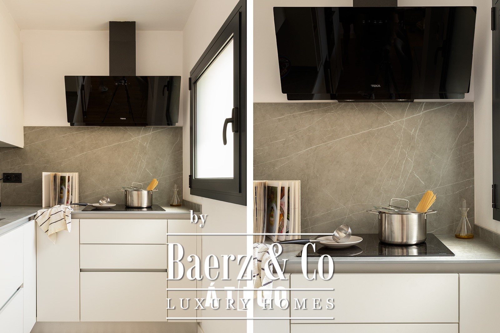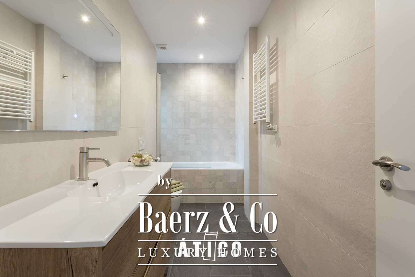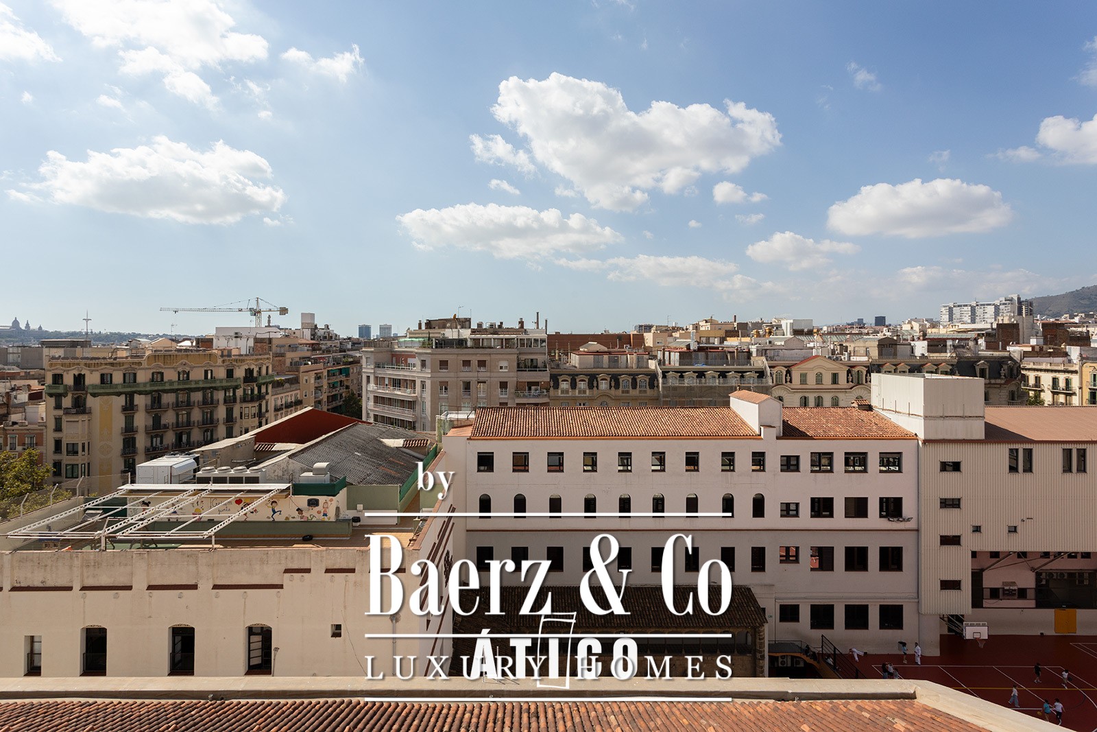 In the Eixample Izquierdo neighborhood, a stone's throw from Carrer Enric Granados, known for its bars, terraces, and cosmopolitan atmosphere, and just a six-minute walk from the vibrant and elegant Rambla Catalunya, lies this 138 m² penthouse, a true urban retreat that combines modern comfort with the charm of Barcelona life. Practically new and with an impeccable layout, this home has been designed to be enjoyed in every corner. The heart of the home is the spacious living-dining room with an open-plan kitchen, an open and welcoming space that extends onto a magnificent 16 m² terrace facing the sea, enjoying a majestic view that combines the grandeur of the National Palace with the serenity of Montjuïc Mountain. An ideal place to host dinner parties, enjoy a drink at sunset, or simply soak up the tranquility of the elevated surroundings. The master suite, spacious and bathed in natural light, has an elegant dressing room and an en suite bathroom. From here, there is direct access to a second 14m² terrace, facing Tibidabo and the emblematic "illa" of the Eixample district, an icon of Barcelona's urban planning. This dual orientation provides all-day sun and unobstructed views that fill the space with calm and clarity. At night, the illuminated silhouette of Tibidabo adds a special charm, turning this room into a true refuge with a serene and privileged atmosphere. The home is completed by a second double bedroom, with natural light, and a second bathroom with a bathtub, ideal for providing comfort and privacy for guests or adapting to different needs. The modern, functional kitchen, bathed in natural light, features custom-made furniture and is fully equipped with high-end appliances, as well as a wine cellar, ideal for those who value attention to detail and