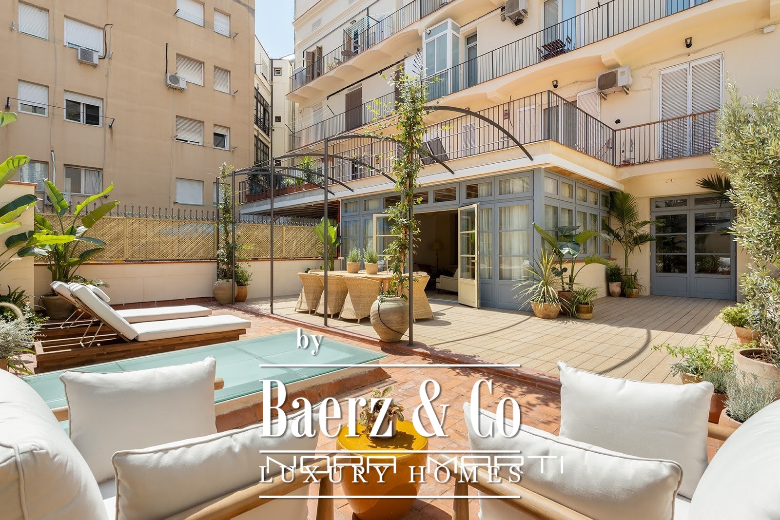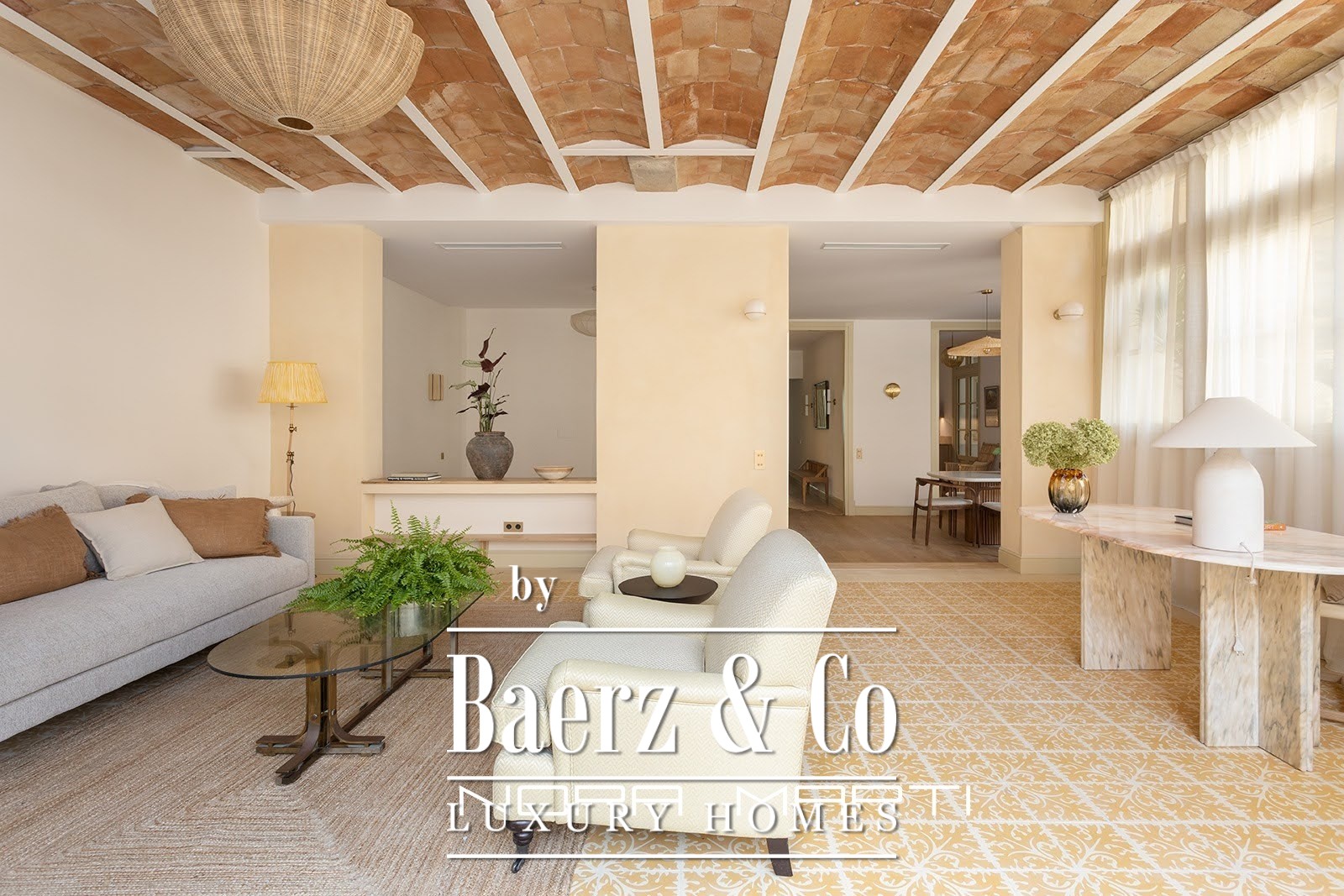 Apartment Barcelona Passeig de Sant Joan is situated in the heart of the city, offering 200 m² of refined living space complemented by a 100 m² private terrace. This apartment receives generous natural light from dual exposures, illuminating both the living and private areas. The residence preserves original architectural detail, including the Catalan vaulted ceilings that travel the length of the home, instilling a sense of volume and serenity.
