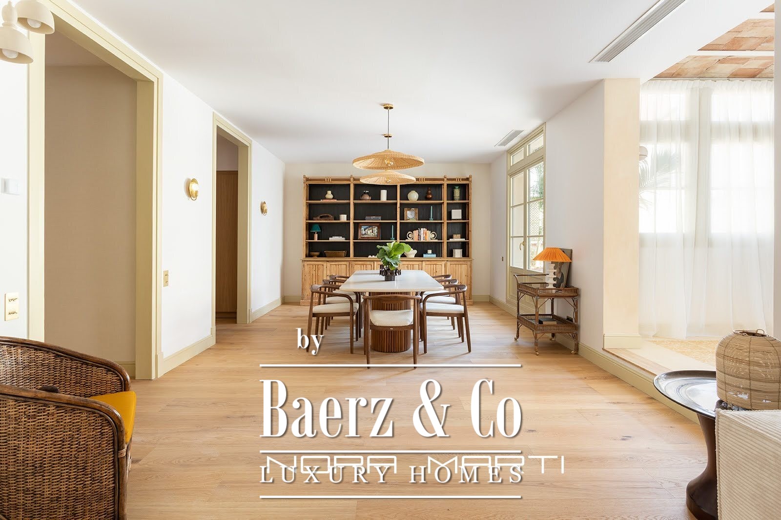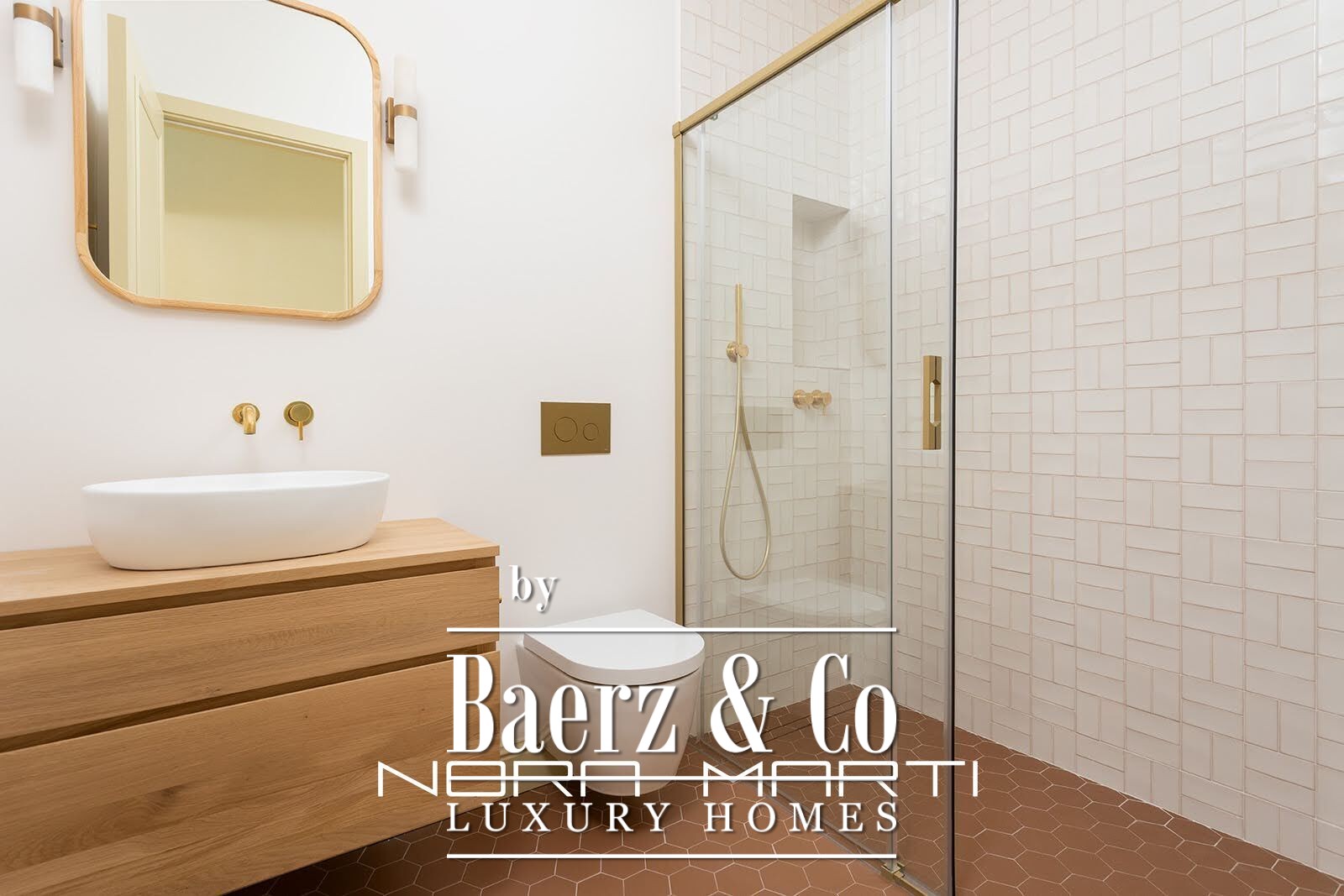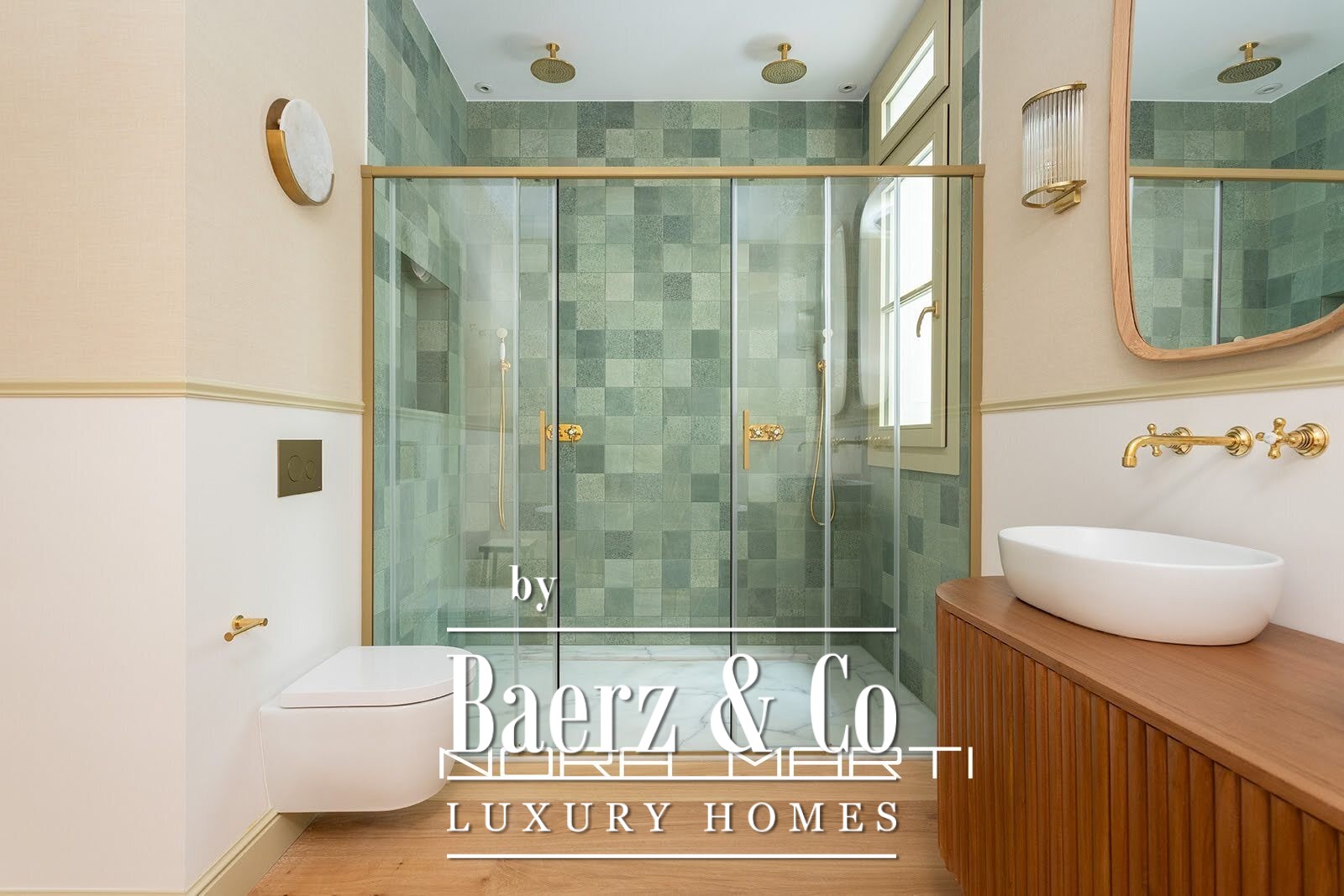 Each of the three exterior bedrooms features double beds, bespoke wardrobes, and en-suite bathrooms finished with aged brass fixtures from a notable Catalan maker. Decorative lighting from Catalonia and England, including vintage and antique pieces, enriches the ambiance. The inviting green terrace offers rare tranquility in Passeig de Sant Joan, presenting opportunities for relaxation, entertaining, and a distinct sense of space in central Barcelona. This luxury apartment for sale in Passeig de Sant Joan combines timeless materials and contemporary comfort in an exceptional urban address.