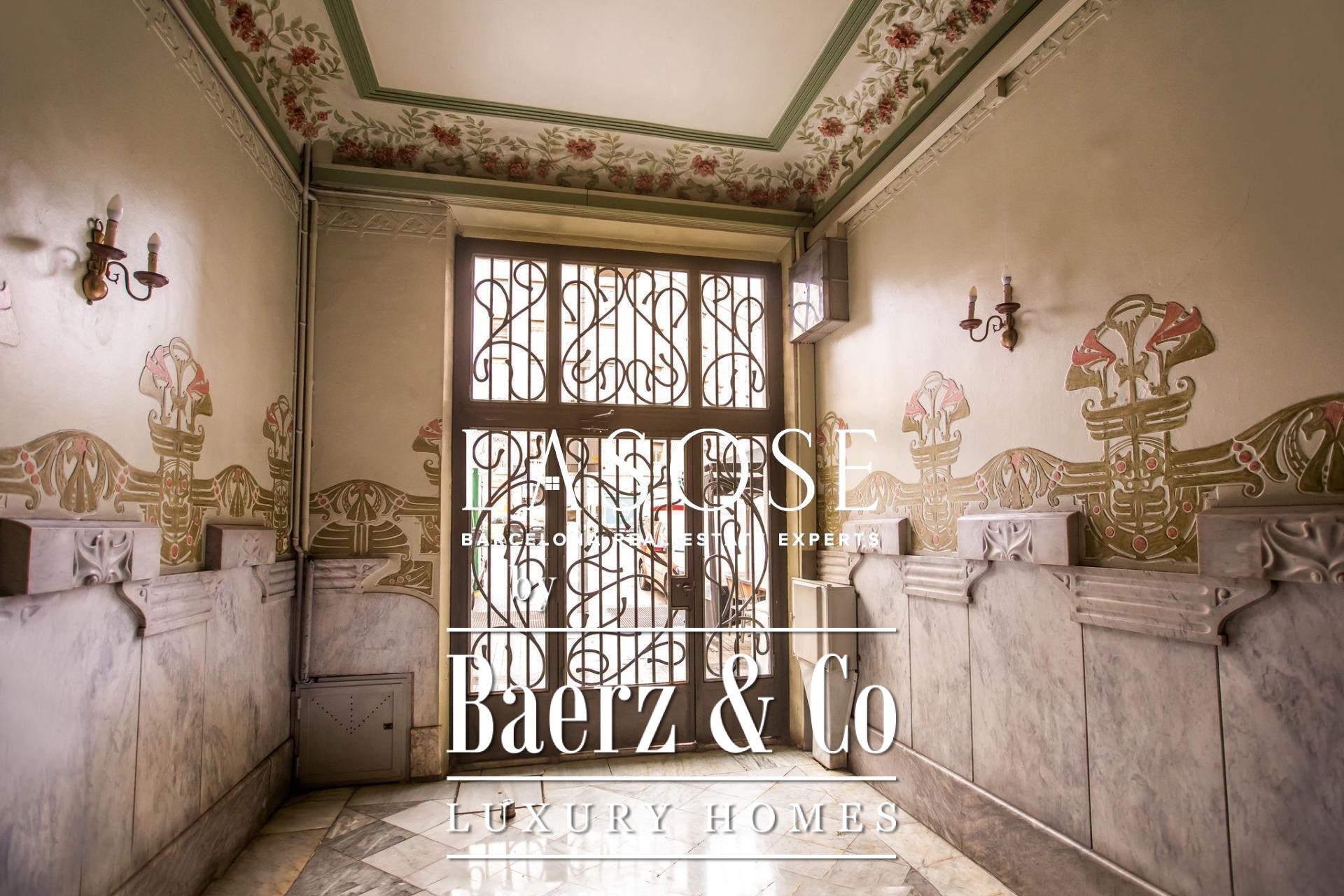 Apartment Barcelona in Eixample Esquerra sits on the principal floor of a distinguished modernist building constructed in 1900, merging legacy architecture with generous spatial flow. This residence offers an internal living area of 179 m² and 4 m² of balconies, where three street-facing balconies and a classic bay window fill the main living room with daylight, reflecting both grandeur and openness. Ceilings soar to 3.5 meters with original volta catalana, preserving an authentic heritage distinct to the period.