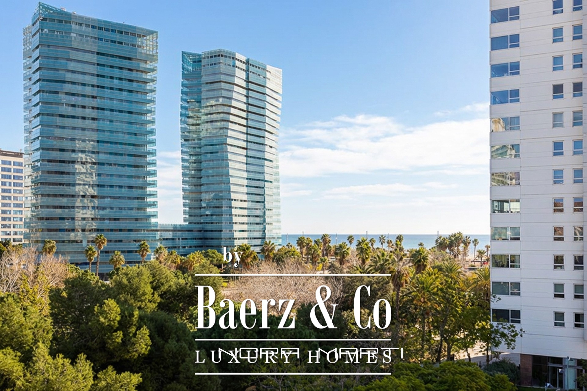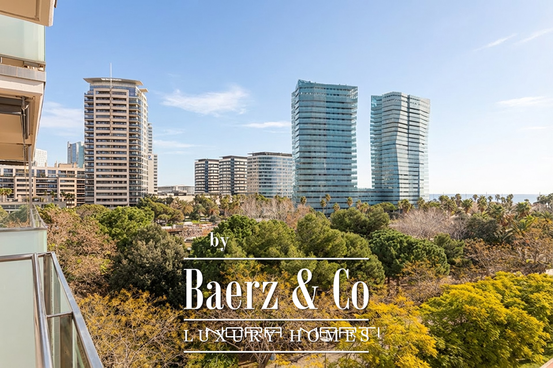 Apartment Diagonal Mar Barcelona offers a rare sense of light and serenity mere moments from the Mediterranean, situated just 500 meters from the sea and directly across from a tranquil green expanse. Rising within a semi-new high-end building, this wholly exterior residence encompasses 152 m², defined by abundant natural light and a spacious terrace facing both the sea and the manicured communal gardens.