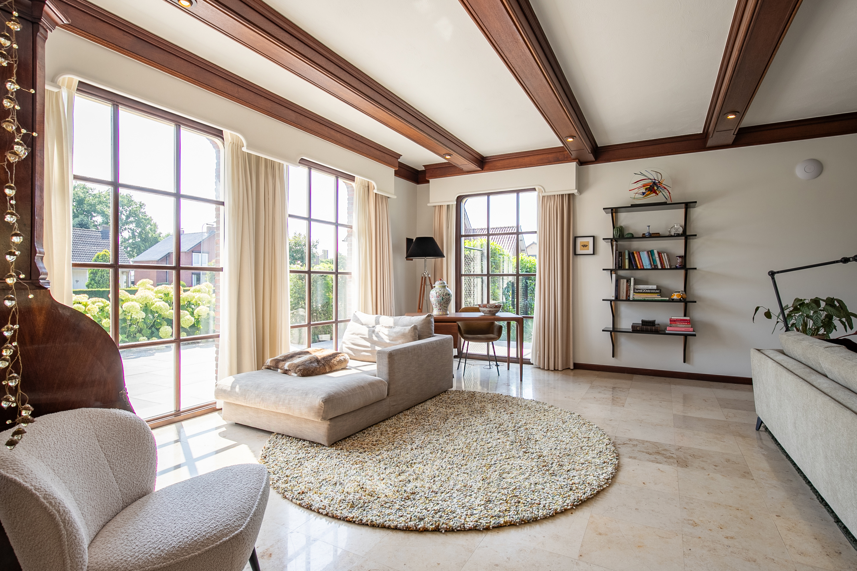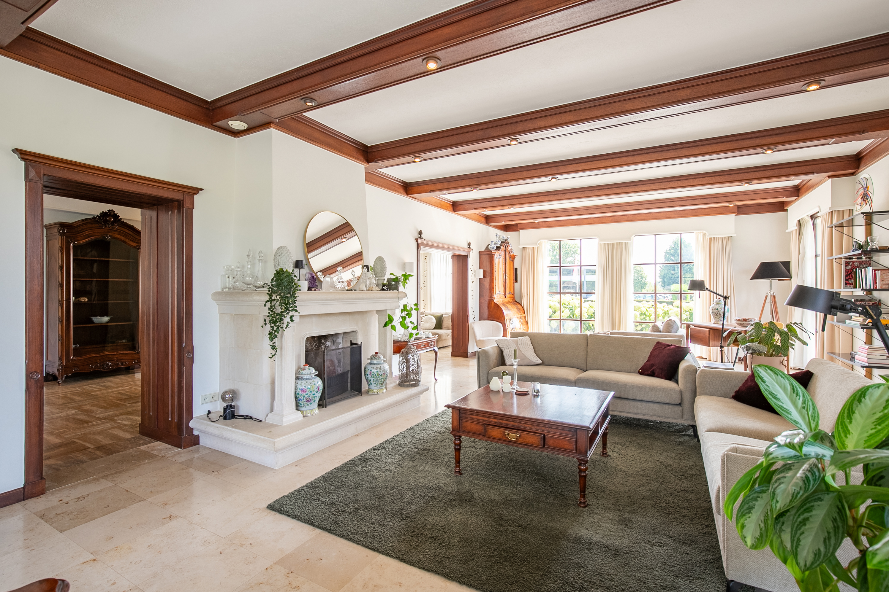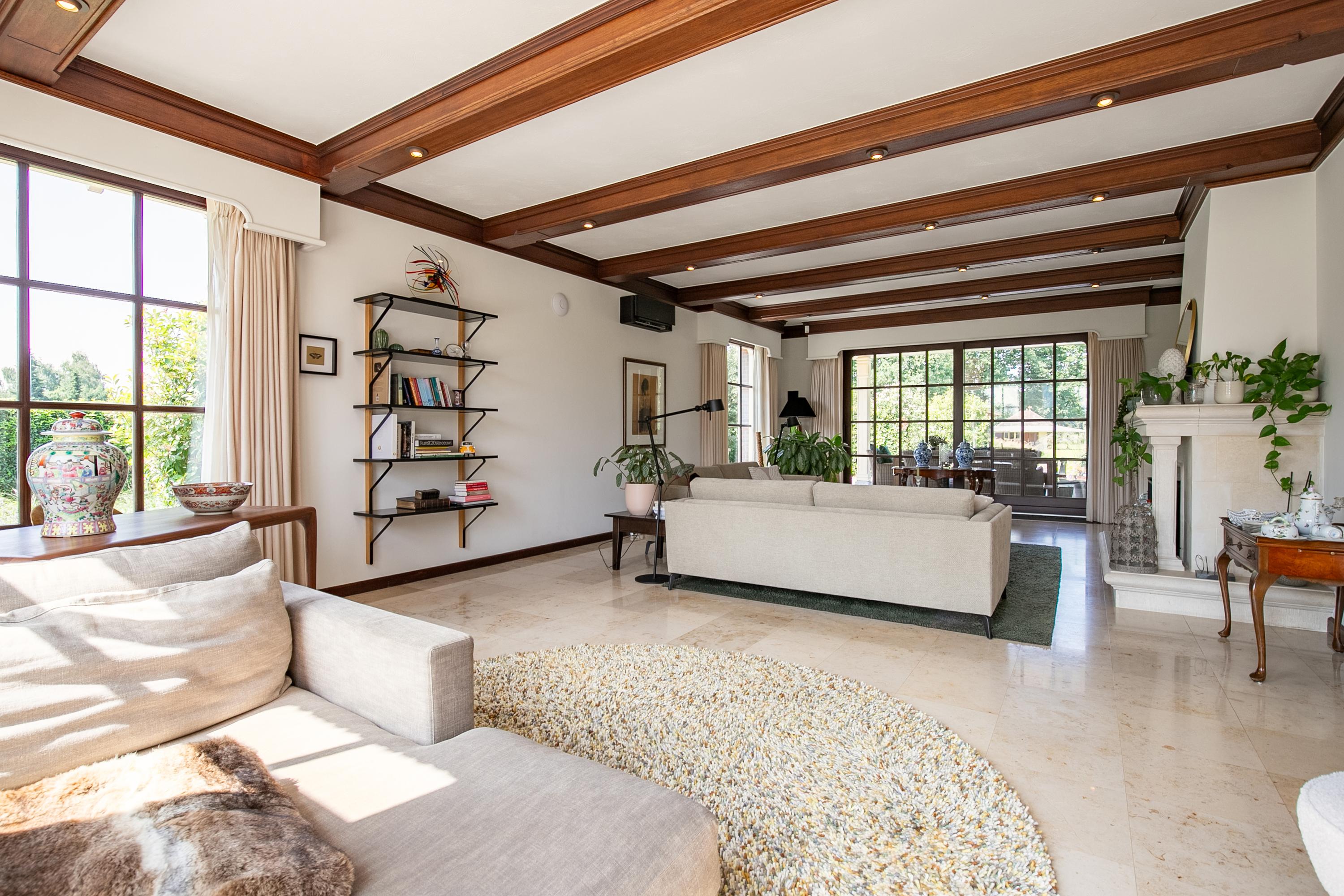 Thanks to the large glass facades and numerous windows, there is seamless contact with the beautiful landscaped garden, and an abundance of natural light.This comfortable home features a spacious living room, a luxurious kitchen with cooking island, a generous ground-floor (bed)room or office, five (bed)rooms on the first floor, and no less than three bathrooms.
