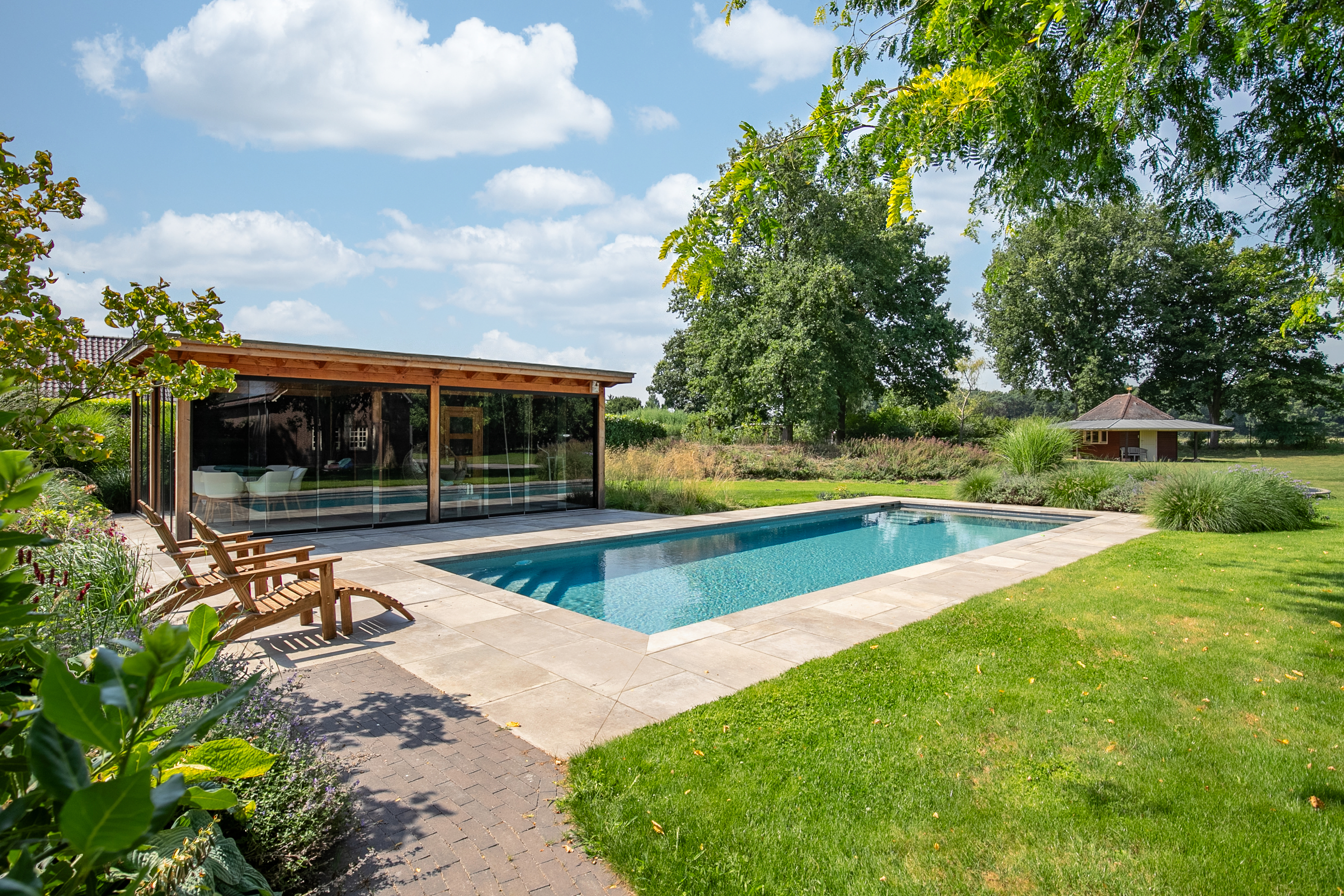The park-like garden with swimming pool is a true oasis of tranquility and offers a wide range of possibilities—especially with the spacious outbuilding.