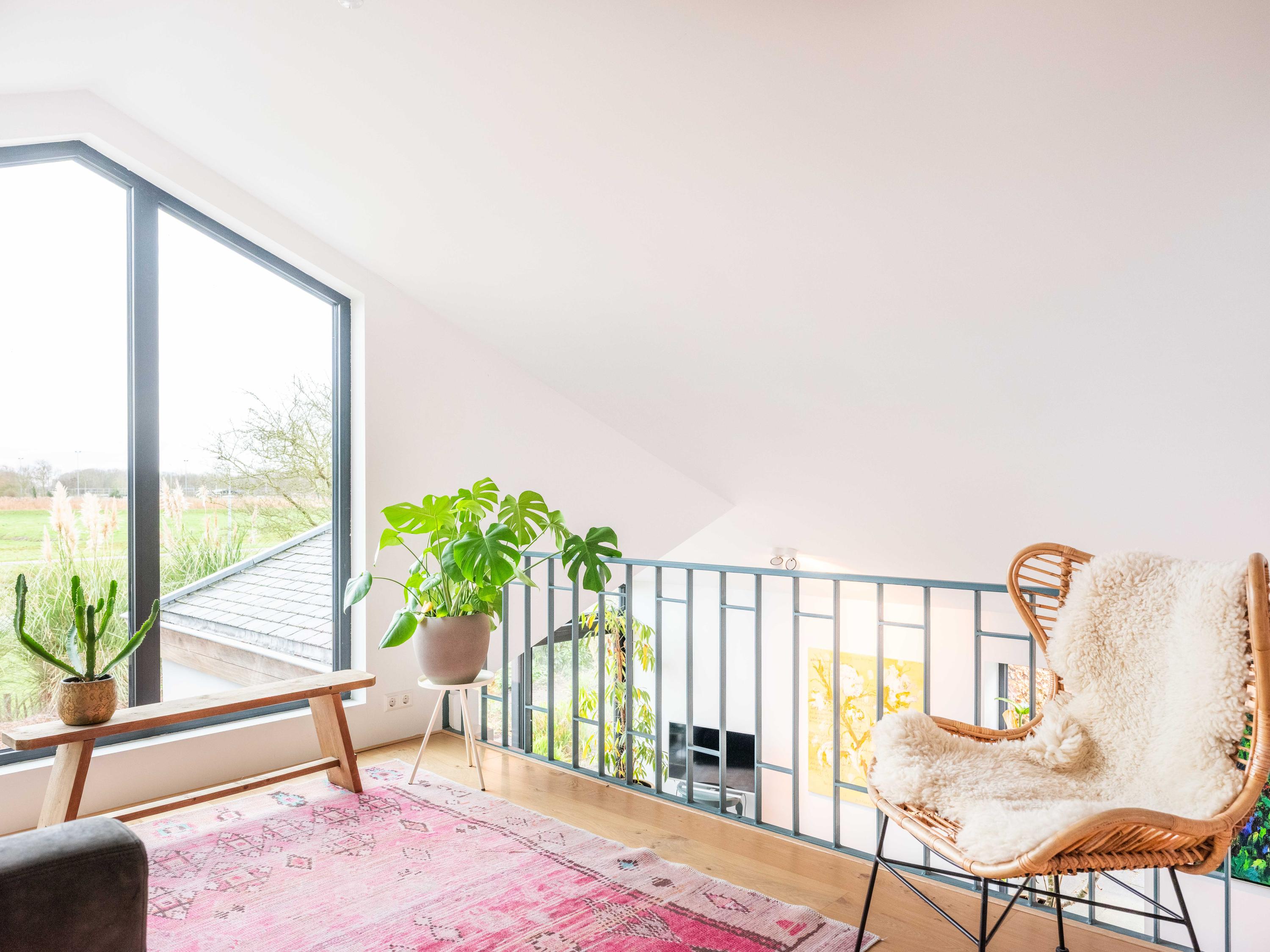 The custom-made kitchen in rich walnut is a dream for any cooking enthusiast. Fully equipped with high-end appliances, including a luxury wine climate cabinet, it also features an architectural highlight: a walnut wall with a hidden door, revealing a spacious utility room behind it. The front-facing living room offers a cozy reading or play corner with panoramic views of the polder, while the rear-facing dining area is bright and airy with large skylights, custom cabinets, and French doors opening onto the garden.