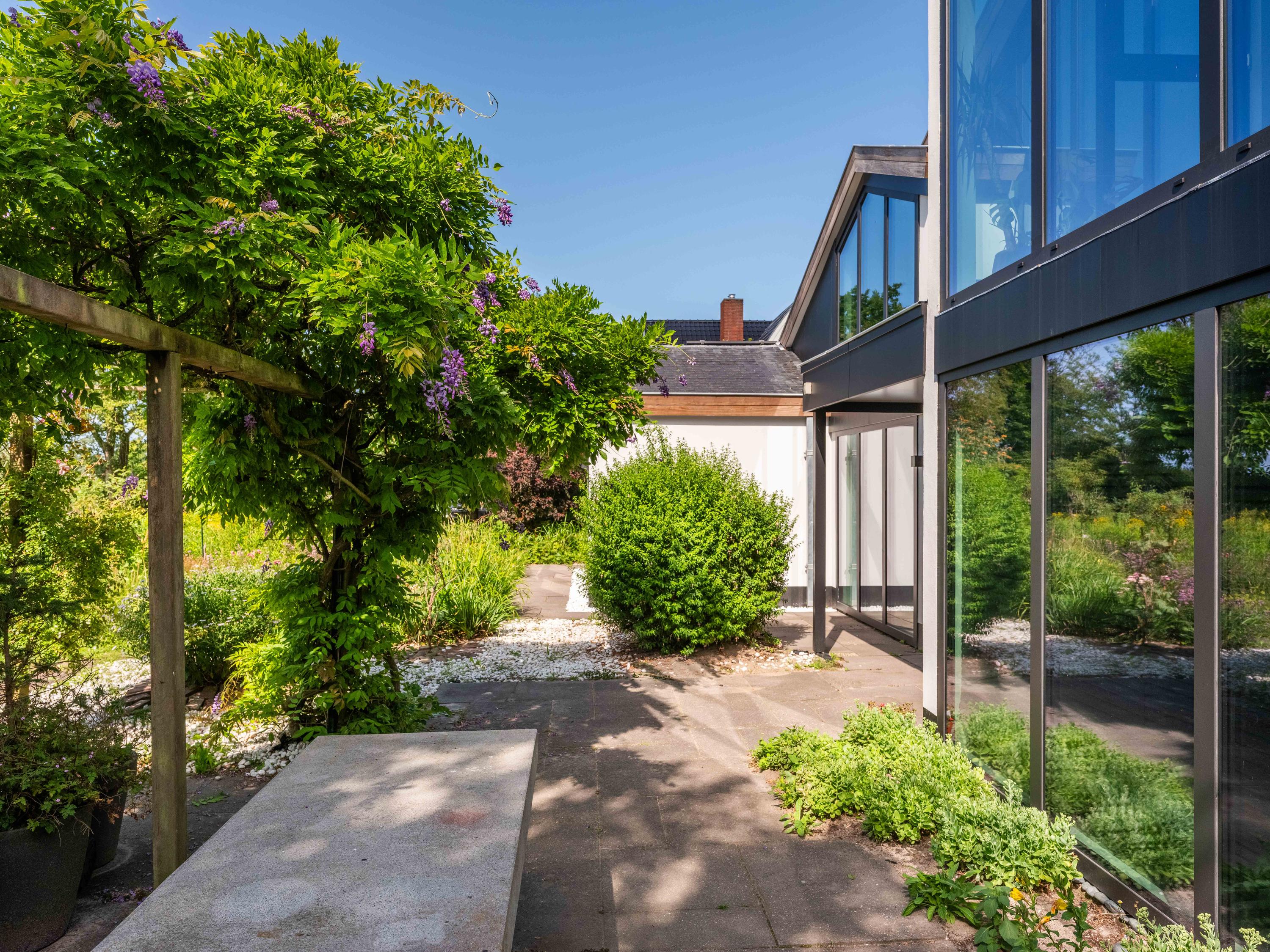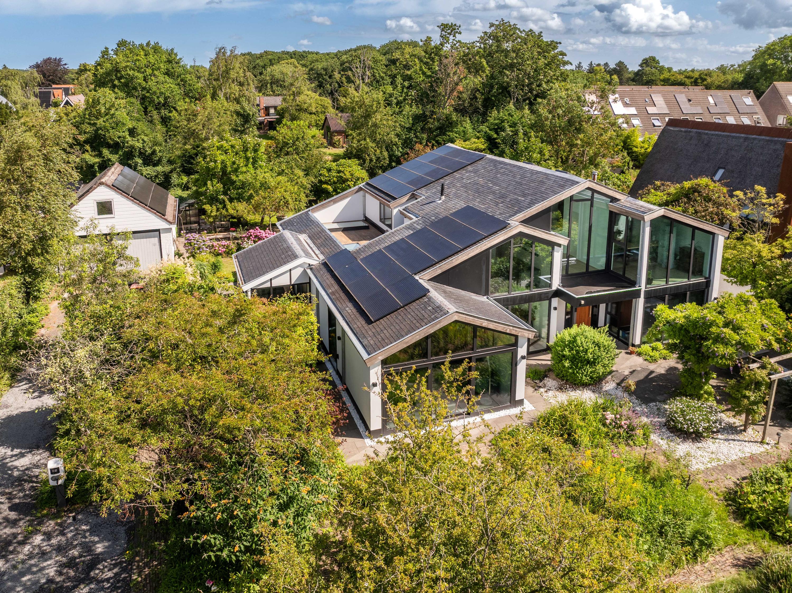 Every detail has been considered to elevate your living comfort. The property was fully renovated and made sustainable in 2021: it is gas-free and features over 50 solar panels. Thanks to Triple HR glazing in the wood-look aluminum frames, the interior is whisper-quiet and comfortable, while the special sun-reflective glass at the front keeps out summer heat. With two driveways and dual charging stations, there is always space for you and your guests.