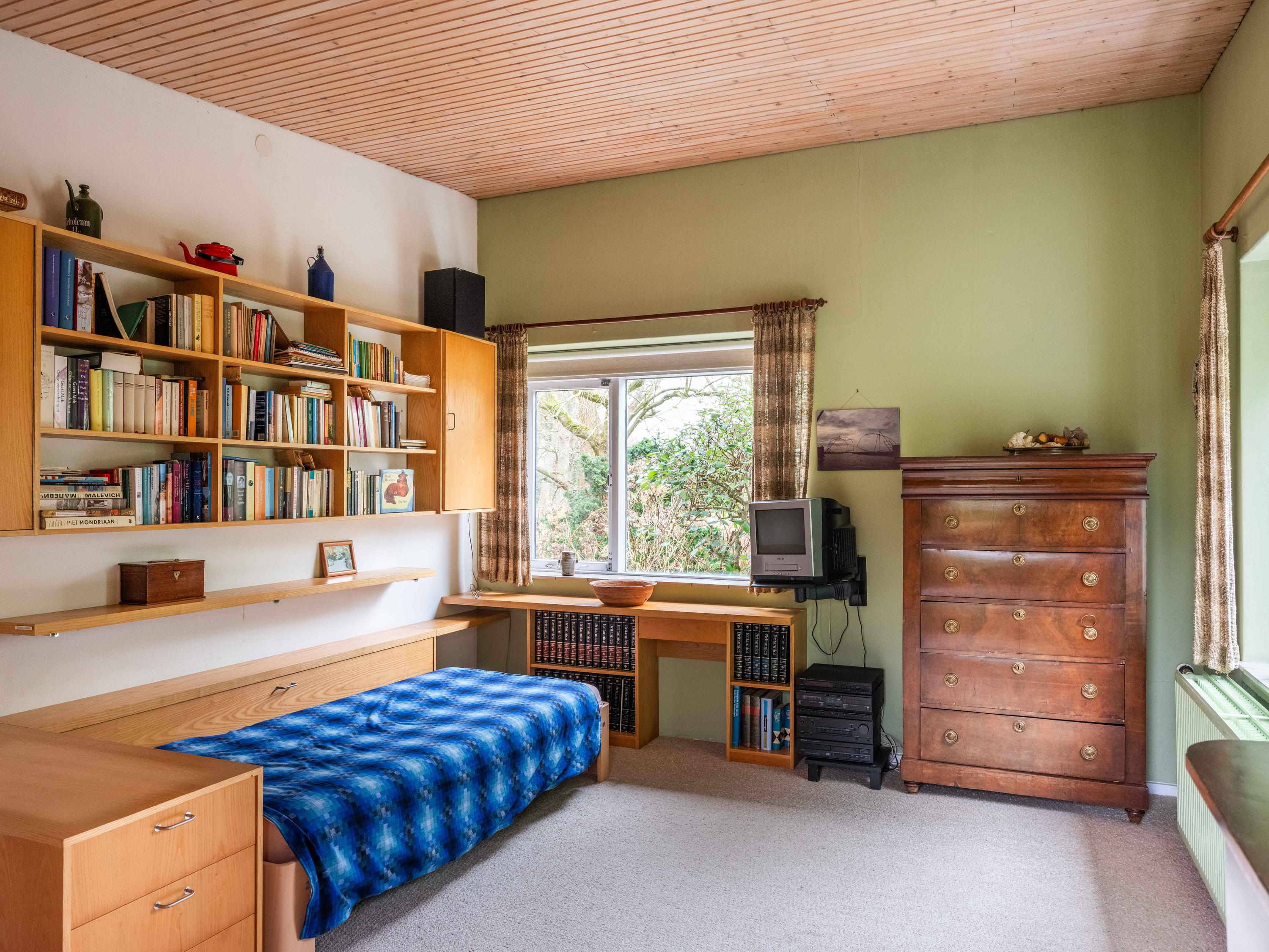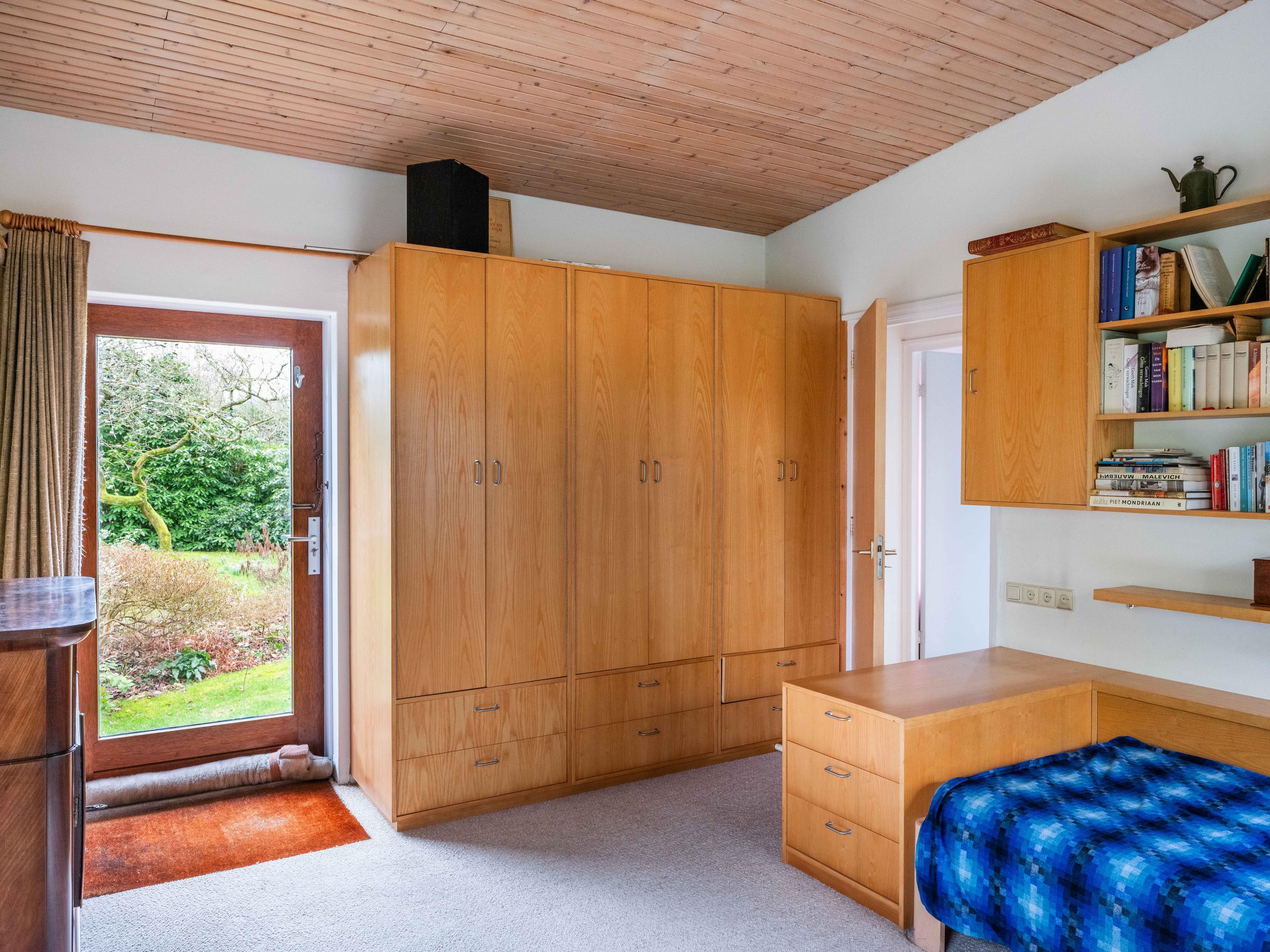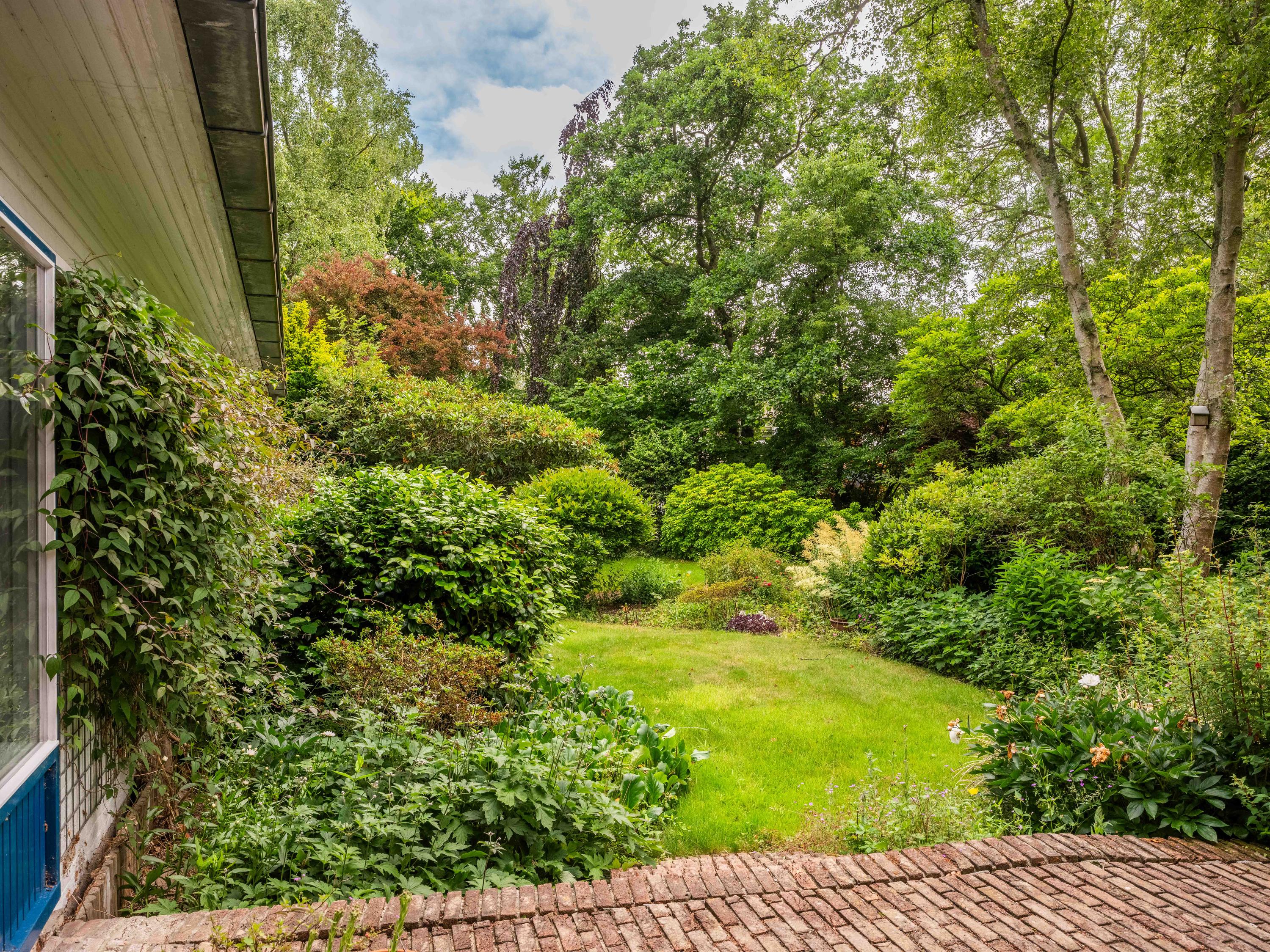 A mezzanine with a separate entrance accommodates a study or atelier. Further conveniences include a large storage room, double garage, wooden external shed, and ample off-street parking. The gardens evoke calm, while city centre amenities and forest walks are just moments away. The detached bungalow Bergen offers a rare convergence of privacy, authenticity, and a distinct architectural heritage.