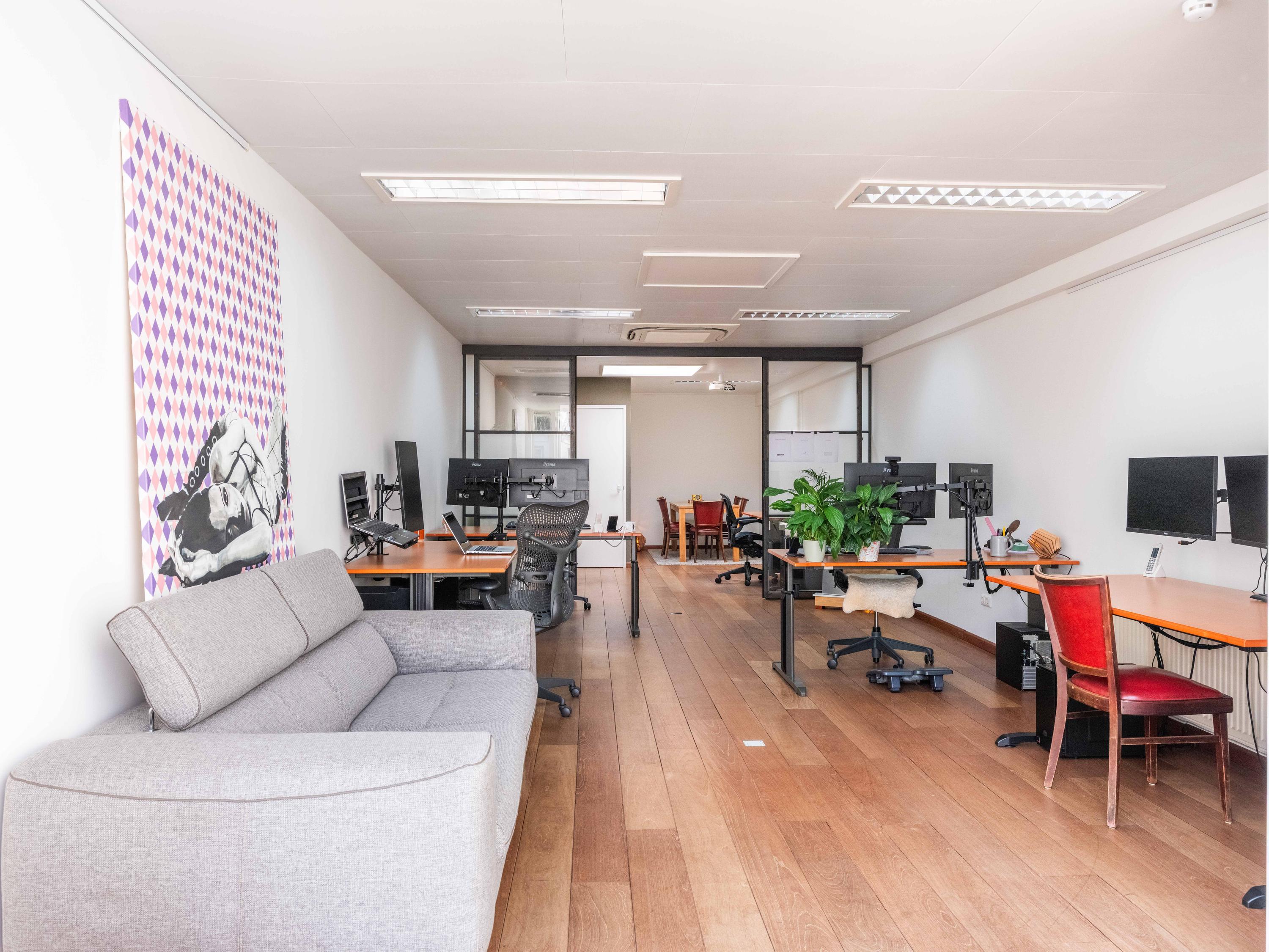 Behind the shop is a separate office space, ideal for a home-based practice, workspace, or expansion of the shop or residence. This space of approximately 43 m² was fitted with a new façade with French doors in 2023.