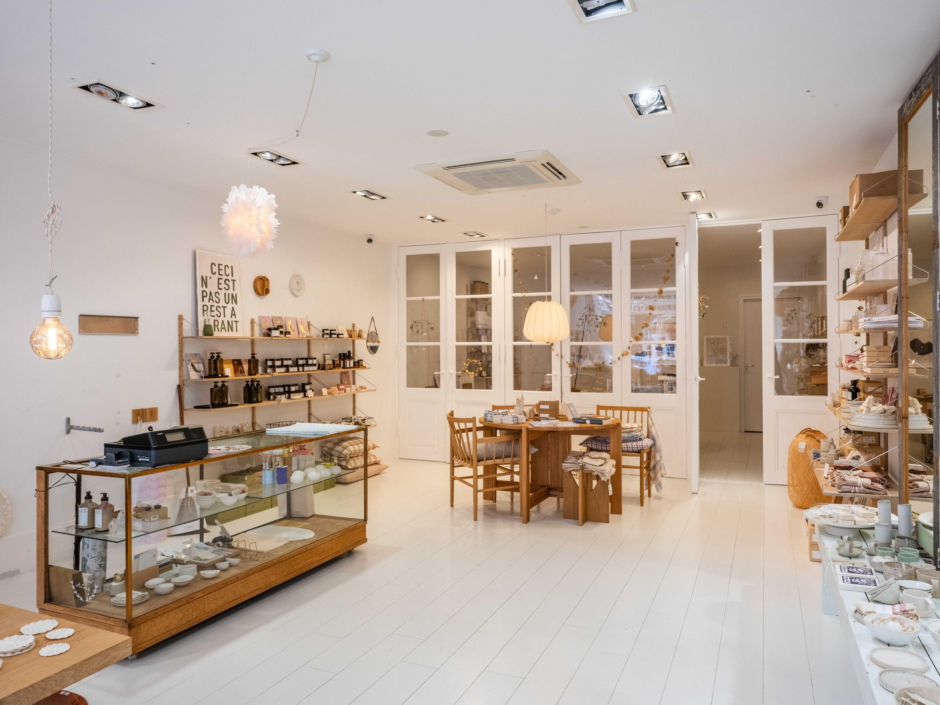 On the ground floor, directly on the street and located beneath the apartment, is the retail space. This location is well known to many people in Bergen and the surrounding area and has a rich history of various businesses, ranging from a grocery store to a bookstore, from a video rental shop to a luxury interior design store.