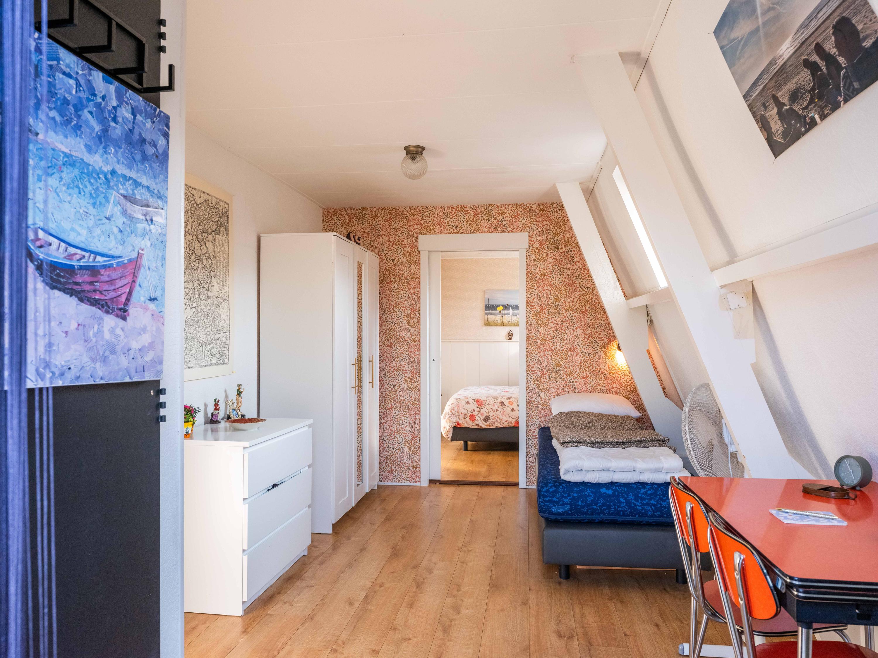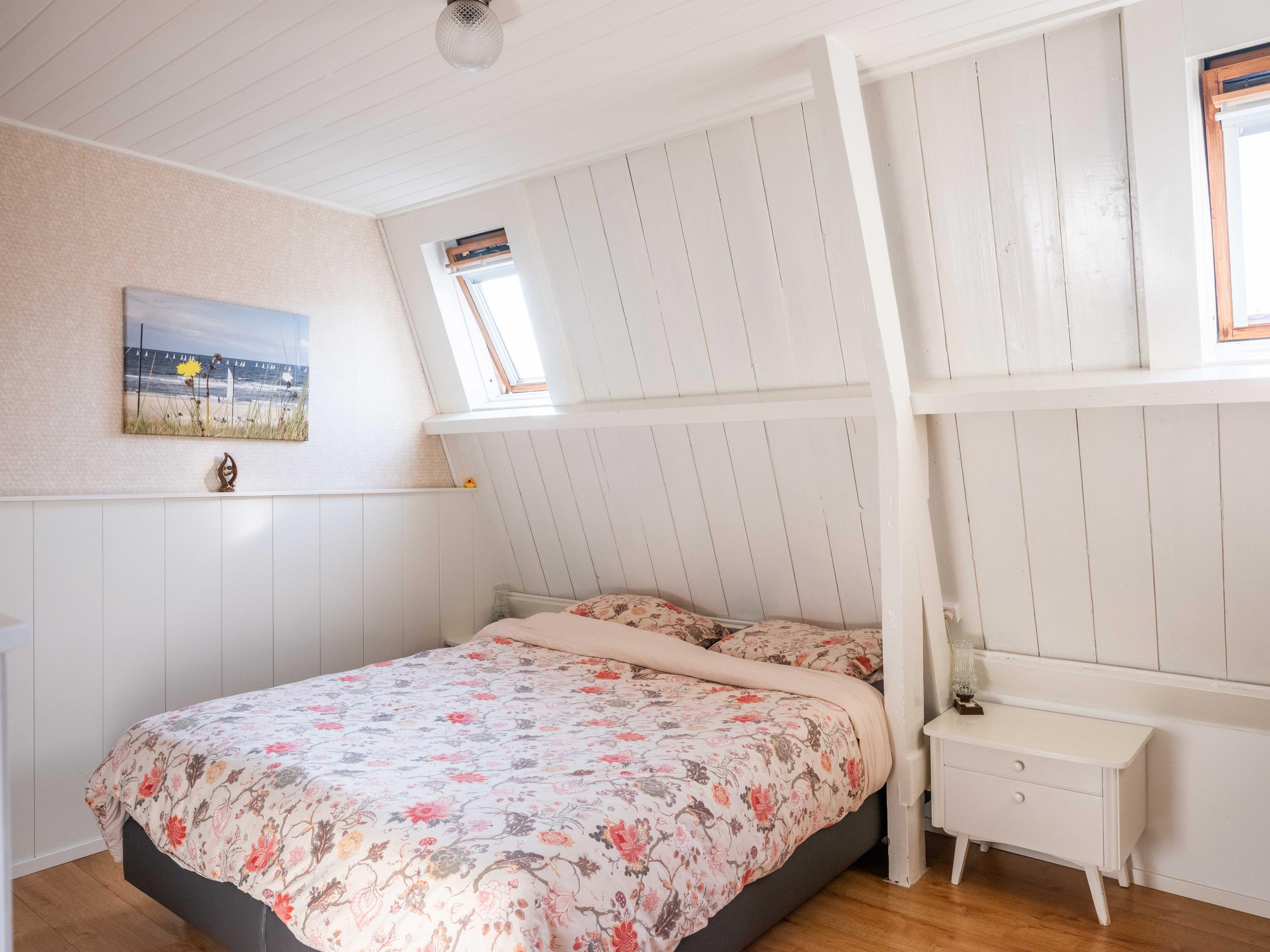 The upstairs apartment (approx. 76 m²) features a very spacious living room with a French balcony and views of Bergen’s two churches. The charming dormer window was fitted with a new frame and insulated glass in 2023 and is currently used as a cozy sitting area. The centrally located wood-burning stove not only creates atmosphere but also provides a pleasant and comfortable indoor climate.