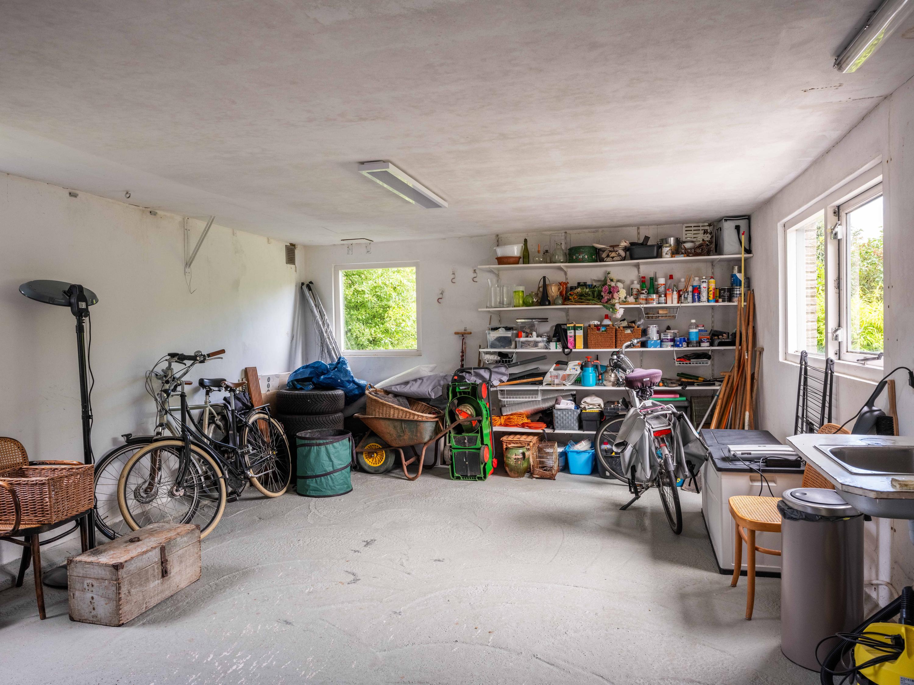Entering through a well-proportioned hall, the rhythm of oak flooring and generous light define the expansive living area. French doors connect to a thoughtfully landscaped garden, offering multiple terraces and a sense of calm, while a dedicated work or hobby room extends the sense of purpose. The Bulthaup kitchen is appointed with an Atag oven, 5-burner stove, dishwasher and refrigerator. A former garage, now a large storage room with utility connections, enhances the sense of practical elegance.