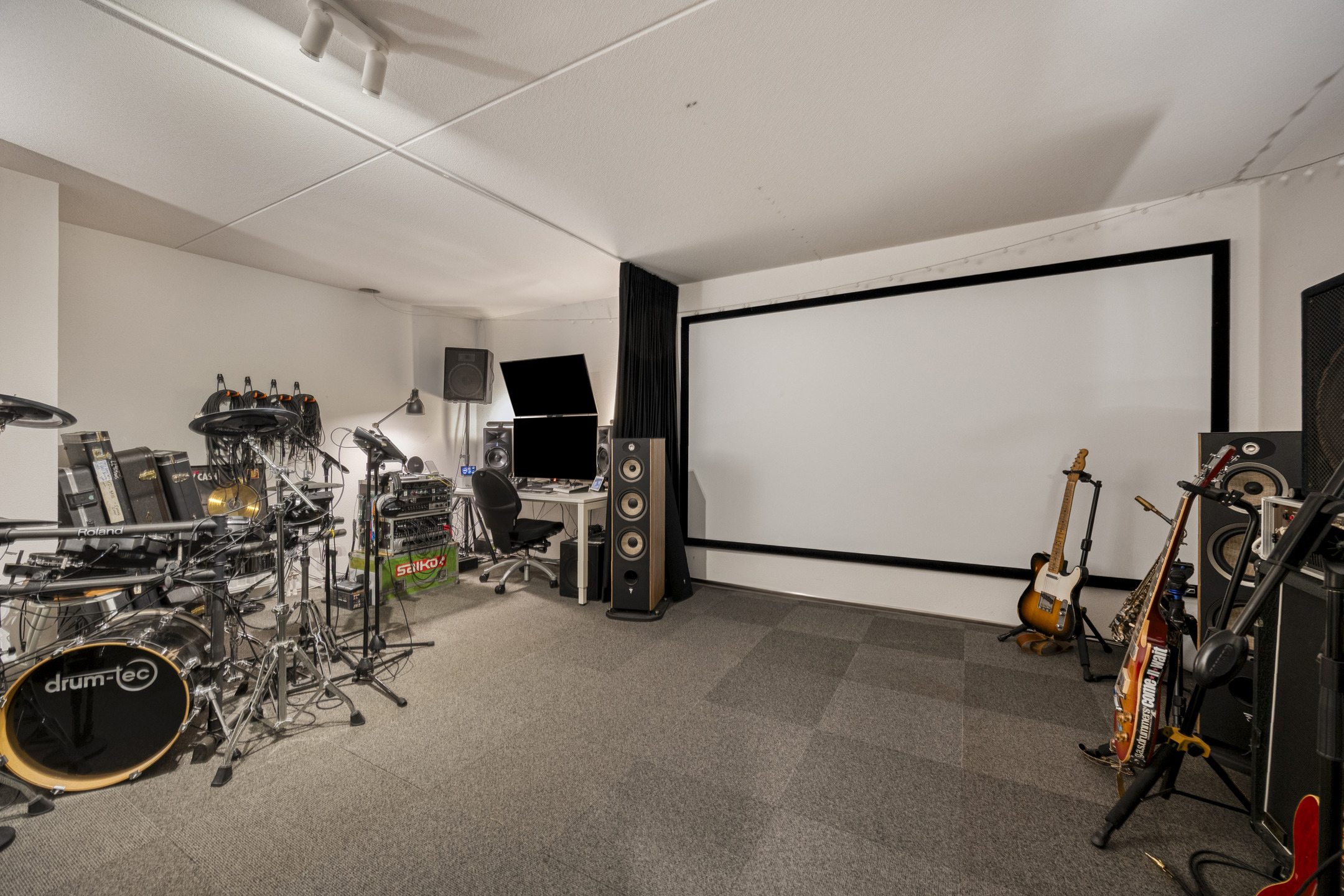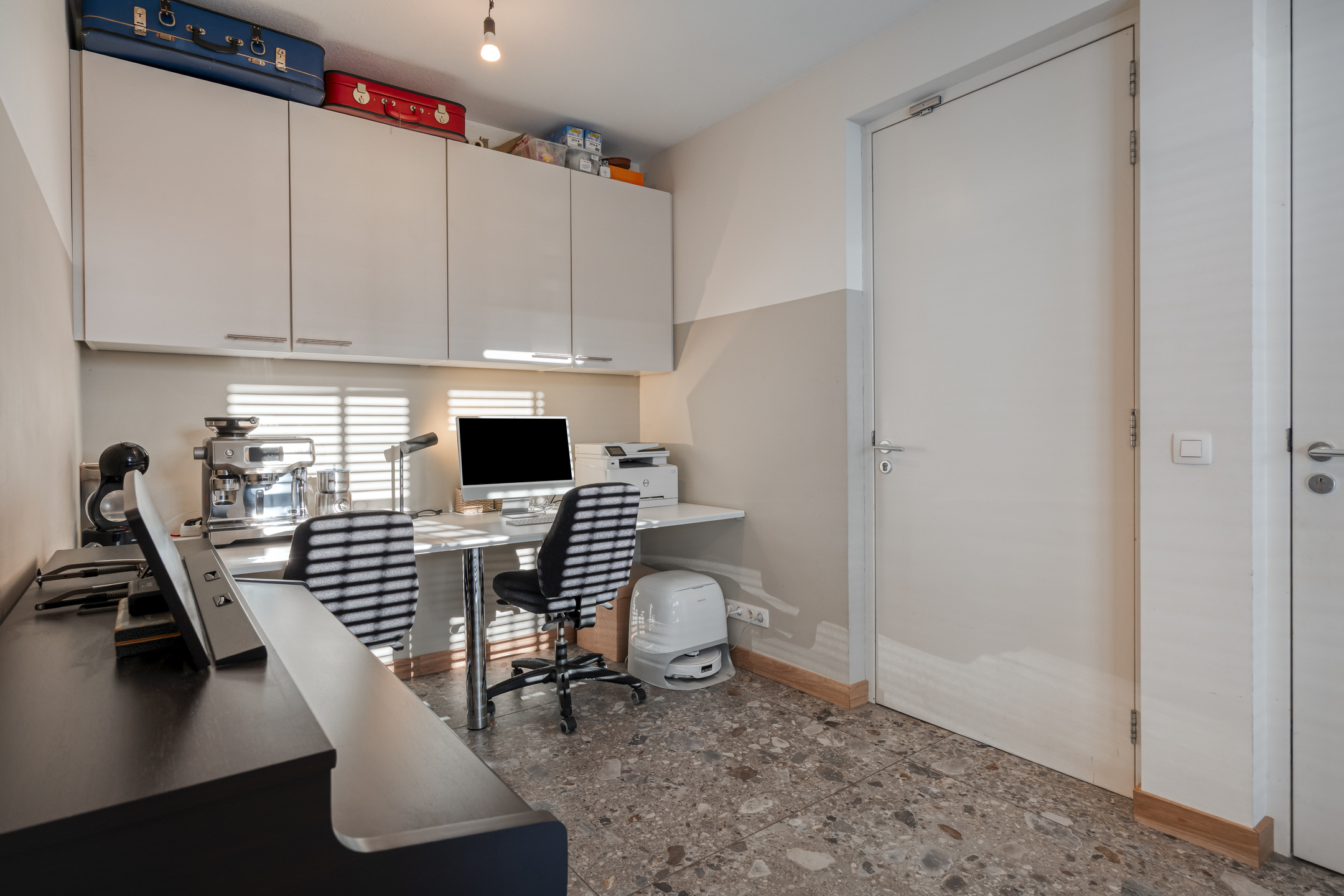 The main level’s heart is a chef’s kitchen, finished with composite worktops and integrated appliances. Adjacent, a flexible office space links to the garage and soundproofed basement, designed for leisure or work—be it studio, home cinema, or gym.