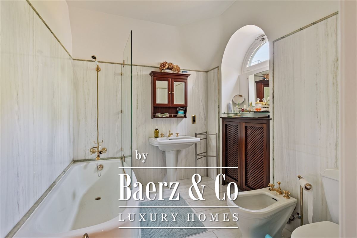 Aan de andere zijde van de verdieping bevindt zich slaapkamer 3, uitgerust met parketvloer en twee ingebouwde kasten, en een marmeren badkamer met bad/douche, lavabo, toilet en bidet. Slaapkamer 4 heeft ook ingebouwde kastruimte. Een aparte wasruimte en een 5e slaapkamer maken het geheel compleet.