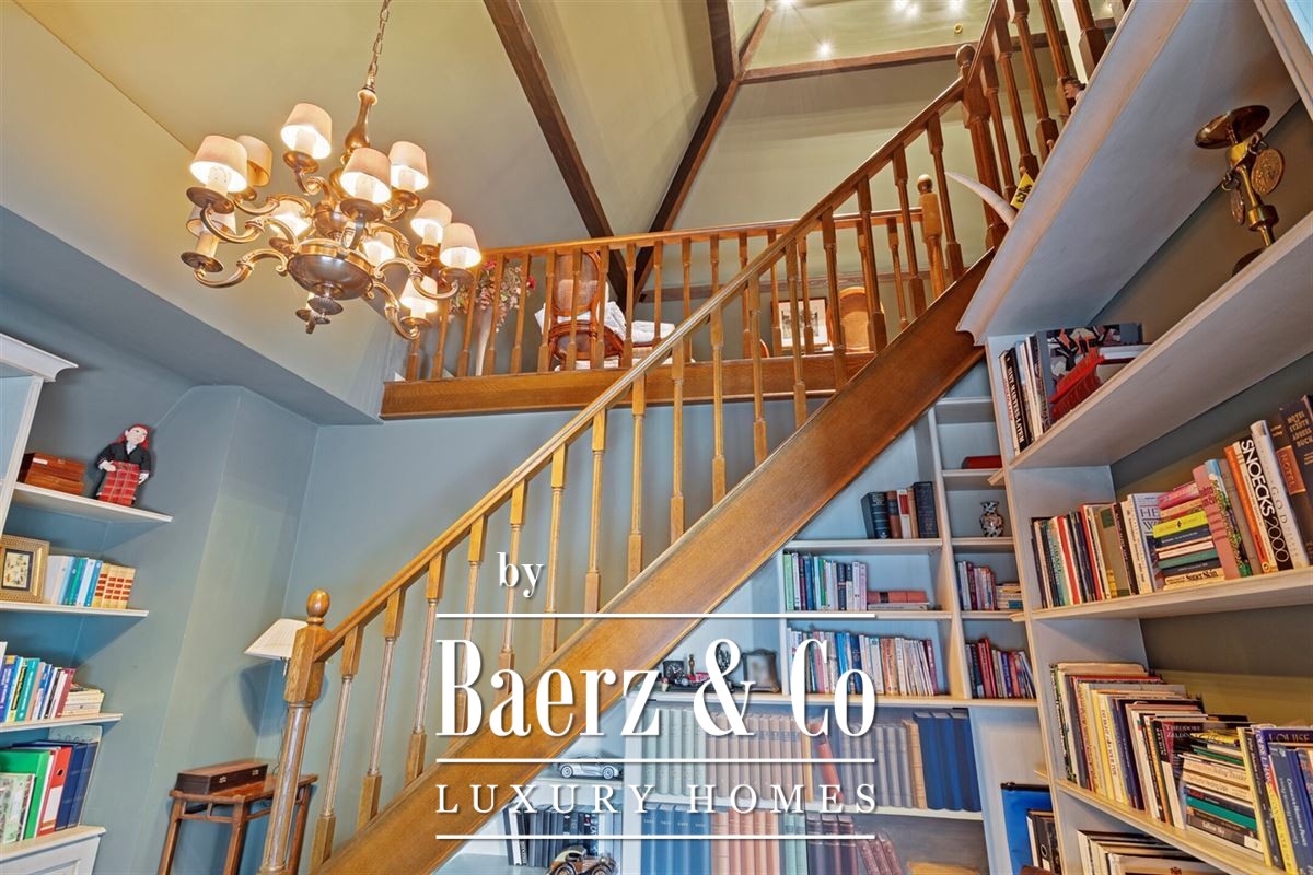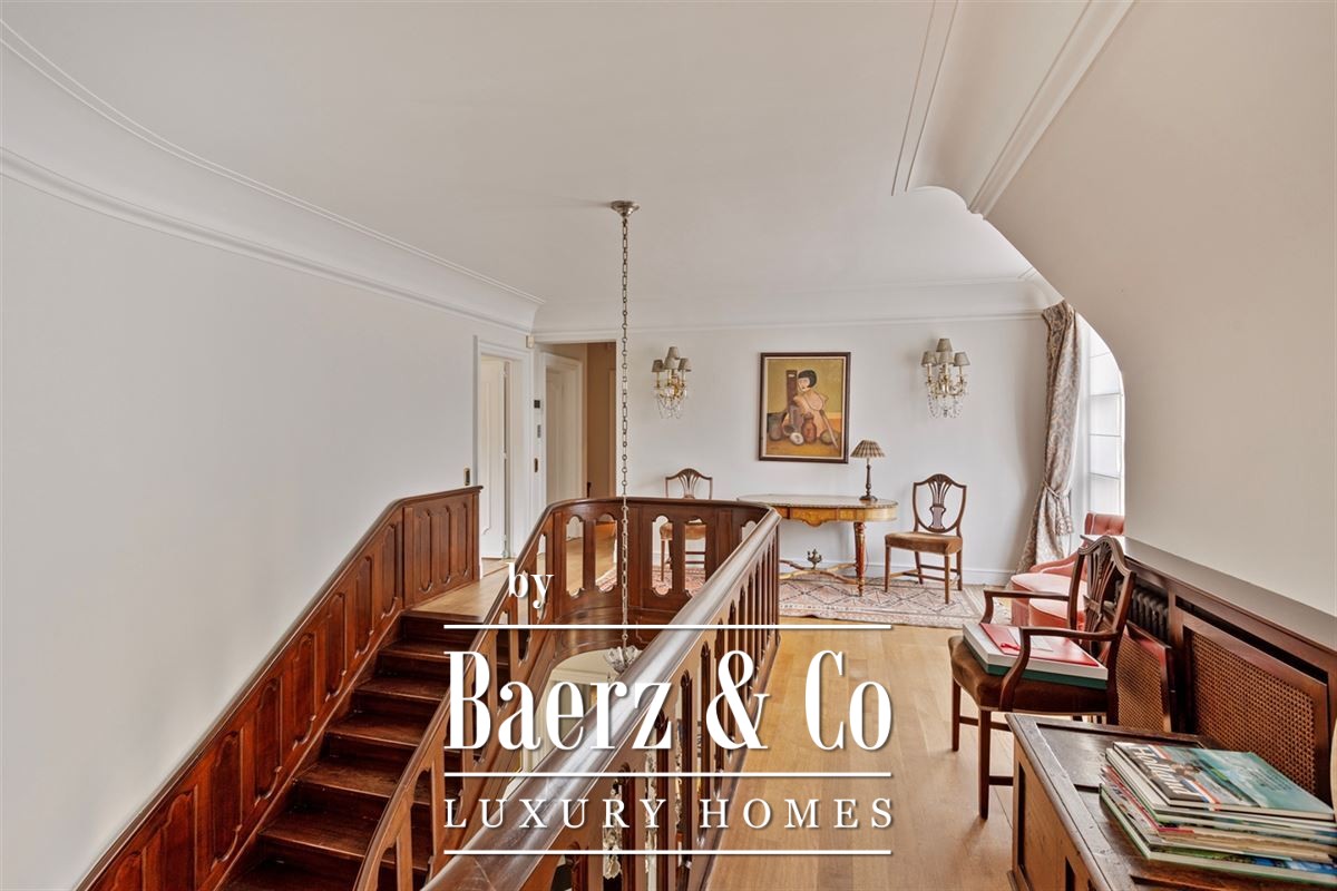 De statige trap leidt u naar de bovenverdieping, waar de masterbedroom zich bevindt, compleet met een luxe “he and she” badkamer.